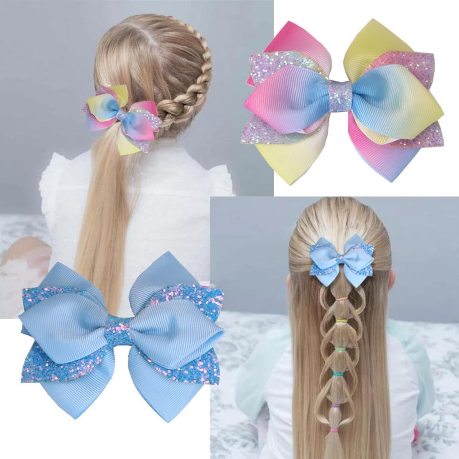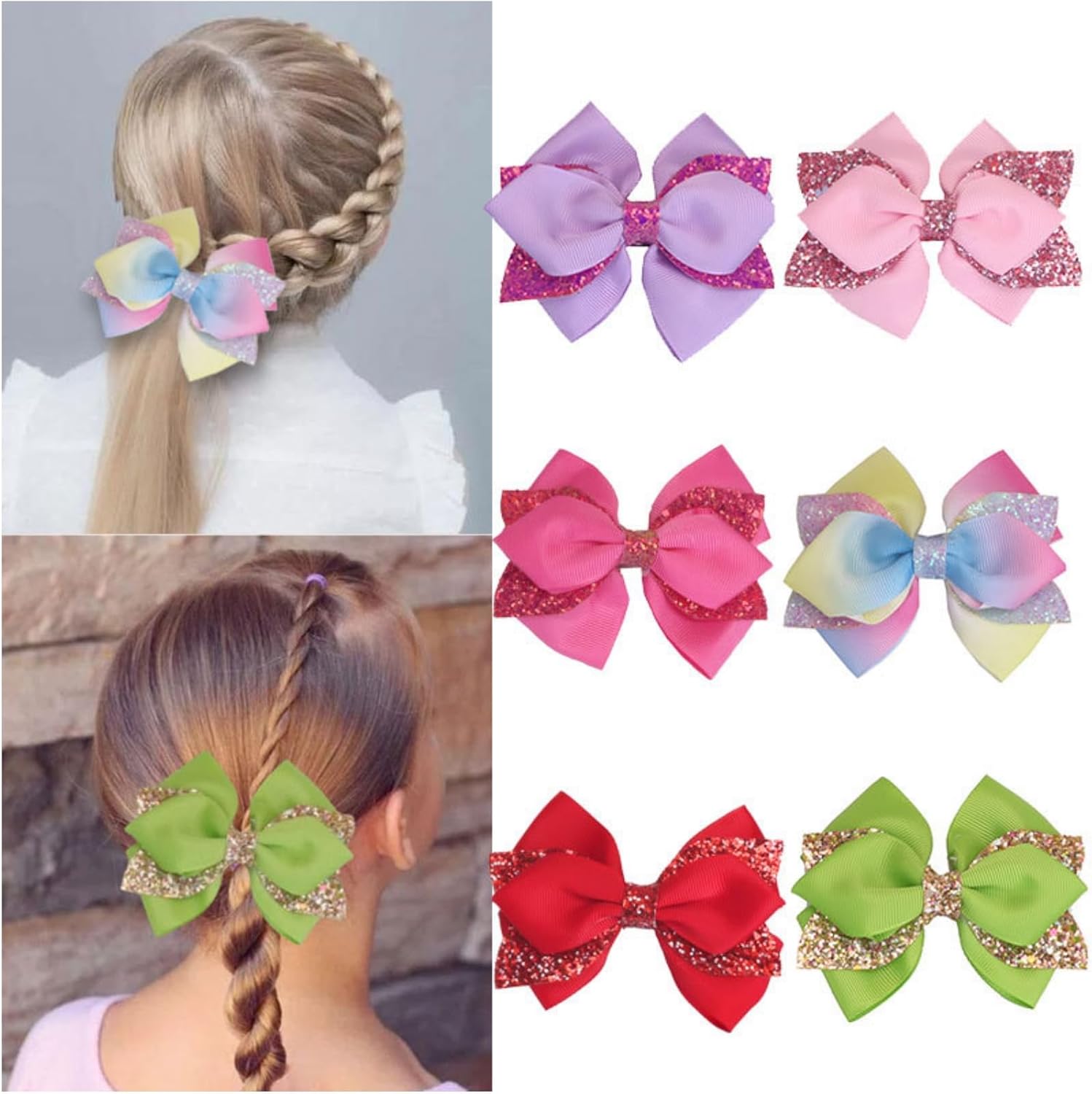 Clip a prua per capelli glitter da 4 pollici con nastro di paillettes frizzanti, aggiungendo un tocco audace e festivo a qualsiasi acconciatura per adolescenti, ragazze e bambini.Basta aggiungere il pizzazz alla sua coda di cavallo, panino, mezzo up-do, treccia, acconciatura a coda di cavallo laterale. Ben dotato di clip forti che assicurano che gli archi rimangano sul posto, trattengono bene i capelli spessi, sottili, fini o ricci e ondulati, fornendo una vestibilità confortevole e affidabile per l'usura per tutto il giorno. Gli archi per capelli glitter da 4 pollici sono ideali per San Valentino, Capodanno, 4 luglio Celebrazioni, vacanze estive, feste di Natale, abbigliamento da capo quotidiano o qualsiasi occasione festiva, rendendolo un accessorio straordinario per adolescenti. Perfetto per matrimoni, cheerleader, back-scuola, compleanno, travestimento di Halloween, San Valentino, vacanza in spiaggia estiva o stile quotidiano, questi archi elevano qualsiasi outfit, vestito con il loro brillante luccichio accattivante. Un regalo premuroso per ragazze di tutte le età, perfetto per i suoi compleanni, San Valentino, Natale, festività estive, festa di matrimonio o come accessorio elegante per la scuola e le feste.