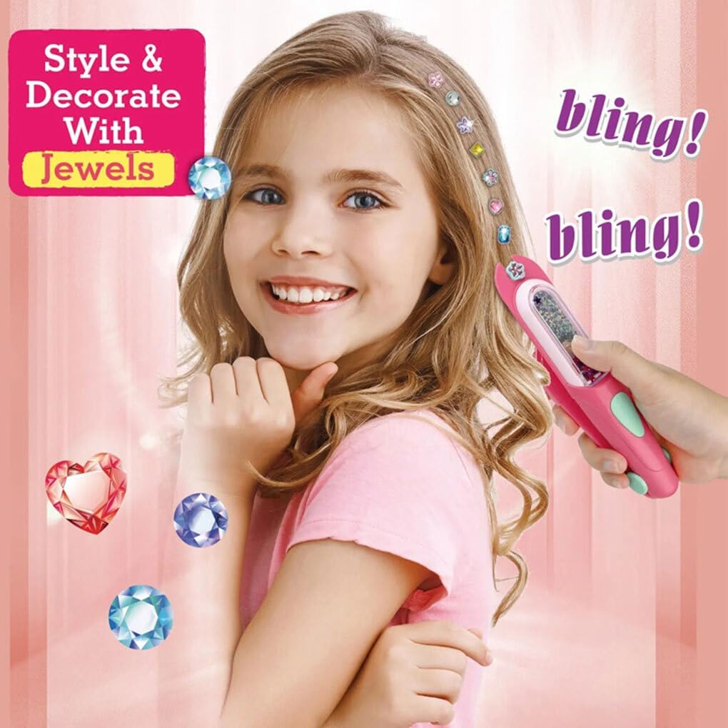 Timbro gemma per capelli: con questo strumento intuitivo, puoi aggiungere facilmente gemme scintillanti ai tuoi capelli per creare accessori per capelli fai da te in diversi colori e stili. Regali di Natale per ragazze: questo set per intrecciare i capelli è un regalo per ragazze e permette loro di esprimere la propria creatività e stile con accessori riutilizzabili per ogni occasione Riutilizzabile: il set per acconciature ha accessori riutilizzabili che possono essere utilizzati più e più volte, rendendolo pratico ed ecologico per i bambini Strumento per dare ai tuoi capelli un accessorio per lo styling: trasforma i tuoi capelli con questo set che ti permette di aggiungi facilmente gemme scintillanti e look unici per qualsiasi evento o festa Facile da usare: basta premere leggermente sui capelli con il timbro per gemme per lasciare gemme abbaglianti che rimangono al loro posto tutto il giorno. Questo è un modo semplice e divertente per aggiungere stile alla tua pettinatura
