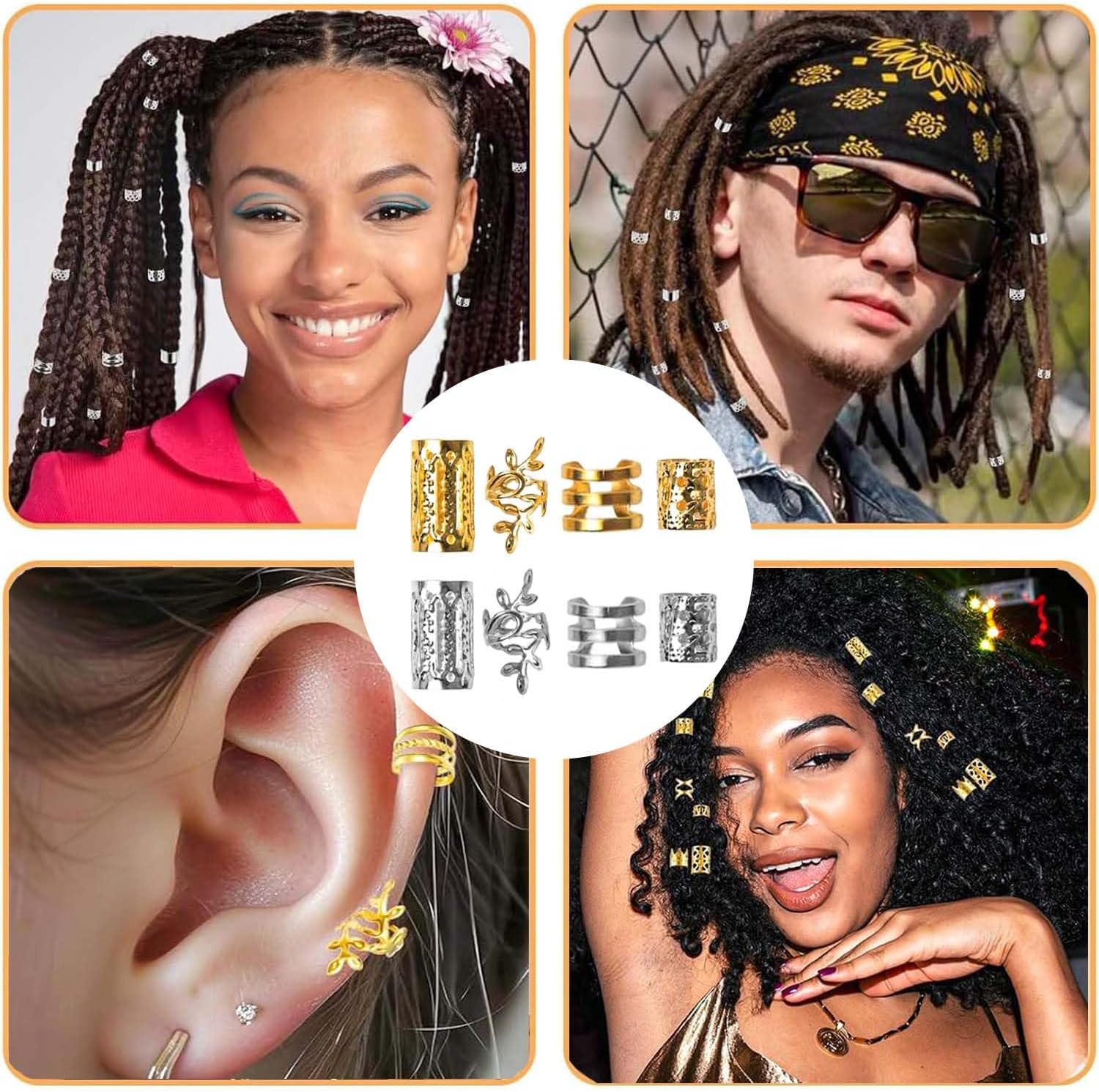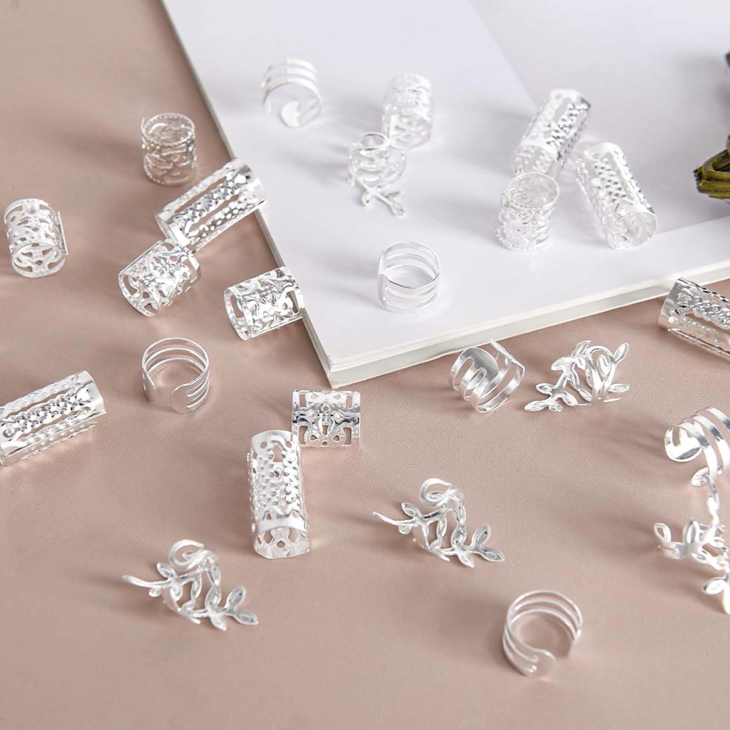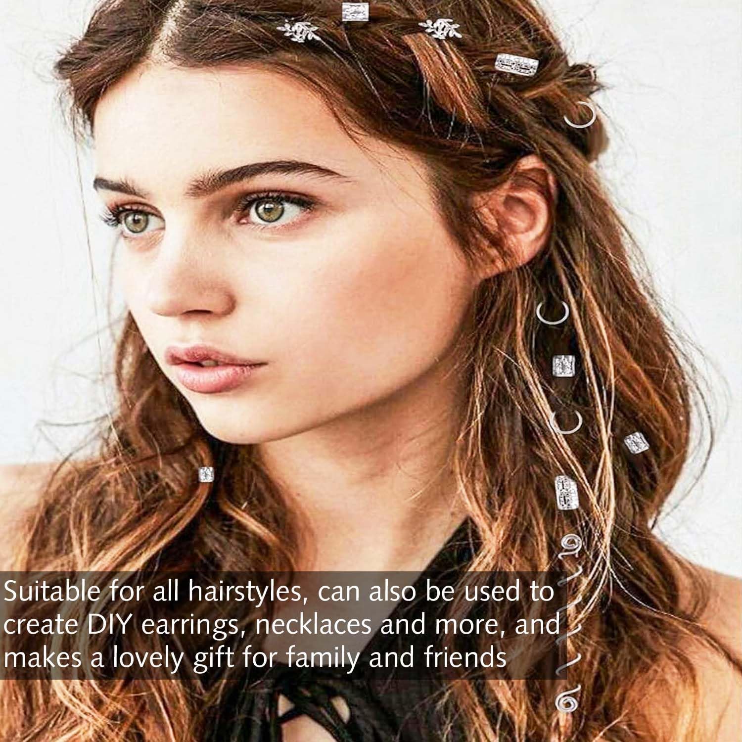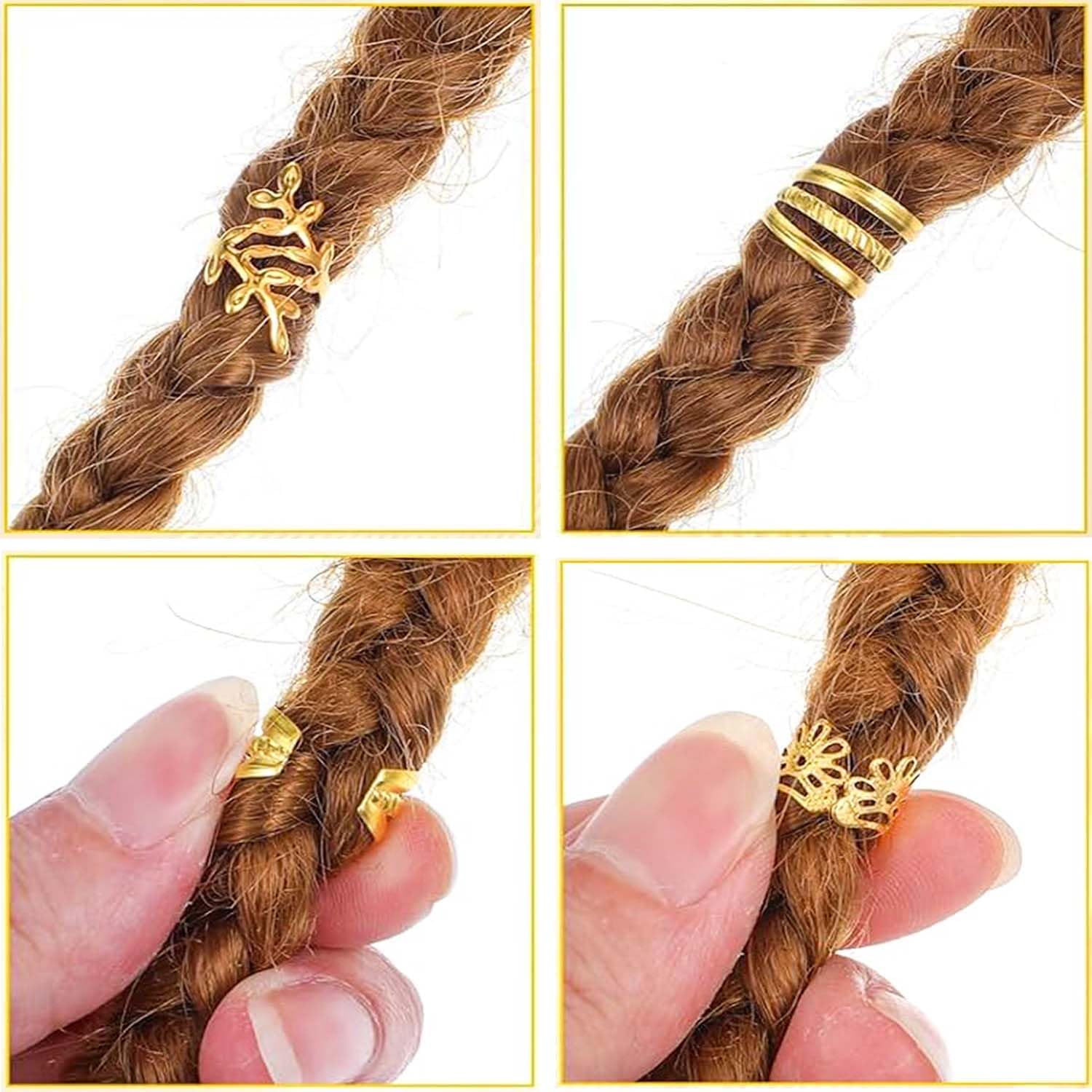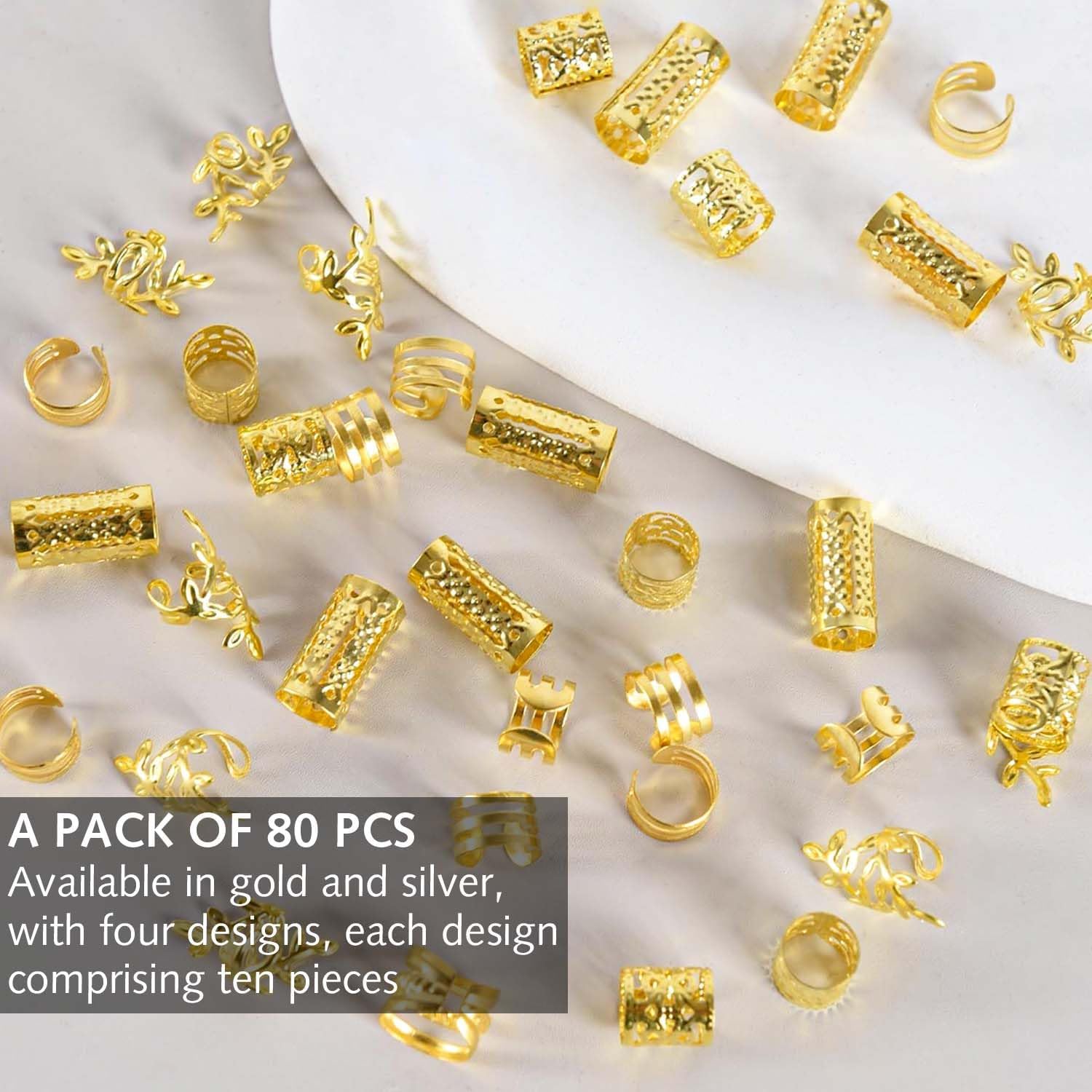 Accessori per acconciature: questo set include 80 fermagli per capelli dorati e argentati in 4 diversi design per diverse possibilità di styling. Gli eleganti accessori per capelli sono perfetti per decorare trecce, locs ed estensioni dei capelli, aggiungendo un tocco glamour al tuo look. Gioielli per capelli di alta qualità: realizzati in metallo resistente, questi fermagli per capelli sono robusti ma flessibili. I materiali delicati sulla pelle evitano danni ai capelli e garantiscono una vestibilità confortevole. FACILE DA USARE: basta intrecciare i capelli, aprire la molletta e posizionarla sulla treccia. Grazie alla chiusura delicata, la tenuta viene fissata. Gli accessori possono essere rimossi e riutilizzati senza lasciare residui. Design elegante: aggiungi un tocco glamour moderno a qualsiasi acconciatura. Le brillanti tonalità oro e argento evidenziano con eleganza trecce, torsioni e loc e consentono creazioni personalizzate grazie ai design combinabili. Utilizzo versatile: ideale per acconciature di tutti i tipi e per progetti fai da te come la creazione di gioielli. Perfetti per occasioni speciali come matrimoni, feste o uso quotidiano, questi accessori completano con stile qualsiasi outfit.
