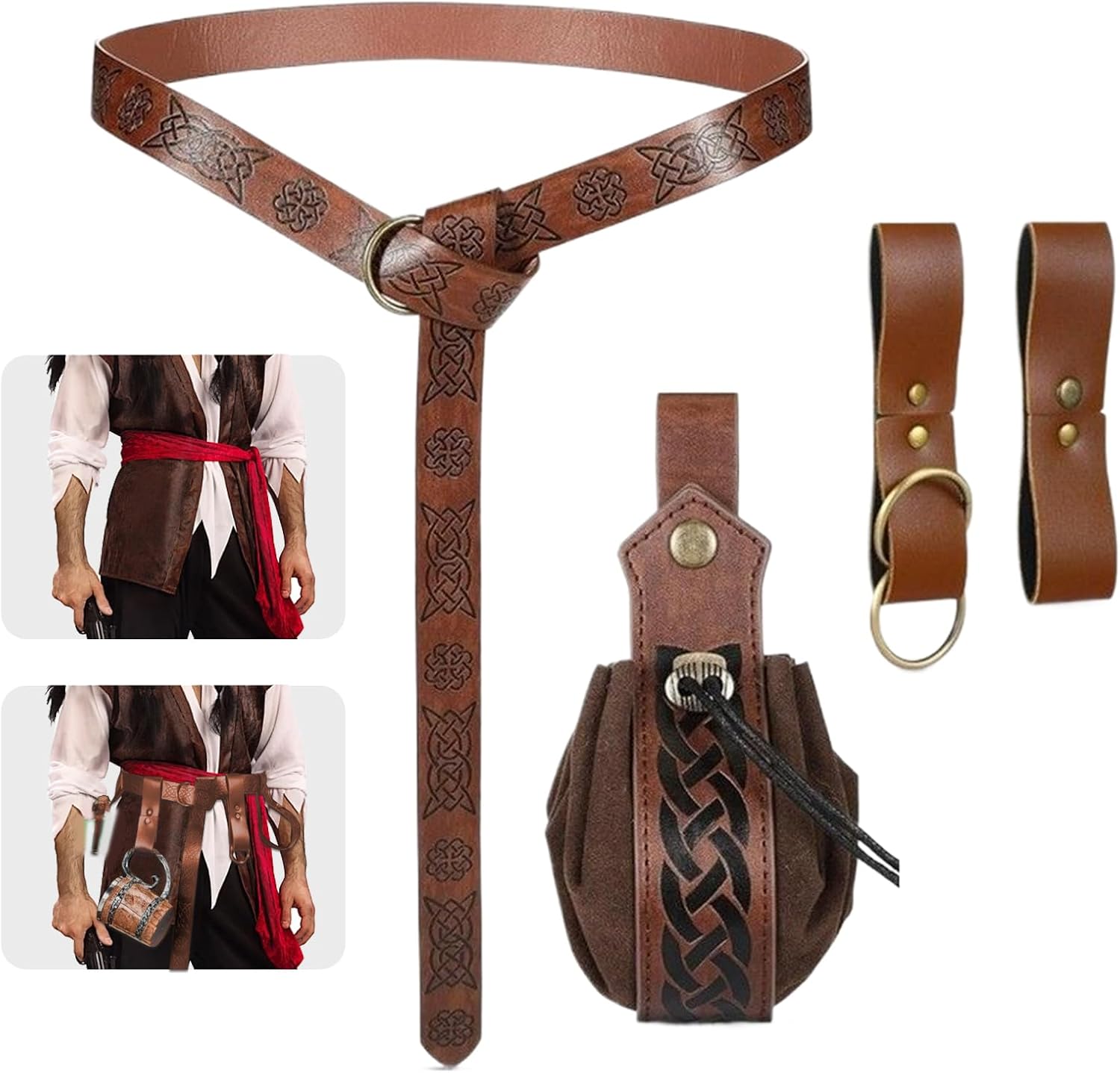Migliora il tuo vestito con accessori per cinture decorativi vintage, progettati per gli adulti appassionati di una moda distintiva. Queste forniture versatili completano l'abbigliamento da uomo e da donna, perfetto per Halloween, cosplay o feste a tema. Che tu stia partecipando a un matrimonio, una fiera o un evento teatrale, donano eleganza e fascino. Le celebrazioni delle vacanze e i servizi fotografici diventano più memorabili grazie al loro tocco speciale, seducendo sia i collezionisti che gli amanti dei festival. Caratteristiche: Materiale: PU Dimensioni del prodotto: come mostrato Contenuto della confezione: 4 accessori per costume da pirata. Nota: Il colore reale dell'articolo potrebbe differire leggermente da quello mostrato nelle immagini a causa della luminosità e delle impostazioni dello schermo. A causa della misurazione manuale, si prega di considerare una differenza di 1-2 cm.
