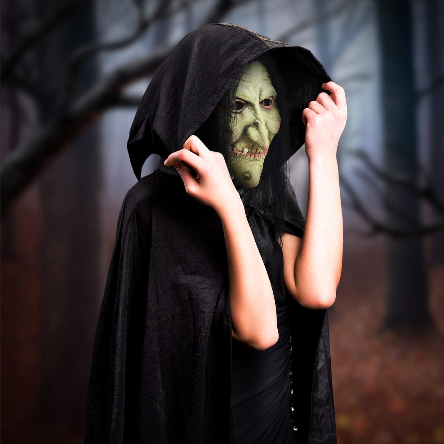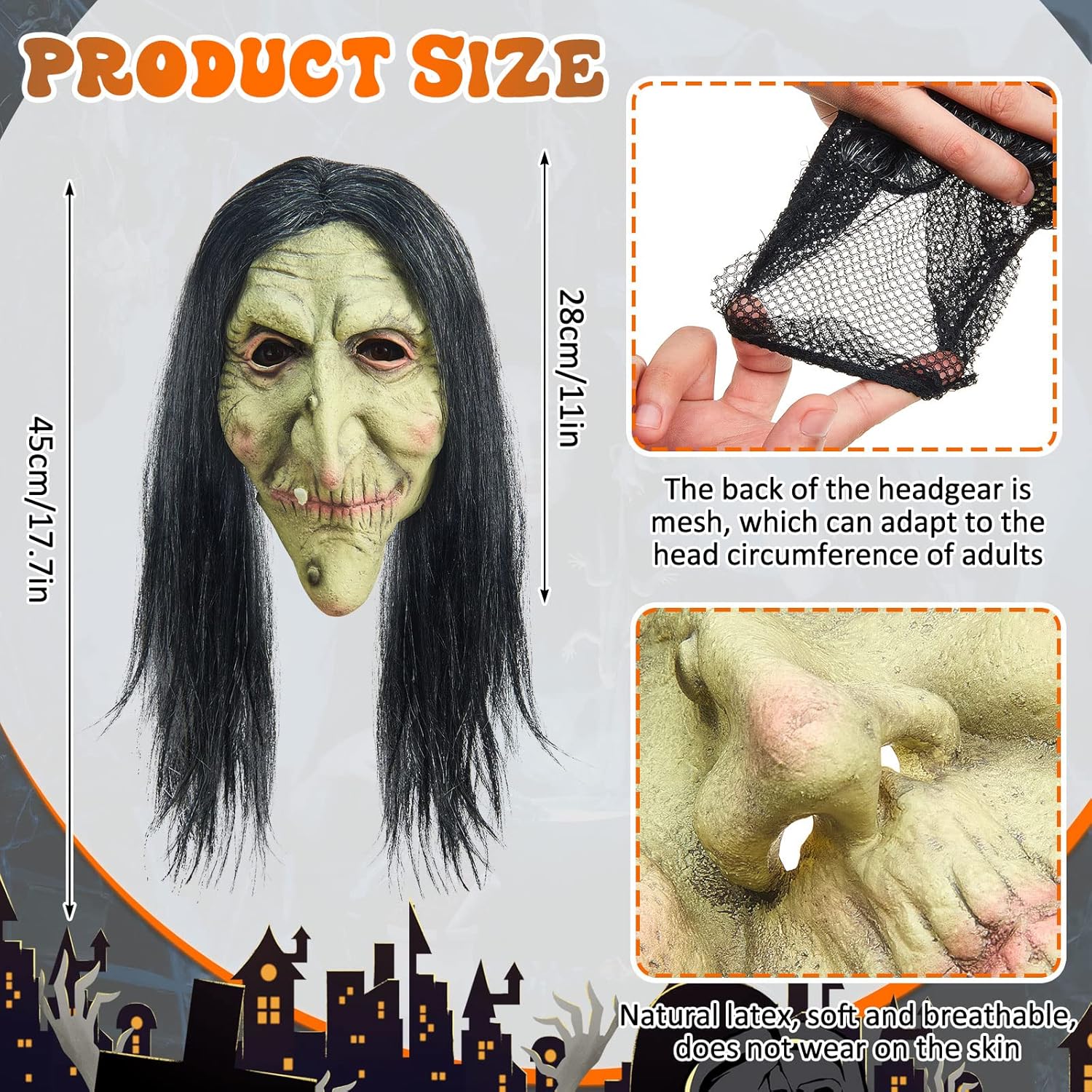 Caratteristiche: Leggero e portatile: Grazie al bel materiale, la nostra maschera da vecchia strega e il mantello lungo sono leggeri e facili da trasportare, non ti porteranno molto peso. Inoltre, sono anche facili da riporre senza occupare molto spazio. Regalo caldo: Questi spaventosi accessori di Halloween possono essere regali pratici per la famiglia, i parenti, i vicini, i compagni e altro, rendendoli felici e divertenti alla festa. Specifiche: Quantità: 2 pz Dimensione: Mantello con cappuccio: lungo circa 170 cm/ 67 pollici con cappello Colore: come mostrato nell'immagine Materiale: Maschera da strega: lattice Mantella con cappuccio: tessuto a maglia La confezione include: 1 x Maschera da strega con i capelli 1 x Mantello lungo con cappuccio Note calde: Si prega di consentire un piccolo errore sulla dimensione dovuto alla misurazione manuale. Il colore potrebbe presentare una leggera differenza a causa dei diversi display. Si prega di leggere attentamente le istruzioni sulle dimensioni prima dell'acquisto. Adatto a persone di età superiore ai 14 anni.