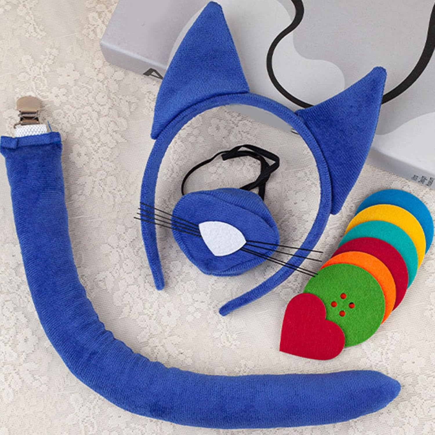 Accessori cosplay per gatti, orecchie da gatto, fascia per capelli, coda, costume di Halloween per bambini, donne, ragazze, Halloween, feste in maschera, cosplay Caratteristiche: Questo accessorio per gioco di ruolo con animali di gatto include fascia per capelli con orecchie da gatto, coda a clip, adesivi con bottone o fascia per capelli con orecchie da gatto, fibbie regolabili, coda a clip, gonna, aggiunge divertimento e individualità a qualsiasi abbigliamento cosplay. Realizzato in morbido tessuto tessuto, questo accessorio per cosplay per gatti di Halloween garantisce il massimo comfort e presenta design unici che completano facilmente diversi costumi e migliorano il tuo quadro generale. Molto adatto per gli appassionati di anime, amanti del cosplay, adulti, bambini, ragazze e donne, questo set è ideale per chi ama travestimenti giocosi e fantasiosi. Adatto per Halloween, feste a tema, cosplay, feste di compleanno e festival. Aiuta a creare un aspetto accattivante per ogni occasione festiva. Trasforma il tuo personaggio preferito con questo accessorio per cosplay e rendilo un must per il tuo abbigliamento cosplay. Dati tecnici: Colore: blu. Componente: tessuto. Dimensione della fascia per capelli: circa 20 x 16 cm. Dimensioni della coda con fibbia: circa 55 m. Dimensioni della coda a clip: circa 40 cm. Dimensioni della gonna: circa 30 cm. Peso: circa 60-290 g. Contenuto della confezione: Contenuto della Pacchetto 1: 1 fascia per capelli con orecchie di gatto, 1 coda, 1 adesivo per bottoni. Pacchetto 2: 1 fascia per capelli con orecchie da gatto, 1 coda, 1 gonna. Nota: 1. Si prega di considerare un margine di errore di 0-1 cm a causa della misurazione manuale. Si prega di acquistare solo se questo non è un problema. 2. I colori visualizzati potrebbero differire leggermente dalle tonalità reali a causa della risoluzione dello schermo del monitor