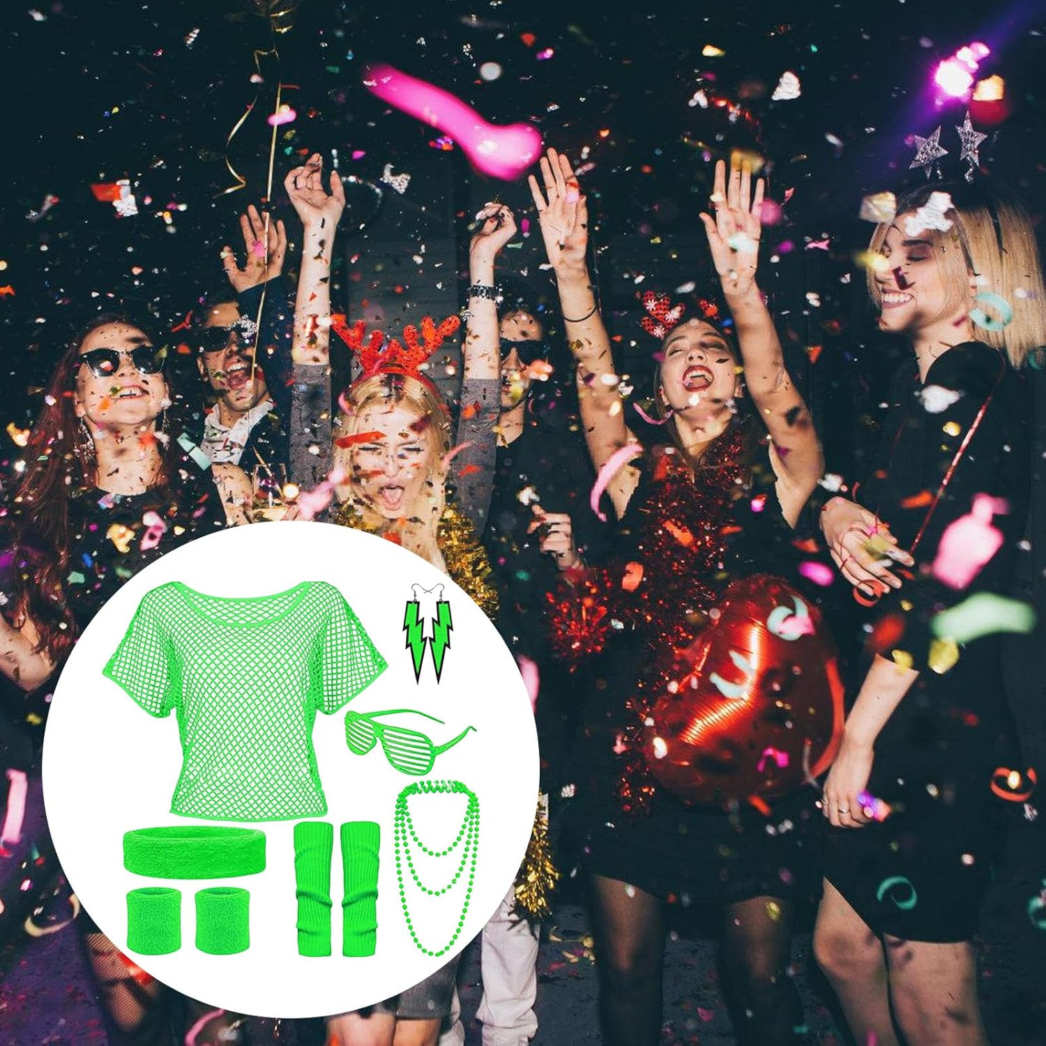 Accessori per costume anni '80 da donna, collana con perline, fascia per capelli, orecchini, camicia, scaldamuscoli, abiti da allenamento per feste anni '80 Caratteristiche: Accessori per costume anni '80, collane con perline, fascia, occhiali da sole, scaldamuscoli e orecchini, ecc. Colore brillante ed eccezionale, il colore brillante ogni accessorio ti fa sembrare luminoso e in movimento, lascia che il tuo amico ti trovi facilmente tra la folla. Camicia a rete, collana, orecchini, braccialetti. Sono gli accessori brillanti per abiti anni '80, che possono rendere la festa a tema anni '80 divertente e indimenticabile. Materiali delicati sulla pelle, accessori per costumi anni '80 realizzati in materiali. Morbidi traspiranti, comodi da indossare. Perfetto per feste cosplay anni '80, costume di Halloween, feste da ballo, discoteche, feste di compleanno retrò, chiunque ami gli stili retrò amerà il nostro outfit anni '80! Regalo e vestito ci sono una gamma completa di abbigliamento e accessori anni '80, adatti come bambini o amici. Specifiche tecniche: Materiale: tessuto. Colore: 01, 02, 03, 04. Dimensioni: peso consigliato: adatto per bambini sotto i 70 kg. La confezione include: 1 set di accessori per costume anni '80. Nota: Considerare un margine di errore di 1-2 cm dovuto alla misurazione manuale. A causa delle differenze tra i diversi monitor, l'immagine potrebbe non rispecchiare il colore reale dell'articolo.