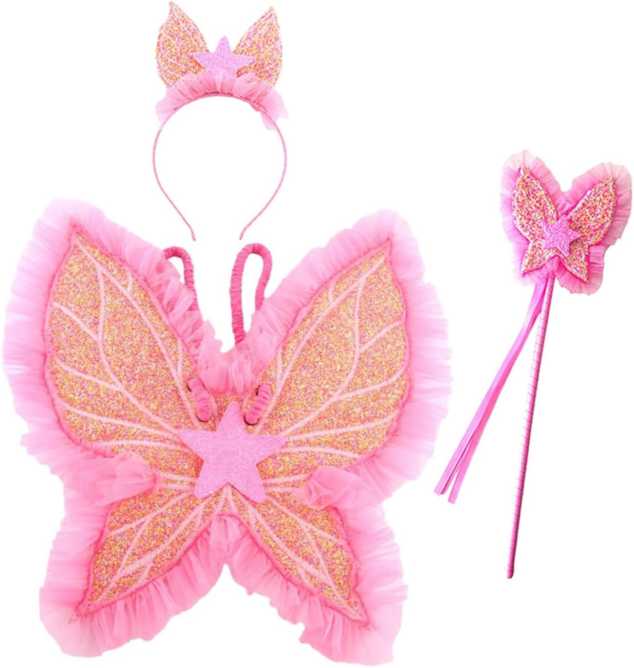 Perfetti per feste di compleanno, oggetti di scena fotografici o spettacoli teatrali, questi accessori fotografici aggiungono fascino ai costumi da principessa e ai temi fantasy Realizzate in tessuto morbido e pratico, queste realistiche ali a farfalla per bambini offrono un comfort leggero e una vestibilità pratica per ore di gioco fantasioso Migliora il tuo look da fata con i nostri accessori per costume da principessa con ali da principessa, presenta un lussuoso paio di design con una fascia e una bacchetta abbinati Progettati per bambini e appassionati di cosplay, questi accessori per feste da fata trasformano ogni occasione in un'avventura stravagante con il loro design incantevole La struttura in tessuto traspirante garantisce un uso sicuro e confortevole pur mantenendo i dettagli dell'ala