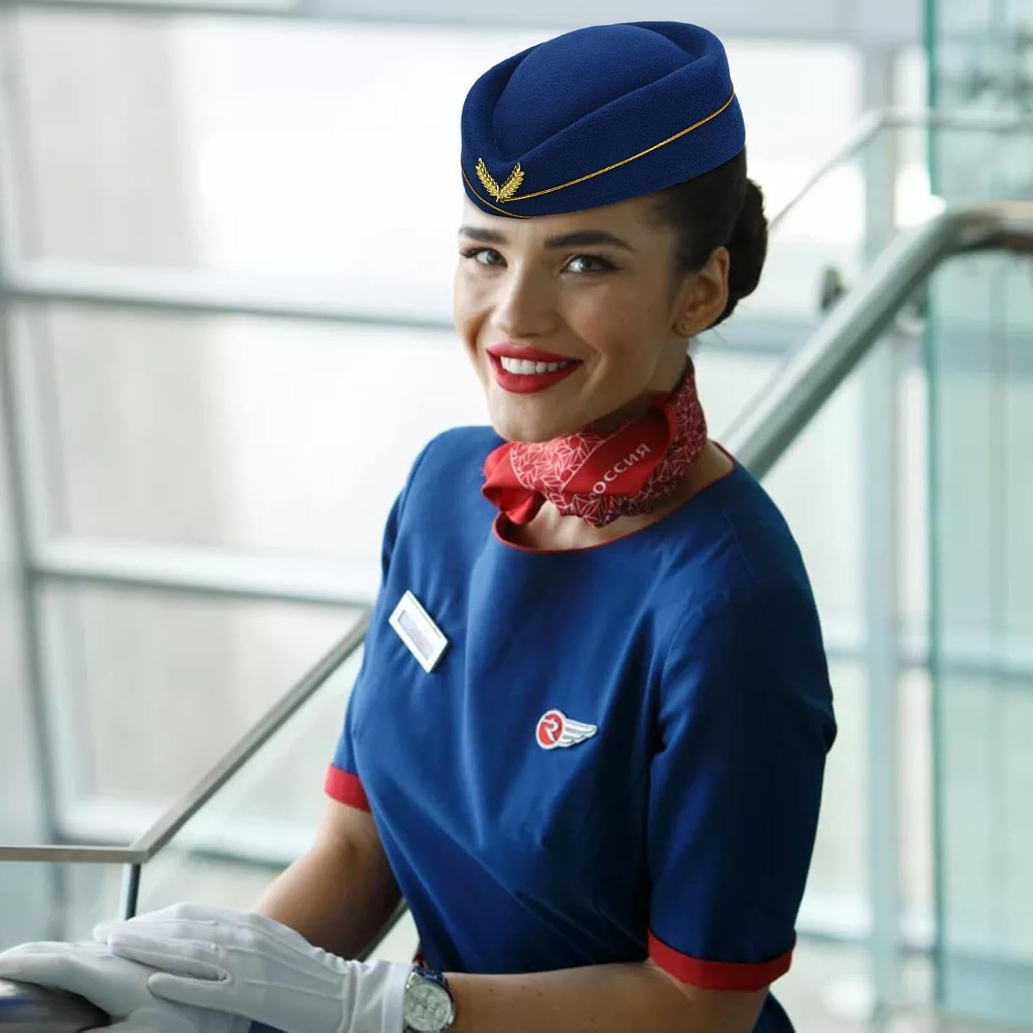 Descrizione: Questo cappello hostess è realizzato in materiale flessibile e resistente che può resistere all'usura. Lo squisito ricamo aggiunge eleganza e stile al tuo look. Il colore alla moda si abbina a qualsiasi outfit e ti fa distinguere. I comodi guanti sono morbidi e lisci, perfetti per accessori per performance teatrali o cosplay. Caratteristiche: Materiale: tessuto. Dimensioni del cappello: 56-58 cm. Dimensioni della sciarpa di seta: 50 x 50 cm. Peso: circa 220 g. Contenuto della confezione: 1 cappello hostess. 1 sciarpa di seta. 1 paio di occhiali da sole. 1 paio di guanti. 1 spilla a forma di aeroplano