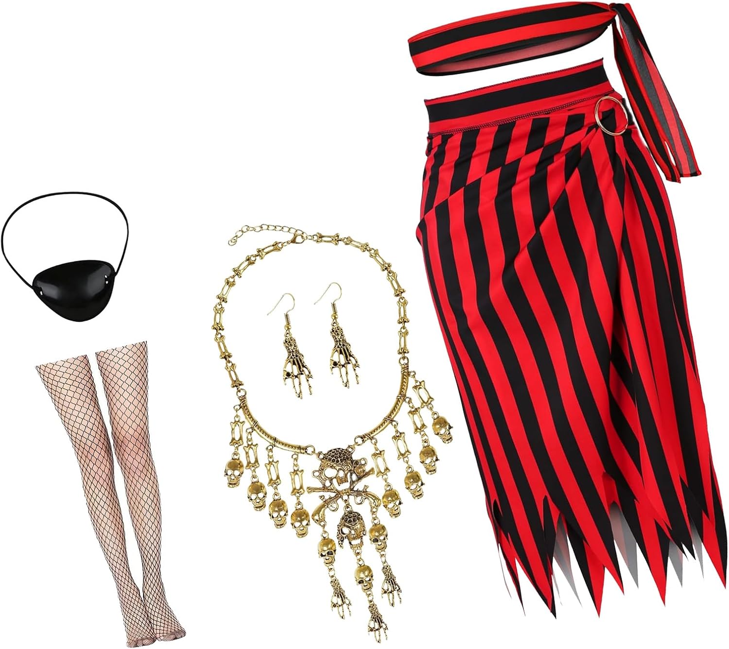 Accessori per costume da pirata da donna, include vestito, foulard, collana, calza, cerotti per gli occhi, per Halloween, cosplay Caratteristiche: Trasformati in vero pirata con il nostro set di accessori per costume da pirata da donna, che include oggetti essenziali come vestito, sciarpa, toppe per gli occhi dei pirati, collana, orecchini, calze, per un look autentico. Realizzato in stoffa, questo set di accessori da pirata di Halloween è comodo da indossare, garantendo che resistano all'uso quotidiano di qualsiasi festa o evento cosplay mantenendo il loro aspetto realistico. Adatto per donne, adulti e adolescenti appassionati di giochi di ruolo e attività per feste cosplay, questo set di accessori per cosplay pirata è ideale per migliorare il cosplay Ampiamente usato per Halloween, feste a tema cosplay, feste in maschera e vari eventi cosplay, questo set di accessori da pirata aggiunge un tocco di fascino all'abbigliamento da gioco di ruolo. Elevando il tuo costume da pirata, questo set di accessori da pirata da donna è un'aggiunta essenziale alla tua collezione di costumi di Halloween per qualsiasi occasione piena di avventura. Specifiche tecniche: Colore: Nero Rossore Componente: Panno Dimensioni delle toppe per occhi: circa 7 x 5,2 cm. Lunghezza del vestito: circa 75 cm. Dimensioni orecchini: circa 5 cm. Lunghezza della collana: circa 50 cm. Peso: circa 220 g. La confezione include: 1 vestito. 1 collana. 1 paio di cerotti per 1 foulard. 1 paio di orecchini. 1 paio di calze. Nota: Si prega di considerare un margine di errore di 0-1 cm a causa della misurazione manuale. Assicurati di non avere un problema prima di fare un'offerta. 2. L'immagine potrebbe non rispecchiare il colore reale a causa delle diverse impostazioni dei monitor