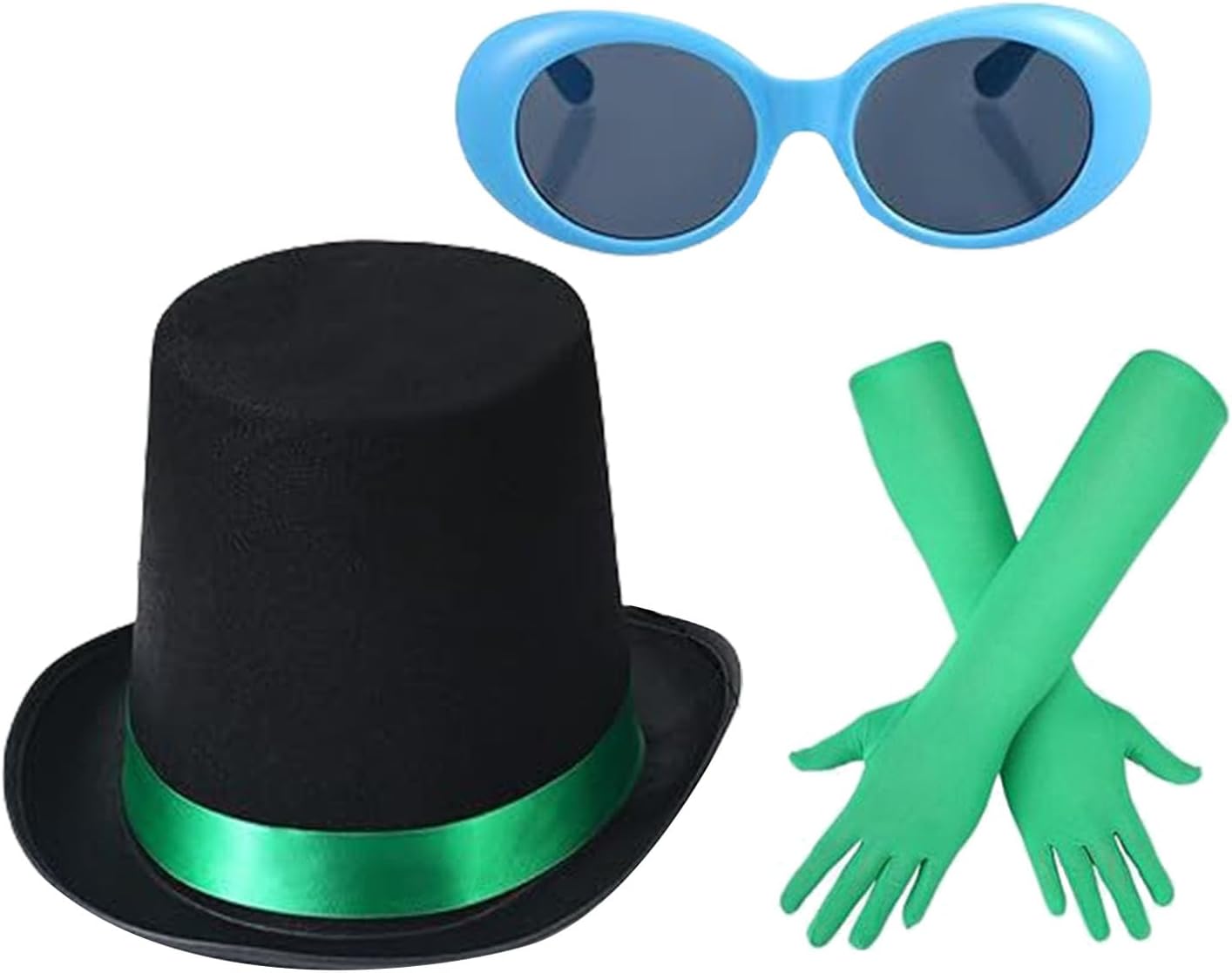 Accessori per costume di Halloween Cappello a cilindro Guanti Lunghezza Gomito Ovale Occhiali da sole Occhiali Libro Film Personaggio Cosplay Costume Caratteristiche: Il set di costumi di Halloween include 1 paio di occhiali da sole verdi, 1 paio di guanti lunghi. Materiali, gli accessori verdi per costumi di Halloween sono realizzati con materiali, comodi da indossare. Ampie applicazioni, adatte per feste a tema Halloween, feste di ruolo di Halloween, feste di compleanno, feste di Natale, spettacoli teatrali scolastici e cosplay di personaggi di film di libri scolastici Meraviglioso dolce caldo amico famiglia e te stesso. Unquie ti rende più accattivante in varie occasioni, e una grande sorpresa per le feste per gli amici. Specifiche tecniche: Materiale: tessuto. La confezione include: 1 set di accessori verdi per costume di Halloween. Nota: Considerare un margine di errore di 1-2 cm dovuto alla misurazione manuale. A causa delle differenze tra i diversi monitor, l'immagine potrebbe non rispecchiare il colore reale dell'articolo.