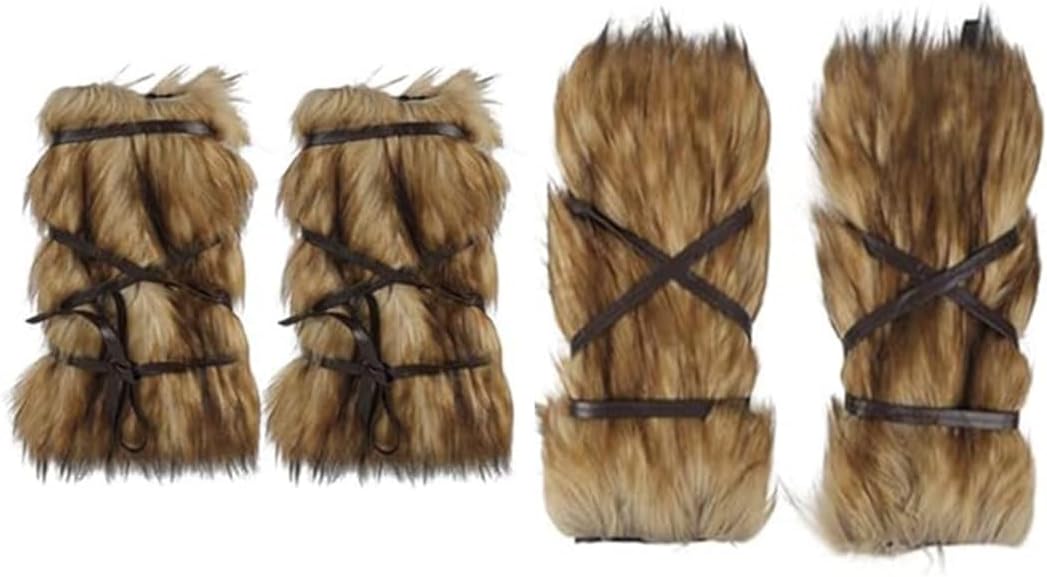 Materiale: fibra di poliestere. Pelliccia sintetica di alta qualità, polsini e leggings in finta pelliccia sono morbidi al tatto, offrendoti un'esperienza di utilizzo confortevole. Colore: marrone. Dimensioni: 26 x 13 cm, 30 x 20 cm. Piccolo e portatile: la consistenza di questo accessorio è morbida, delicata sulla pelle e confortevole, e può essere piegato senza occupare troppo spazio, facile da riporre e trasportare. Lavabile: se i polsini e i leggings in peluche si sporcano, puoi semplicemente pulirli con un panno umido o acqua e lasciarli asciugare all'aria. Non è facile versare i capelli e può essere riutilizzato. Adatto per: perfetto per Halloween, carnevale, feste in costume, feste a tema, giochi di ruolo, spettacoli tematici e altre occasioni.