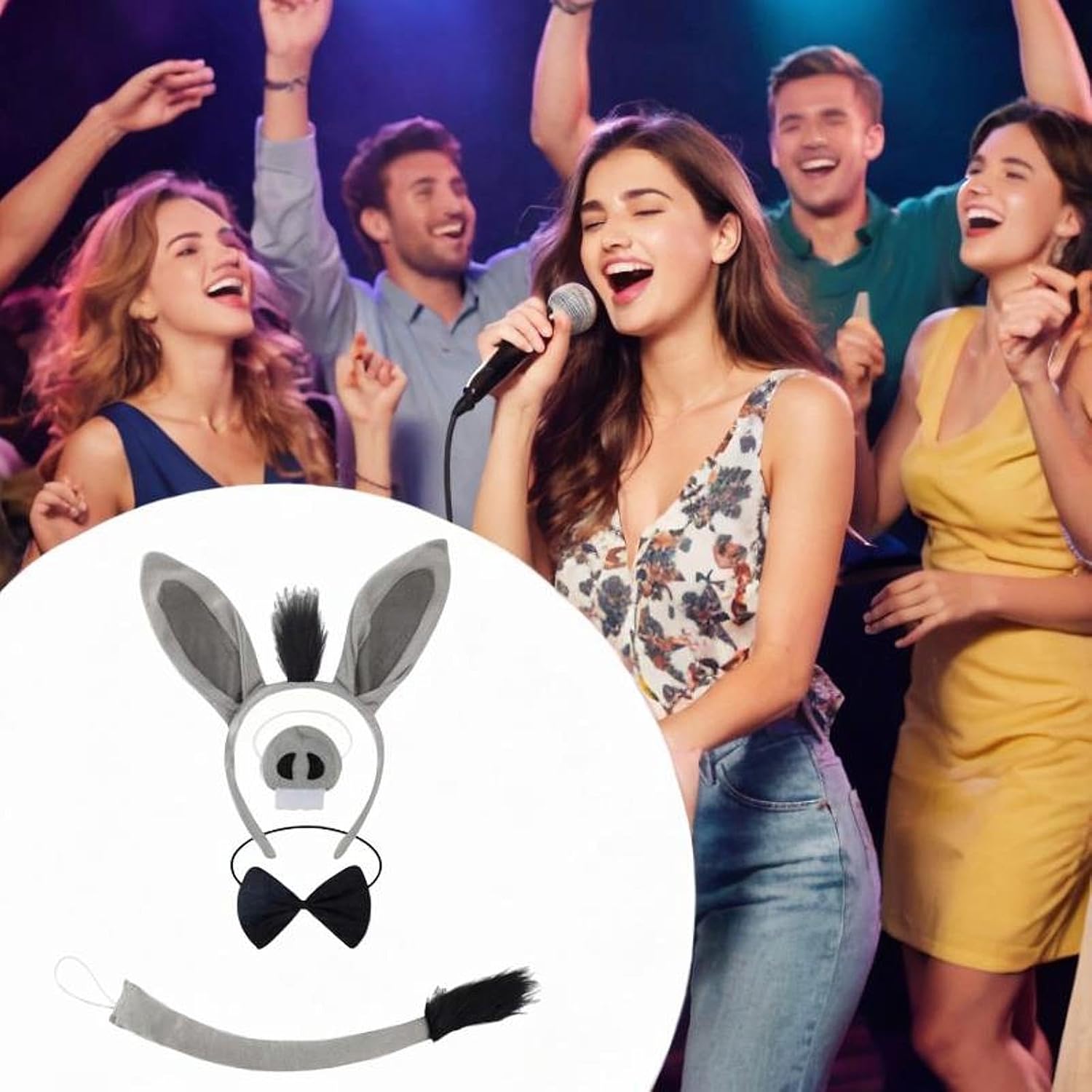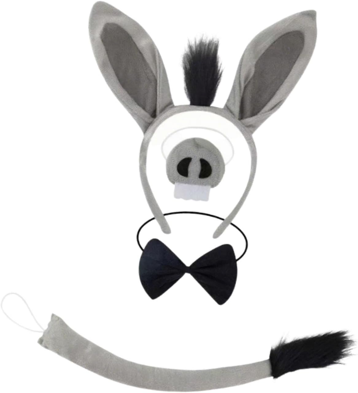 【Regalo】Questi oggetti di scena per animali di Halloween sono anche un'ottima scelta regalo per famiglie e amici per compleanni, feste, festività, ecc. 【Costume da asino】Ci sono cerchietto con orecchie d'asino, papillon, coda, set completo, con pregevole fattura, accessorio carino, divertente e 【Dimensioni standard】La lunghezza della coda è di circa 40 cm/15,75 pollici, il papillon 11 cm x 7 cm/4,33 pollici x 2,76 pollici, la fascia per le orecchie 24 cm x 27 cm/9,45 pollici x 10,63 pollici 【Ampie occasioni】Il set di costumi da animale è ampiamente adatto per cosplay, carnevali, spettacoli teatrali, oggetti di scena per foto, spettacoli, feste a tema, ecc. 【Materiale di alta qualità】Il set di accessori per costumi da asino è realizzato in tessuto di qualità, robusto, leggero e confortevole al tatto