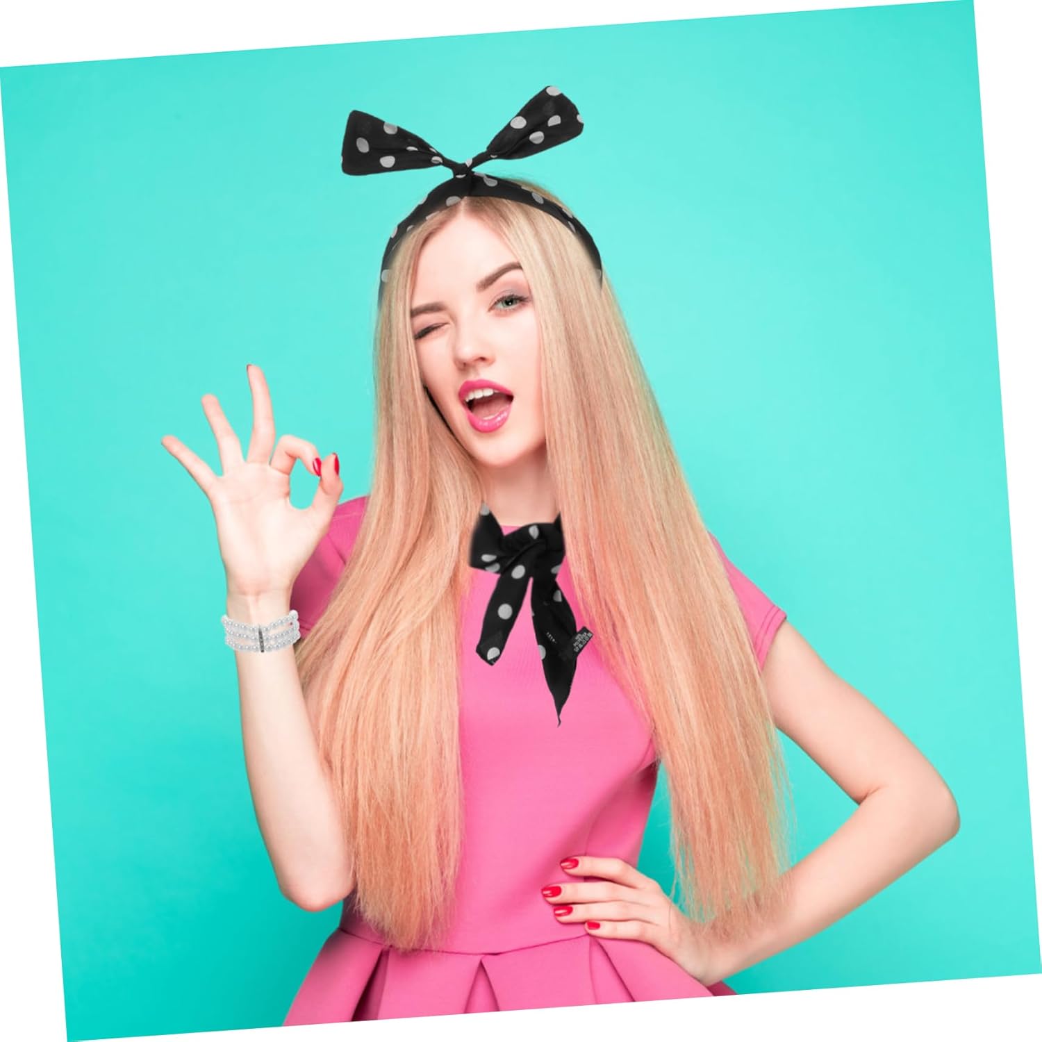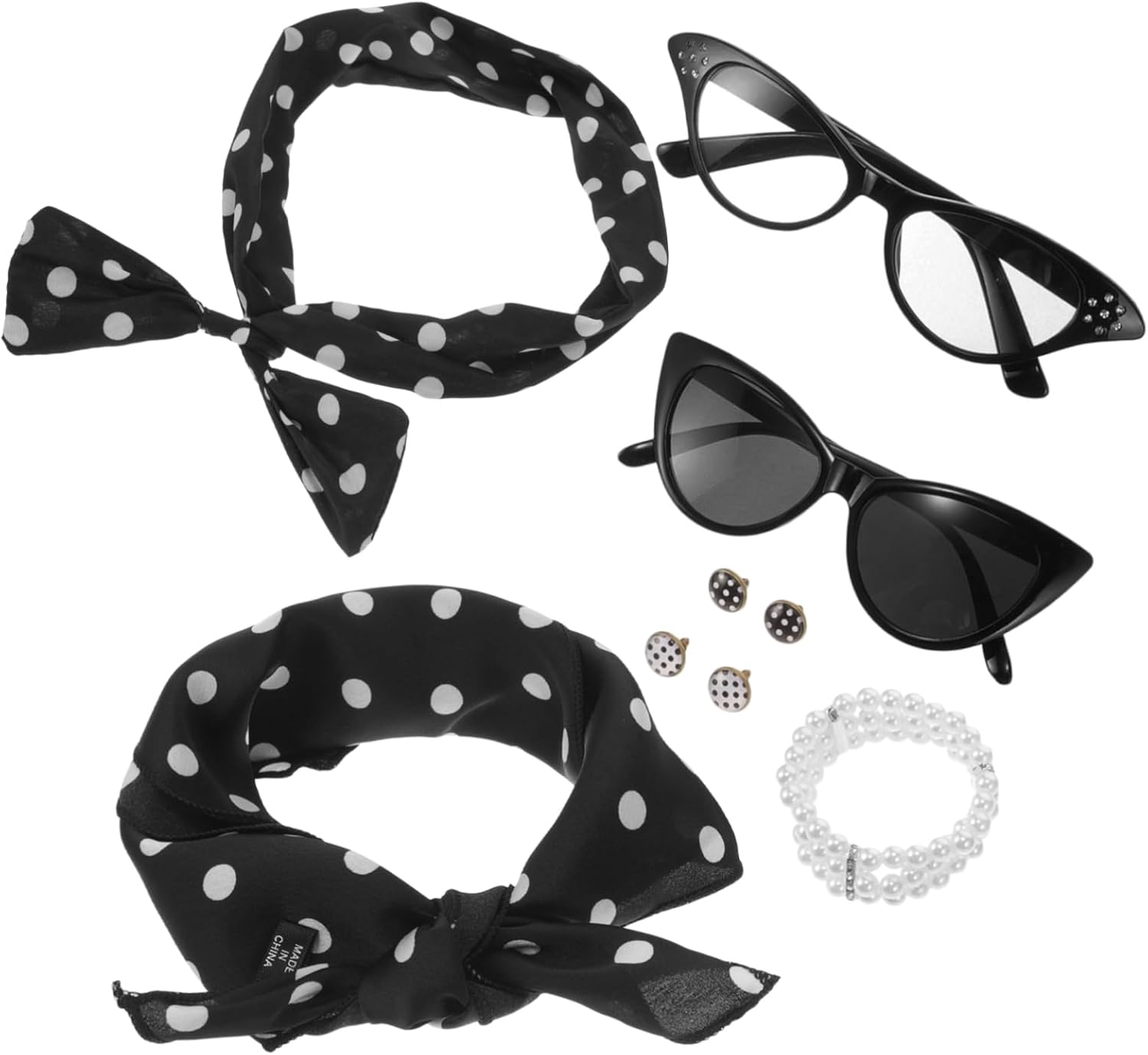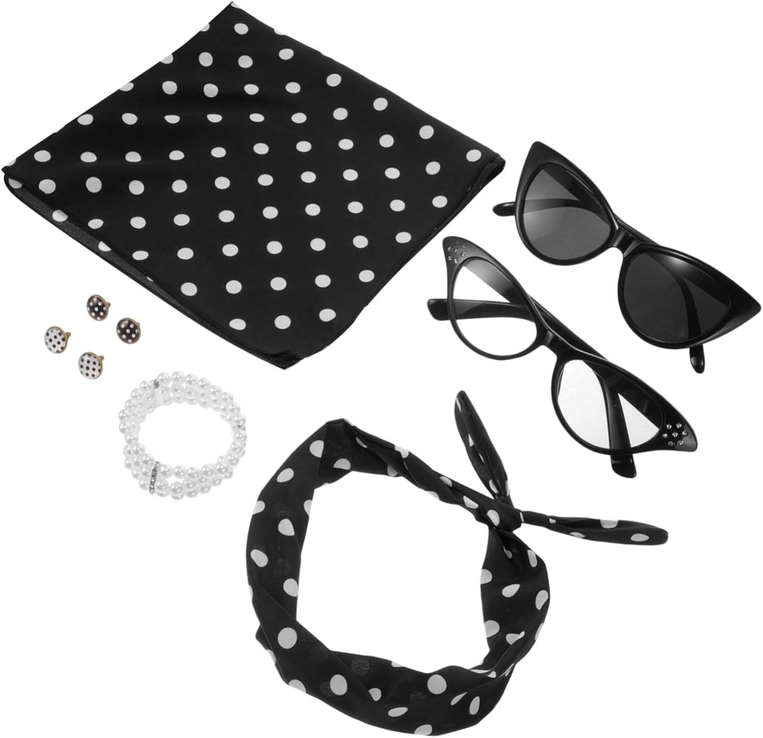 Il pacchetto include 1 x braccialetto 1 x fascia per 1 x sciarpa 2 x occhiali 2 x paia di orecchini Caratteristiche -Dimensioni: 75,00X5,50X0,20 cm/29,48X2,16X0,08 pollici oggetti di scena per costumi da gioco di ruolo -Materiale: poliestere, oggetti di scena per cosplay in plastica per donne -Colore: accessori per costumi assortiti per adulti -Dimensioni: 46,00X46,00X0,20 cm/18,08X18,08X0,08 pollici oggetti di scena per cabina fotografica Informazioni sulle merci Questo set di accessori per feste a tema anni '50 è un classico accessorio per cosplay adatto a feste, balli e occasioni di gioco di ruolo. Accessori per costumi in maschera È comodo e resistente, con una varietà di stili tra cui scegliere per soddisfare diverse esigenze. Accessorio per cosplay Perfetto per aggiungere un tocco di divertimento a qualsiasi evento, questo set di fasce per per feste anni '50 è un accessorio indispensabile per chi ama l'atmosfera retrò