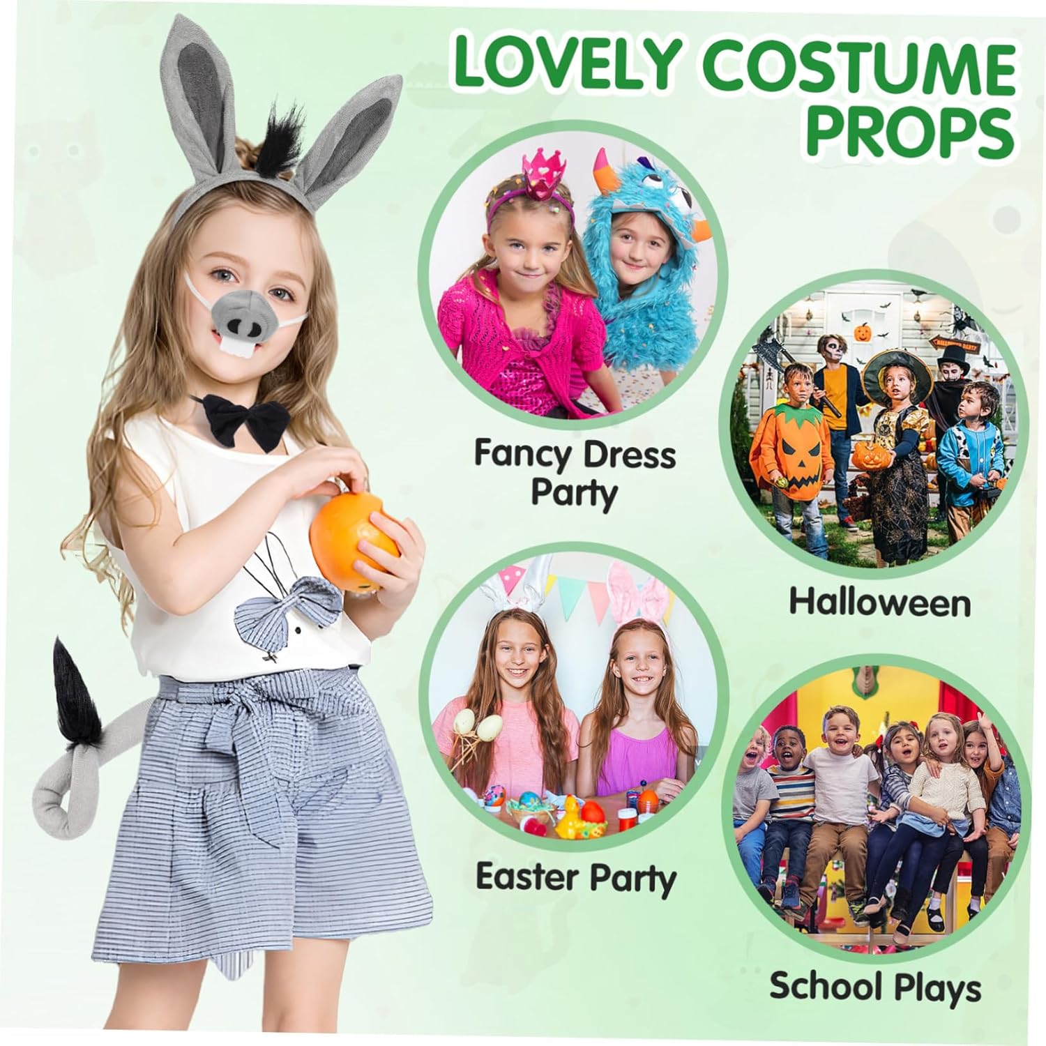 Asino: indossando questo set di costumi da asino, sarai la persona più attraente e della , costume da con orecchie d'asino Oggetto di scena asino: design con elementi a di asino, in particolare per cosplay, ottimo per feste e raduni notturni, kit costume da asino Da costume: sono leggere e flessibili, realizzate in materiale delicato sulla pelle, sicure e comode da indossare, cosplay di d'asino Cerchietto con orecchie d'asino all'ingrosso: questo set è perfetto anche per i tuoi e piacerà loro perché è così carino, decorazioni per feste a di asino Fascia per a di asino: design delicato, con bellissime decorazioni, adorabili orecchie, , naso e di asino, questo set è attraente e decorativo, di fasce per con orecchie d'asino