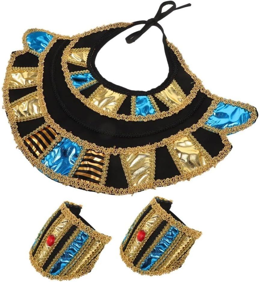 Vestibilità comoda in taglia unica: il design leggero e flessibile con chiusure regolabili garantisce una vestibilità sicura e confortevole per maggior parte delle taglie per adulti. Facili indossare: questi costumi egiziani sono facili indossare e togliere, il che renderà il abbigliamento faraone ancora più completo. Puoi indossarli con un lungo abito nero o una camicia per un effetto migliore. Colorati e ben fatti: gli accessori del costume egiziano sono realizzati in poliestere qualificato, morbidi e confortevoli, i colori e il tessuto sono vivaci e accattivanti. Contenuto della confezione: il kit di accessori per il costume egiziano include 1 collare egizio, 1 fascia egizia, 1 cintura egizia e 1 paio di polsiere, accessori meravigliosi per il costume egiziano. Utili costumi egiziani: l'accessorio per costumi egiziani è adatto per costumi di Halloween, giochi di ruolo, rappresentazioni teatrali, foto a tema e altre famose feste e eventi in costume egiziani; oppure regala questo kit di accessori per costumi tuoi amici e familiari come regalo di Halloween.