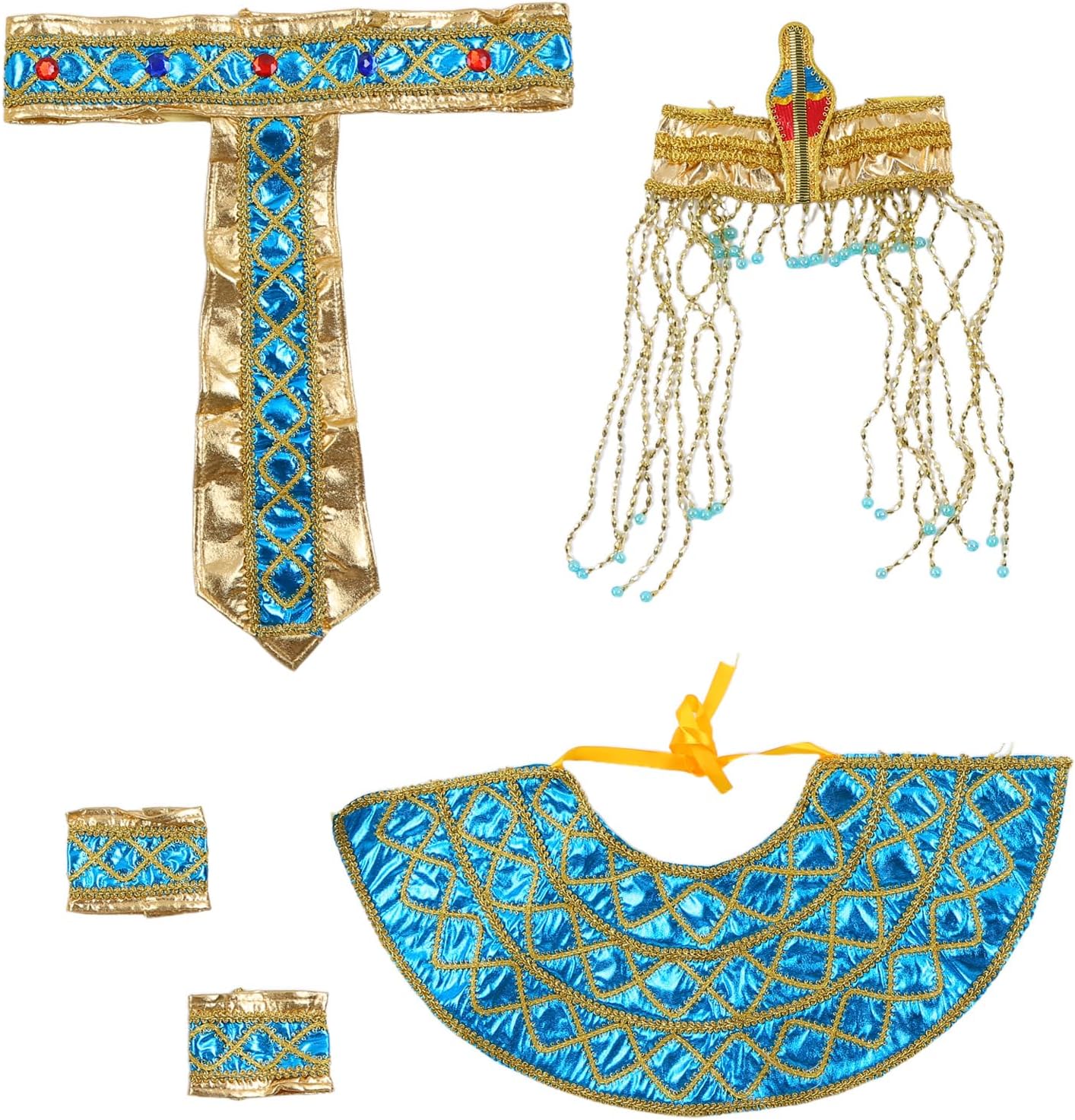 Accessori per costumi egiziani King Tuts cappello costume faraone egiziano copricapo braccialetti collare egiziano per Halloween Caratteristiche: e Questi accessori per costumi egiziani da uomo possono mostrare il misterioso dell'antico Egitto. Puoi vestirti con il tuo amico e goderti la festa felicemente. Questo set di costumi egiziani è eccellente per familiari e amici che amano i vestiti. Che si tratti di una festa o di un abito quotidiano, i nostri antichi accessori per costumi egiziani saranno sorprendenti. Adatto per feste a tema, feste di vestiario, giochi di ruolo di Halloween, altre attività a tema antico egiziano. I costumi egiziani da uomo sono progettati con carattere faraone, con colori vivaci e da indossare e rimandare. Specifiche tecniche: Cotone Tipo: 7 tipi facoltativi Adatto per circonferenza della testa: circa 55-60 cm. La confezione include: 1 set di accessori per costume egiziano. Nota: Considerare un margine di errore di 1-3 cm dovuto alla misurazione manuale. A causa della differenza tra i diversi monitor, l'immagine potrebbe non rispecchiare il colore reale dell'articolo.