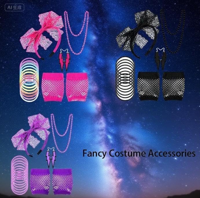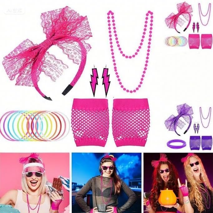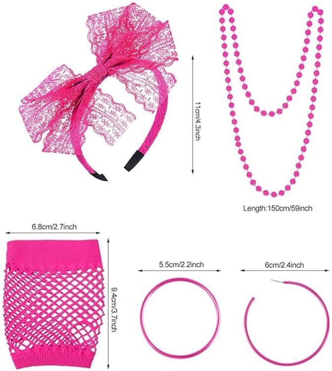 Descrizione prodotto Accessori per feste in maschera da donna anni '80, accessori per feste di addio al nubilato Tipo: accessori per costumi da donna. Materiale: tessuto. Colore: come da immagine. Dimensioni: come da immagine. La confezione include: 1 set di accessori per costume da donna. Nota: Il colore originale dell'articolo potrebbe differire leggermente da quello riportato nell'immagine. Avviso di sicurezza No