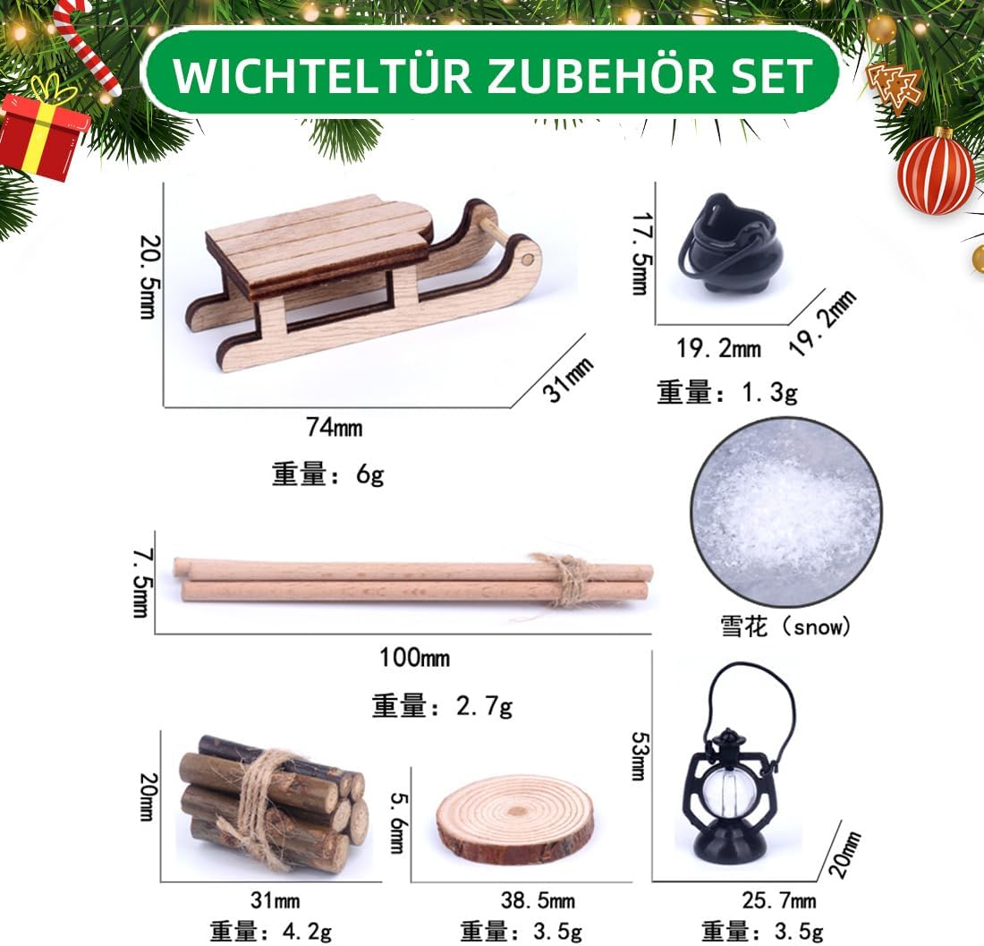 Una fonte di ispirazione per Avvento e Storie di gnomo -- C'è molto da fare a Natale! I bambini possono dare un'occhiata alla loro vita quotidiana dei gnomi, per rendere il tempo con il gnomo ancora più creativo Perfetto per accessori per porta del gnomo – Questo meraviglioso accessorio natalizio è il complemento perfetto per la porta del gnomo e lo spazio davanti. Con una decorazione in miniatura puoi ravvivare e abbellire ulteriormente la porta del gnomo di Natale Set di accessori per gnomi in miniatura, include mazzi di legna da ardere, slitta in miniatura, supporto in legno, mini forno sospeso, lampada, birra, chitarra, libro Esplora il mondo degli gnomi con i tuoi figli: l'arrivo dei gnomi è un evento magico per ogni bambino. Create il mondo degli gnomi secondo i vostri desideri e sorprendete i vostri bambini ogni giorno con nuove avventure Accessorio per la casa delle bambole 1:12: un regalo ideale per i bambini che vogliono arricchire le loro case delle bambole o dei kit Barbie