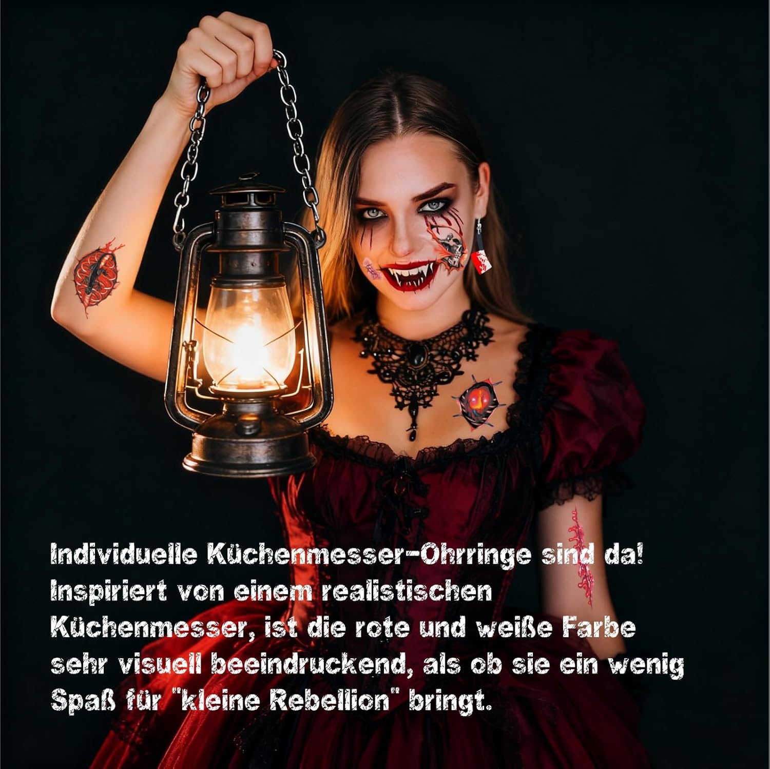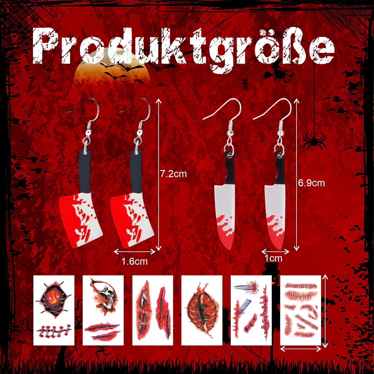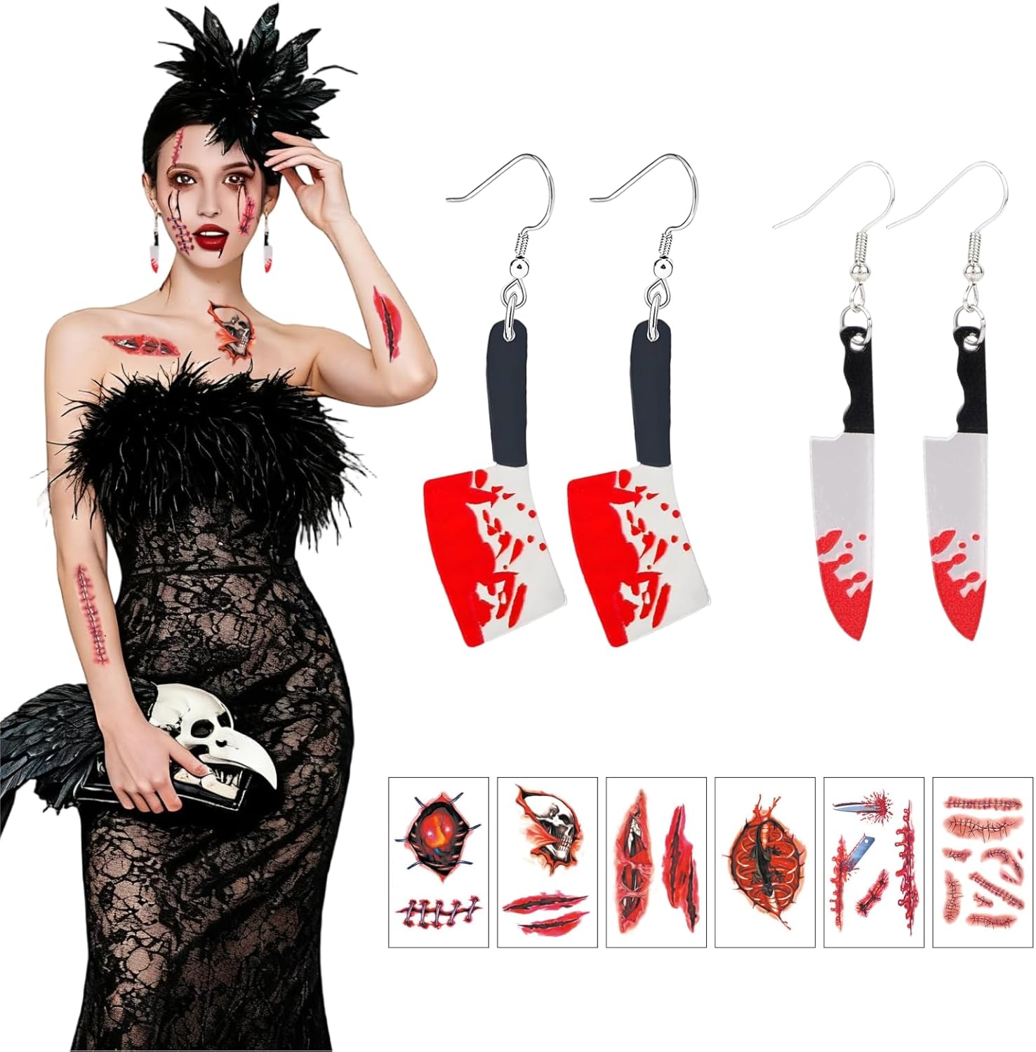 Descrizione prodotto Come usare tatuaggi cicatrici di Halloween? Fase 1: la pelle deve essere pulita e priva di grassi. Fase 2: rimuovere la pellicola protettiva trasparente. Fase 3: premere saldamente il tatuaggio sulla pelle asciutta, con il lato rivolto verso il basso. Fase 4: tenere un panno umido o una spugna sul tatuaggio per 30 secondi. Passo 5: sollevare delicatamente la pellicola di supporto per verificare che il motivo sia stato trasferito completamente. In caso contrario, ripetere il passaggio 4. Fase 6: lasciare asciugare il tatuaggio. Come viene rimosso? Passo 1: applicare alcool, struccante, crema fredda o olio per bambini sul tatuaggio e attendere 10 secondi. Fase 2: strofinare delicatamente fino a quando il tatuaggio scompare o lavare con acqua e sapone. Avviso di sicurezza Non adatto a bambini di età inferiore a 3 anni