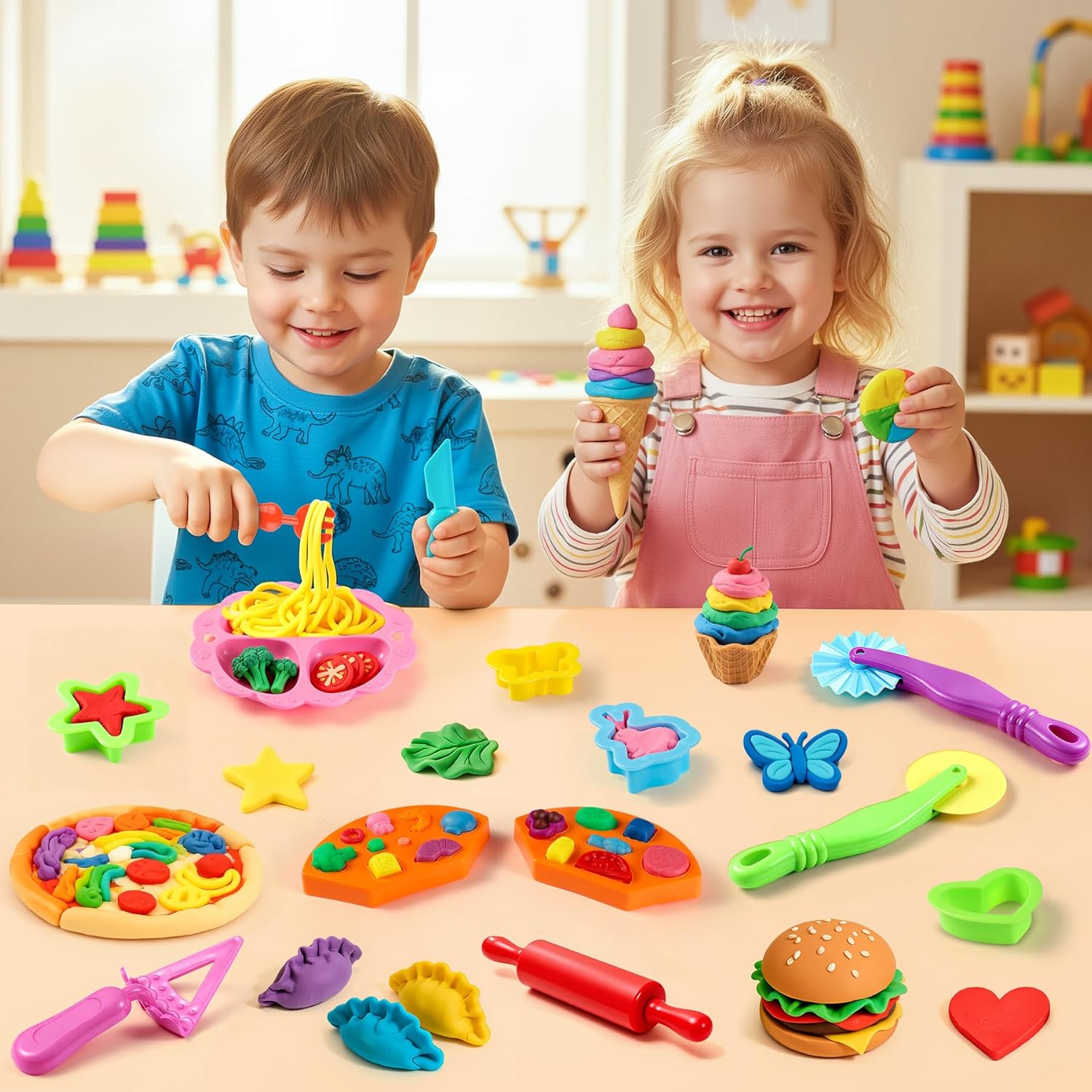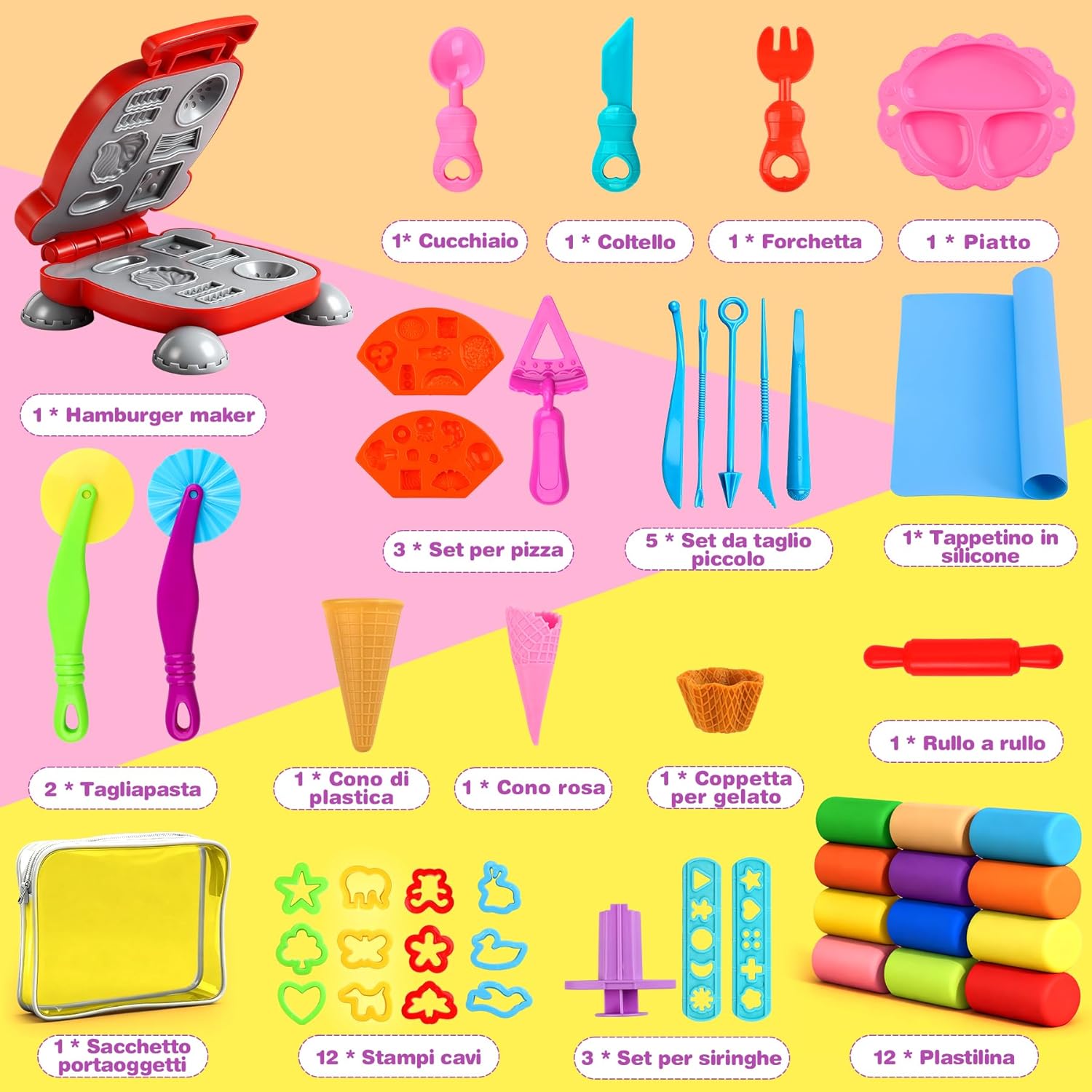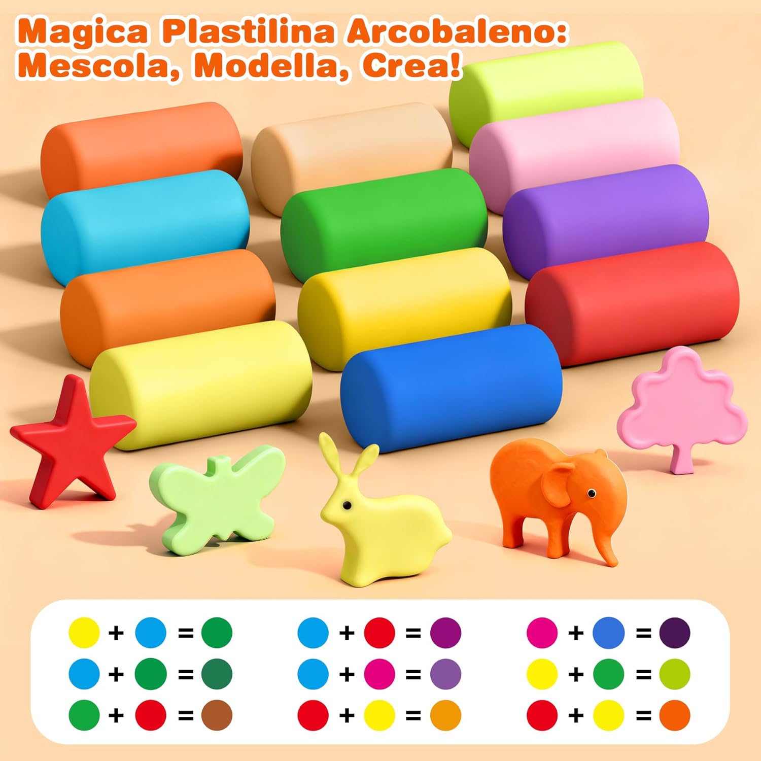 Fornisci strumenti per tagliare, modellare, pressare, modellare e arrotolare i bambini, crea infinite creazioni a casa o a scuola. Per i bambini che amano giocare a fingere di chef e diventare creativi con gli strumenti di modellazione dell'argilla.