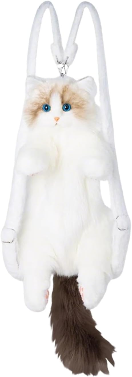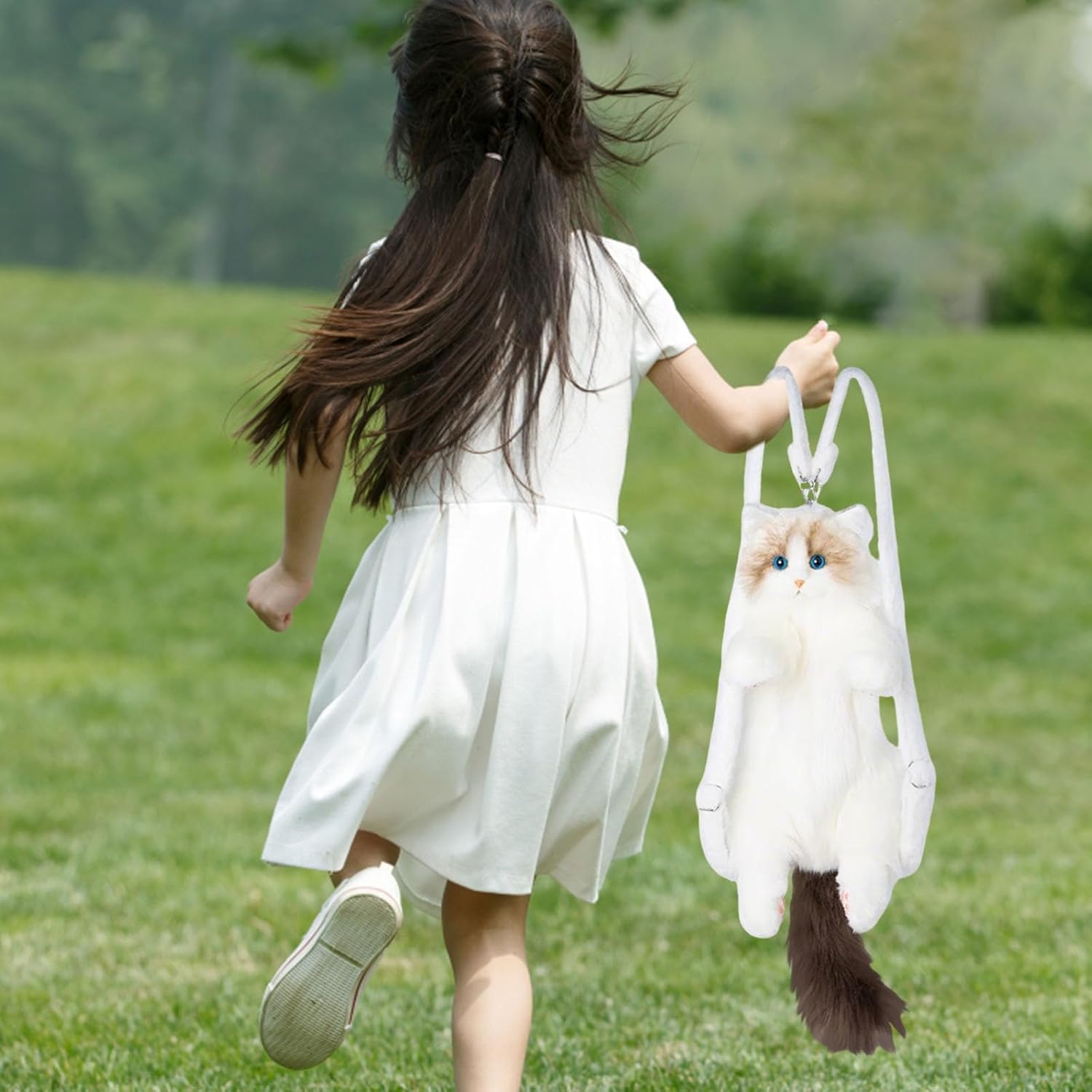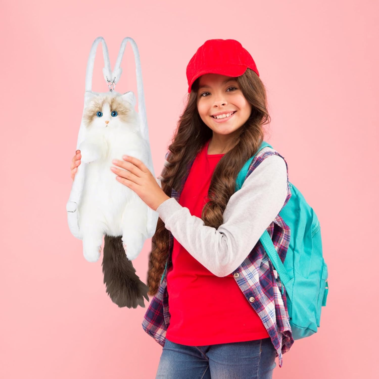 Accessori per la casa delle bambole da giardino realistico Ragdoll, zaino per gatti da donna, borsa a forma carina fatta a mano, lussuoso e carino, zaino per animali per bambole, 43 cm (bianco, 65 cm)