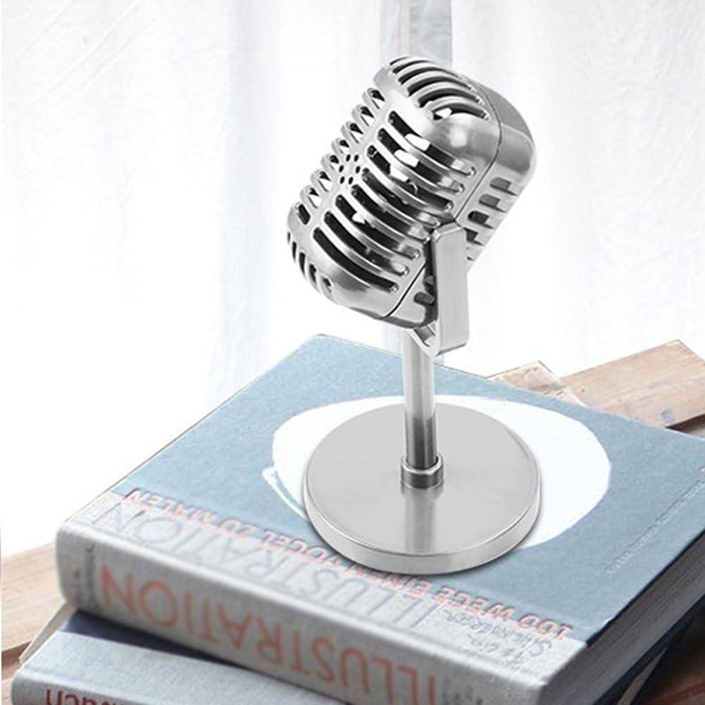 MATERIALE PLASTICO: il modello di accessorio per microfono vintage è realizzato in plastica, robusto e durevole, non si danneggia facilmente e può essere utilizzato a lungo. STILE VINTAGE: gli accessori per microfono retrò sono realizzati in stile vintage e possono fondersi perfettamente con feste a tema vintage, decorazioni, feste e altro ancora. BELLISSIMO ASPETTO: il modello di microfono vintage ha un bellissimo aspetto squisito che sembra molto simile a un vero microfono. FACILE DA TRASPORTARE: il supporto per microfono è leggero e facile da tenere o posizionare. Puoi girare la testa in modo flessibile, la base è rimovibile per un facile trasporto. SPECIALE DIVERTIMENTO: il supporto per microfono vintage conferisce alle tue foto un aspetto più storico e può rendere ogni piccola occasione speciale molto divertente.