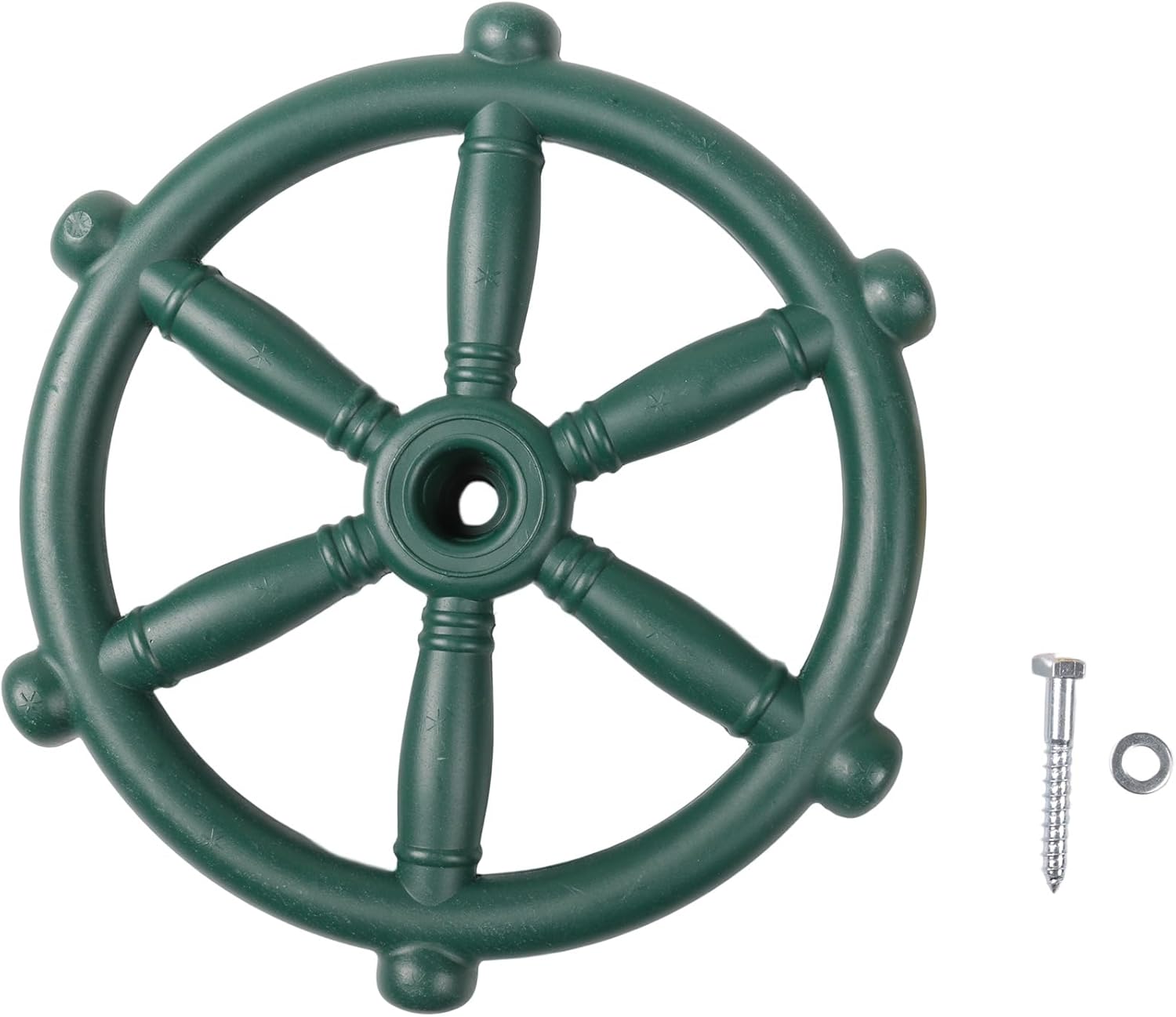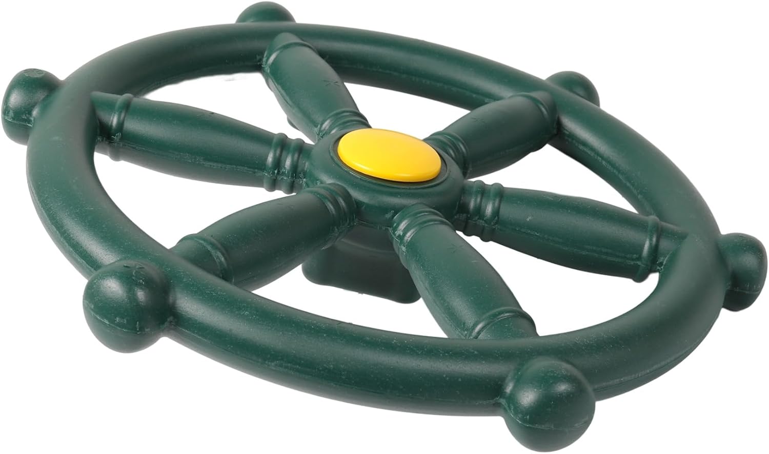 Trasforma qualsiasi cortile in alto mare con questa ruota della nave dei pirati plastica resistente con un diametro di 12 pollici dalle estremità dei raggi Incoraggia il gioco fantasioso e la socializzazione Include piani illustrati e hardware di montaggio per una facile installazione Modellato su una vera ruota di nave, questo design presenta raggi e maniglie dettagliati con un asse giallo colorato.