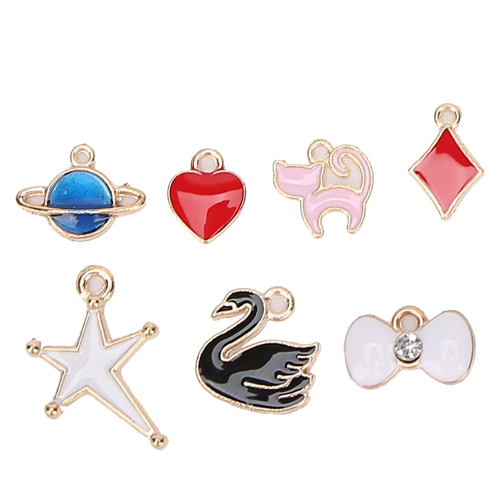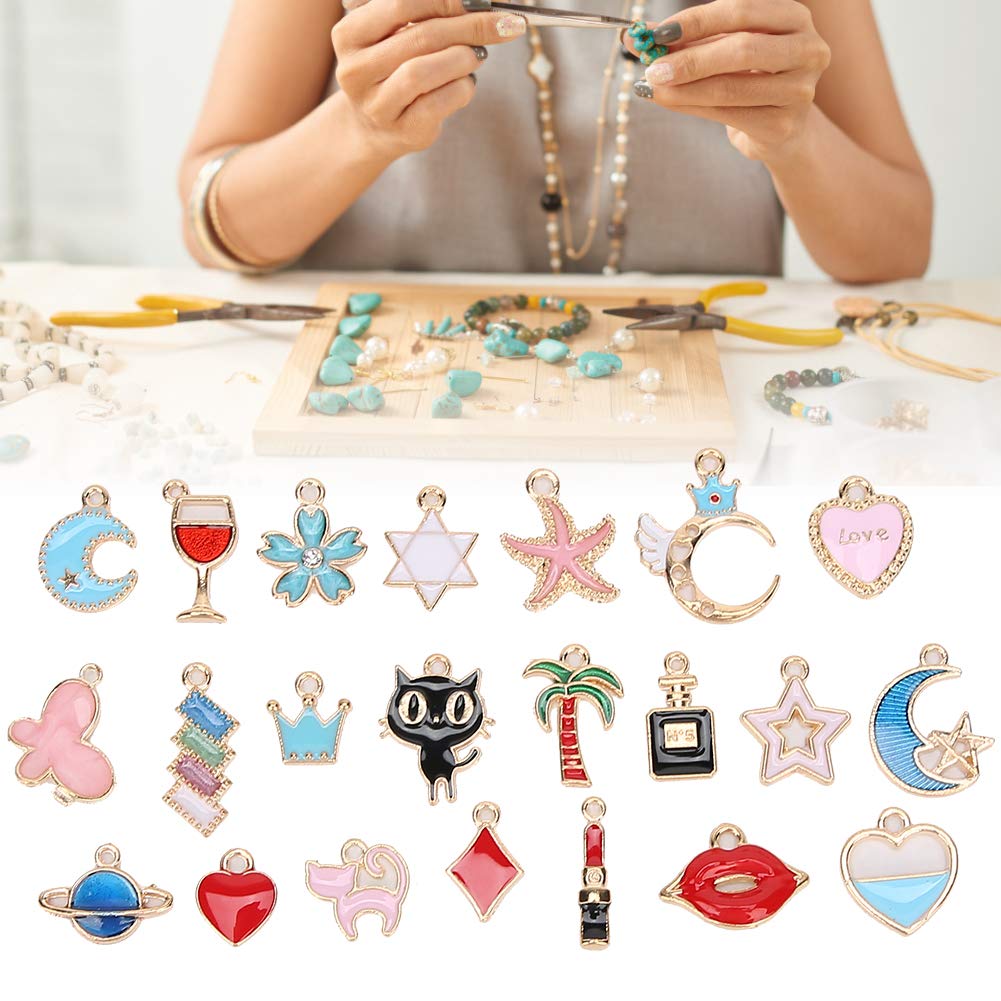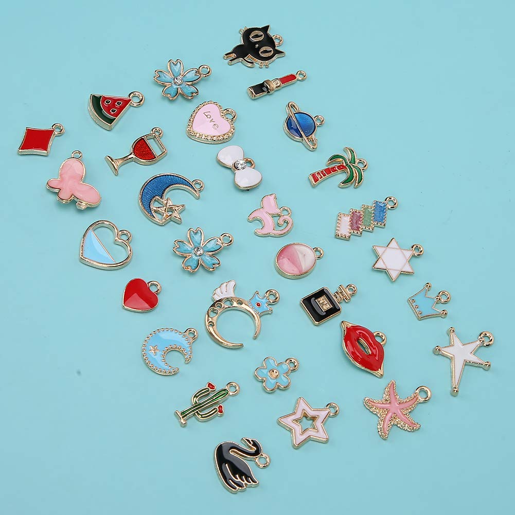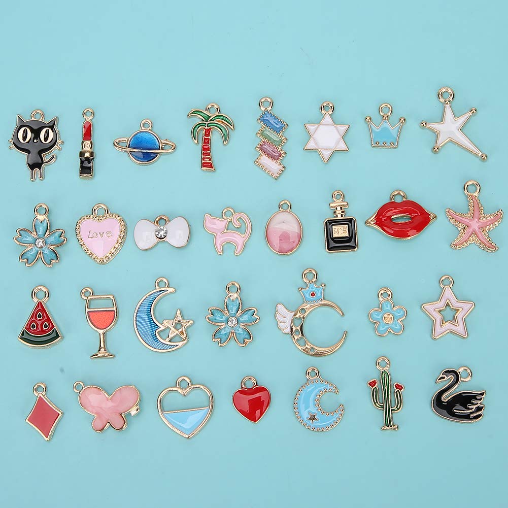 [Materiale in lega di alta qualità]: garantisce la durata e la stabilità del prodotto, per i gioielli fai-da-te [Design unico a goccia di olio]: presenta motivi colorati per mestieri carini e squisiti, facendolo risaltare [Applicazioni versatili]: ideale per produrre braccialetti, collane, pendenti e forcine con 30 simpatici motivi tra cui scegliere [Crea artigianato unico]: con vari motivi, puoi facilmente creare pezzi unici nel suo genere per te o come regali [Adatto per usi multipli]: gioielli fai -da -te, decorazione di abbigliamento, decorazioni chiave e progetti di decorazione per la casa