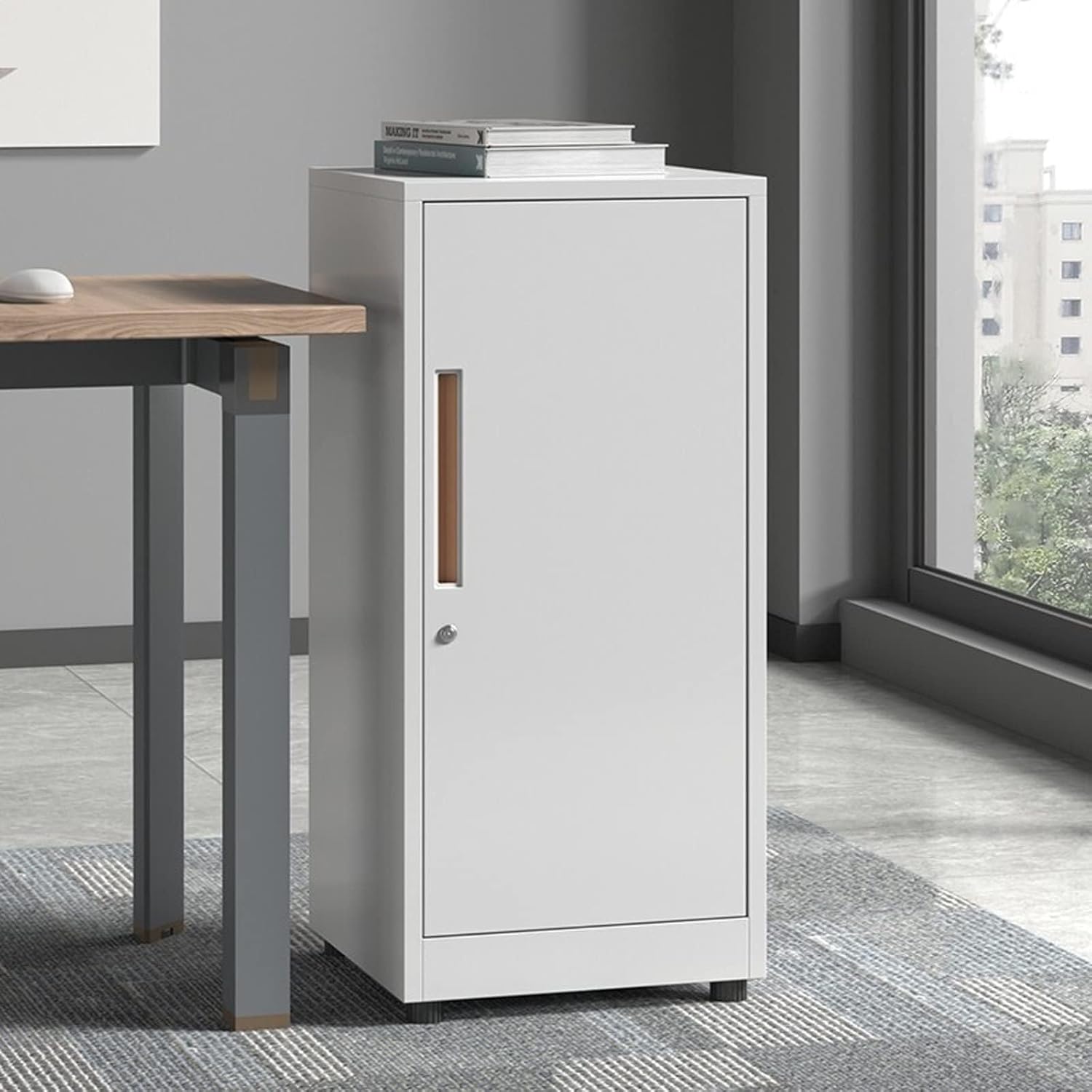 Struttura in metallo resistente: realizzata in acciaio spesso 0,7 mm, questa lima garantisce robustezza e utilizzo a lungo termine, con una finitura che resiste all'usura. Meccanismo di chiusura sicuro: dotato di un'anta singola e serratura integrata, questo armadietto protegge i tuoi documenti importanti da accessi non autorizzati Design compatto: misura 40 cm x 85 cm x 39 cm (15,7 pollici x 33,4 pollici x 15,3 pollici), questo schedario verticale è sottile e salvaspazio, ideale per piccoli uffici o spazi di lavoro domestici Opzioni di colore: disponibile in bianco classico e caffè sofisticato, ti consente di scegliere il colore che meglio si adatta alle tue esigenze. il tuo arredamento Stile moderno: con il suo design semplice e moderno, questo mobile si abbina a una varietà di mobili da ufficio, aggiungendo un tocco di eleganza e fondendosi perfettamente con l'arredamento esistente.