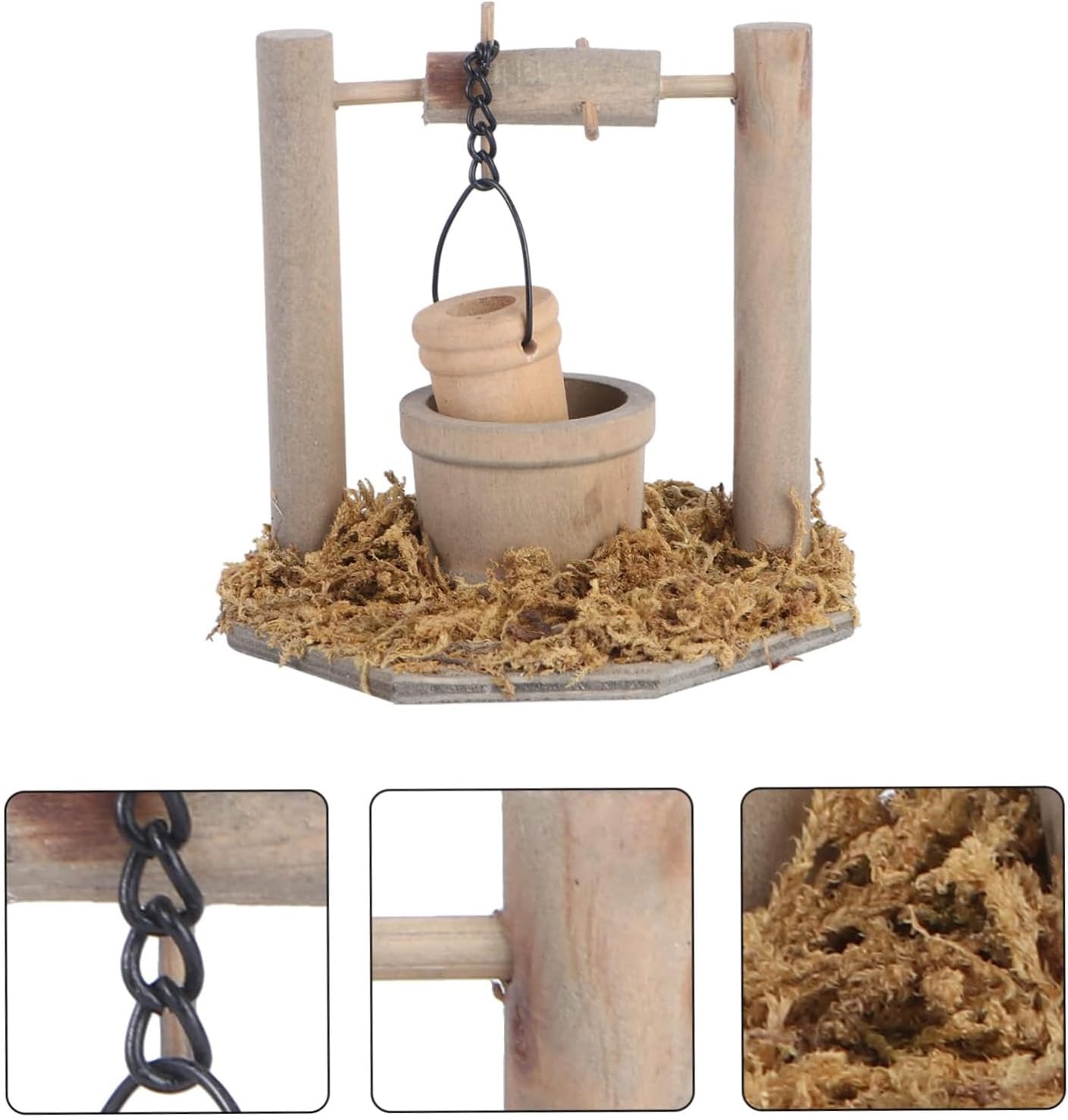 Struttura e dimensioni realistiche del legno, ideali per disporre piante grasse in interni ed esporre villaggi in miniatura all'aperto Ideale per gli appassionati di giardini, modellisti di treni e studenti che creano ecosistemi in miniatura, funge da regalo unico per decoratori di case e lavori manuali in giardino. La piccola statuetta a fontana presenta un design di simulazione, perfetta per personalizzare la pittura o integrarsi perfettamente in scene in miniatura. Miglioramento di terrari, patio o progetti di giardino. Uso selezionato.