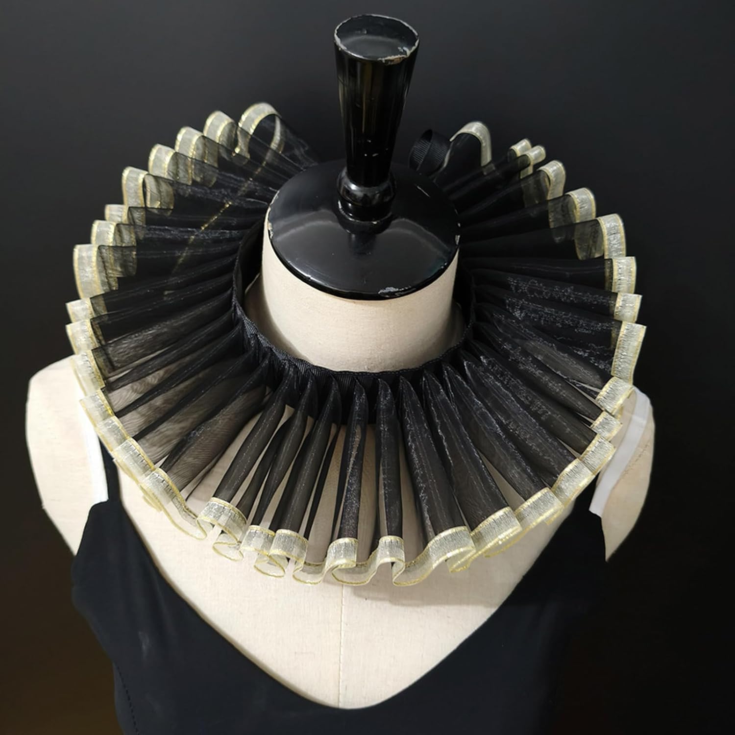 Accessorio per collo increspato decorativo shakespeariano da donna Falso collare Costume storico Gioco di ruolo Evento Collo Ruff Caratteristiche: Realizzato in chiffon, questo colletto rinascimentale elisabettiano presenta un delicato bordo dorato e cinghie posteriori regolabili per una vestibilità comoda e personalizzata in abiti storici o in costume. Misura 38 cm di circonferenza con bordi svasati arricciati, il colletto leggero ravviva facilmente la sua forma voluminosa con un asciugacapelli, ideale per ensemble elisabettiani, vittoriani o medievali per gli appassionati di LARP, artisti teatrali, cosplayer e chiunque cerchi autentici rinascimentali o accessori per costumi shakespeariani. Eleva rievocazioni storiche, feste a tema, costumi di Halloween o produzioni teatrali con questo girocollo in stile vittoriano. Progettato per abbinarsi perfettamente con abiti nobili, costumi da clown o abiti medievali, questo colletto a balze aggiunge fascino drammatico a qualsiasi ritratto o evento di personaggio. Specifiche tecniche: Componente: chiffon Dimensioni: circonferenza del collare: 38 cm. Colore opzionale: Bianco/Nero La confezione include: 1 collare finto con volant. Nota: Si prega di considerare un margine di errore di 1-3 cm dovuto alla misurazione Si prega di assicurarsi che non sia un problema prima di effettuare l'ordine. A causa delle differenze tra i diversi monitor, l'immagine potrebbe non riflettere esattamente il colore dell'articolo.
