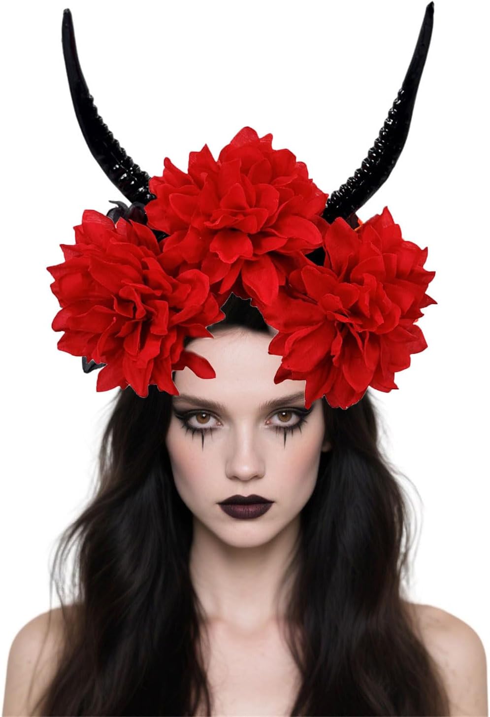 Accessorio per capelli in corno di antilope in resina leggera con accenti floreali per Halloween Cosplay fascia per capelli per adulti bambini feste comodo copricapo di Halloween