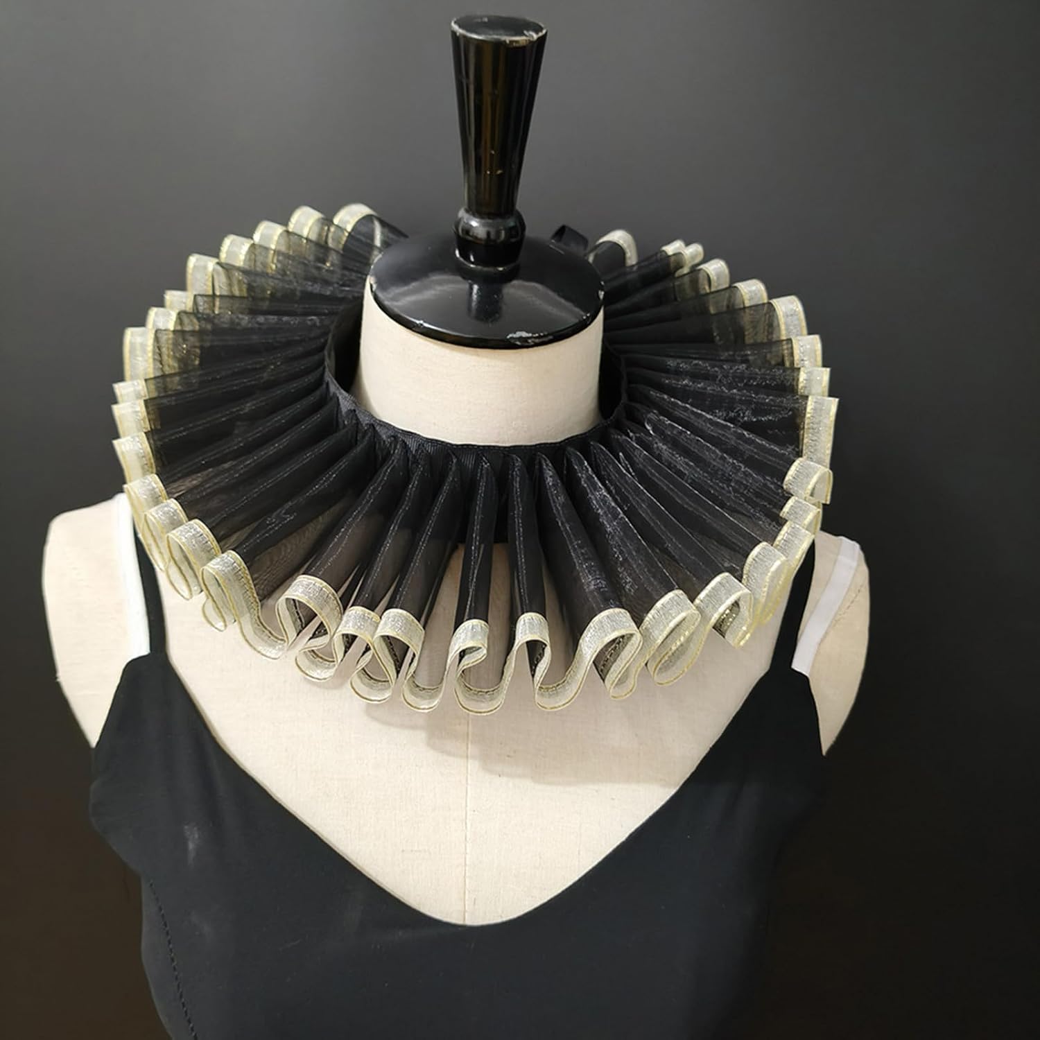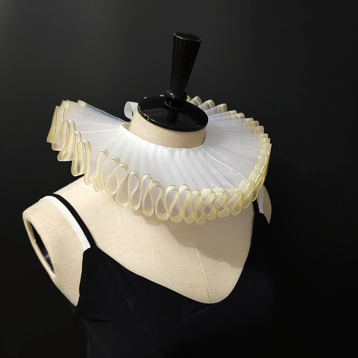 Accessorio per collo increspato decorativo shakespeariano da donna Falso collare Costume storico Gioco di ruolo Evento Collo Ruff Caratteristiche: Realizzato in chiffon, questo colletto rinascimentale elisabettiano presenta un delicato bordo dorato e cinghie posteriori regolabili per una vestibilità comoda e personalizzata in abiti storici o in costume. Misura 38 cm di circonferenza con bordi svasati arricciati, il colletto leggero ravviva facilmente la sua forma voluminosa con un asciugacapelli, ideale per ensemble elisabettiani, vittoriani o medievali per gli appassionati di LARP, artisti teatrali, cosplayer e chiunque cerchi autentici rinascimentali o accessori per costumi shakespeariani. Eleva rievocazioni storiche, feste a tema, costumi di Halloween o produzioni teatrali con questo girocollo in stile vittoriano. Progettato per abbinarsi perfettamente con abiti nobili, costumi da clown o abiti medievali, questo colletto a balze aggiunge fascino drammatico a qualsiasi ritratto o evento di personaggio. Specifiche tecniche: Componente: chiffon Dimensioni: circonferenza del collare: 38 cm. Colore opzionale: Bianco/Nero La confezione include: 1 collare finto con volant. Nota: Si prega di considerare un margine di errore di 1-3 cm dovuto alla misurazione Si prega di assicurarsi che non sia un problema prima di effettuare l'ordine. A causa delle differenze tra i diversi monitor, l'immagine potrebbe non riflettere esattamente il colore dell'articolo.