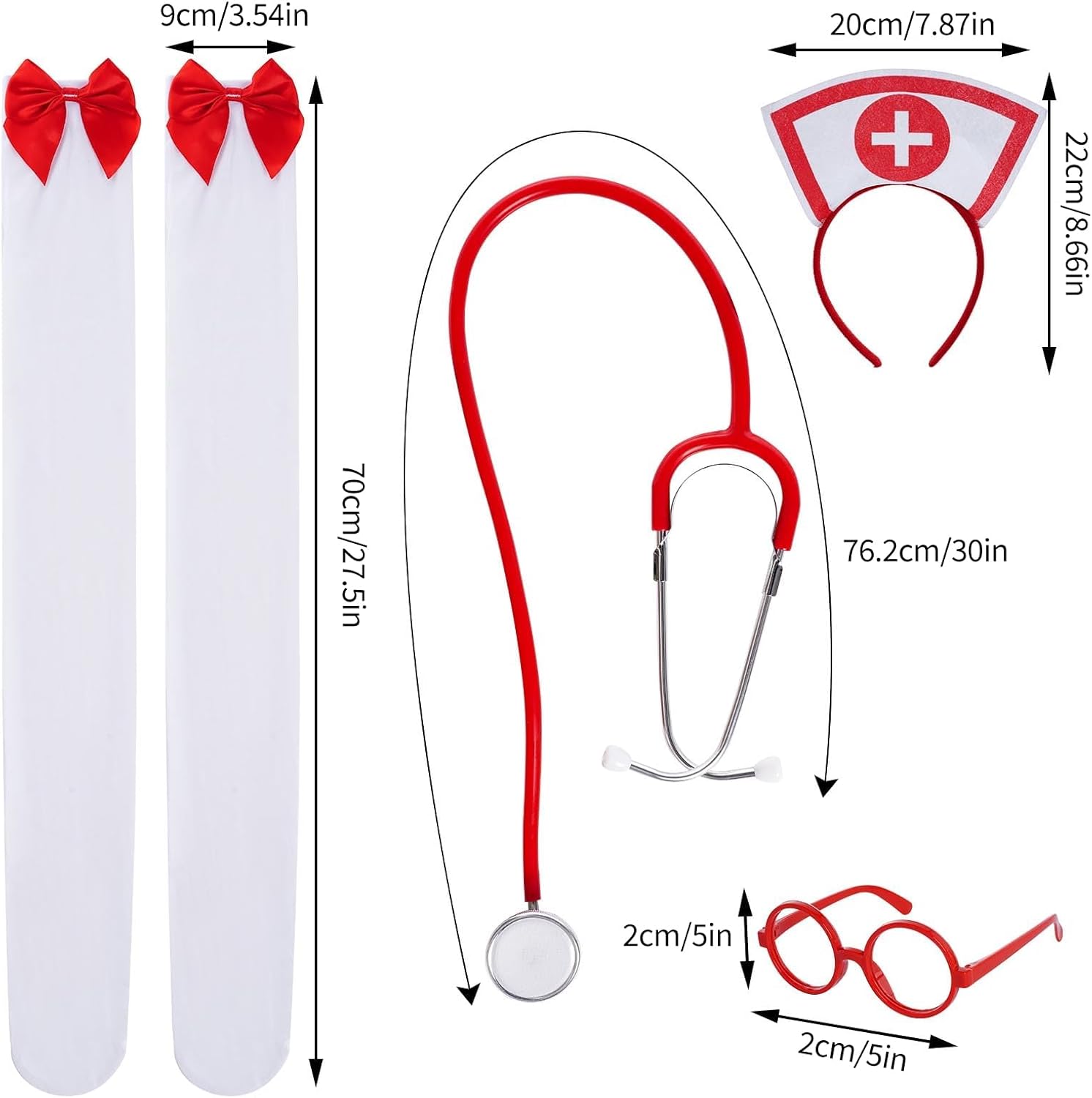 Descrizione prodotto 1. La confezione include un body da infermiera e tutti gli accessori necessari, come un berretto e uno stetoscopio, per completare il tuo look. Migliora le tue curve con questo body da infermiere. Questo costume da infermiera ti renderà più affascinante e sexy. 2. Questo costume da infermiera include calze per completare il tuo look. Il motivo a croce sul retro dell'infermiera cattiva ti rende più sexy e affascinante. 3. Serate a tema, travestimenti per infermiere, festa infermieristica, lauree scolastiche, feste cosplay a tema medico, compleanni, balli di fine anno, spettacoli sul palco, eventi fantastici, fumetti, feste cosplay di Halloween, giochi di ruolo, ecc. Descrizione: Nome del prodotto: set uniforme per infermiere. Adatto per la folla: donne. Colore: rosso, bianco. Lista delle merci: 1 x Stetoscopio 1 1 x Fascia per cappello da infermiera. 1 x coprigambe 1 x occhiali. Consigli gentili: 1. Si consiglia di lavare a mano e asciugare in un luogo fresco. Lo sbiancamento è vietato. 2. Il colore reale dell'articolo potrebbe differire leggermente da quello mostrato nelle immagini a causa della luminosità e delle impostazioni dello schermo. 3. Si prega di considerare una leggera differenza di dimensioni dovuta alla misurazione manuale. Avviso di sicurezza Non applicabile
