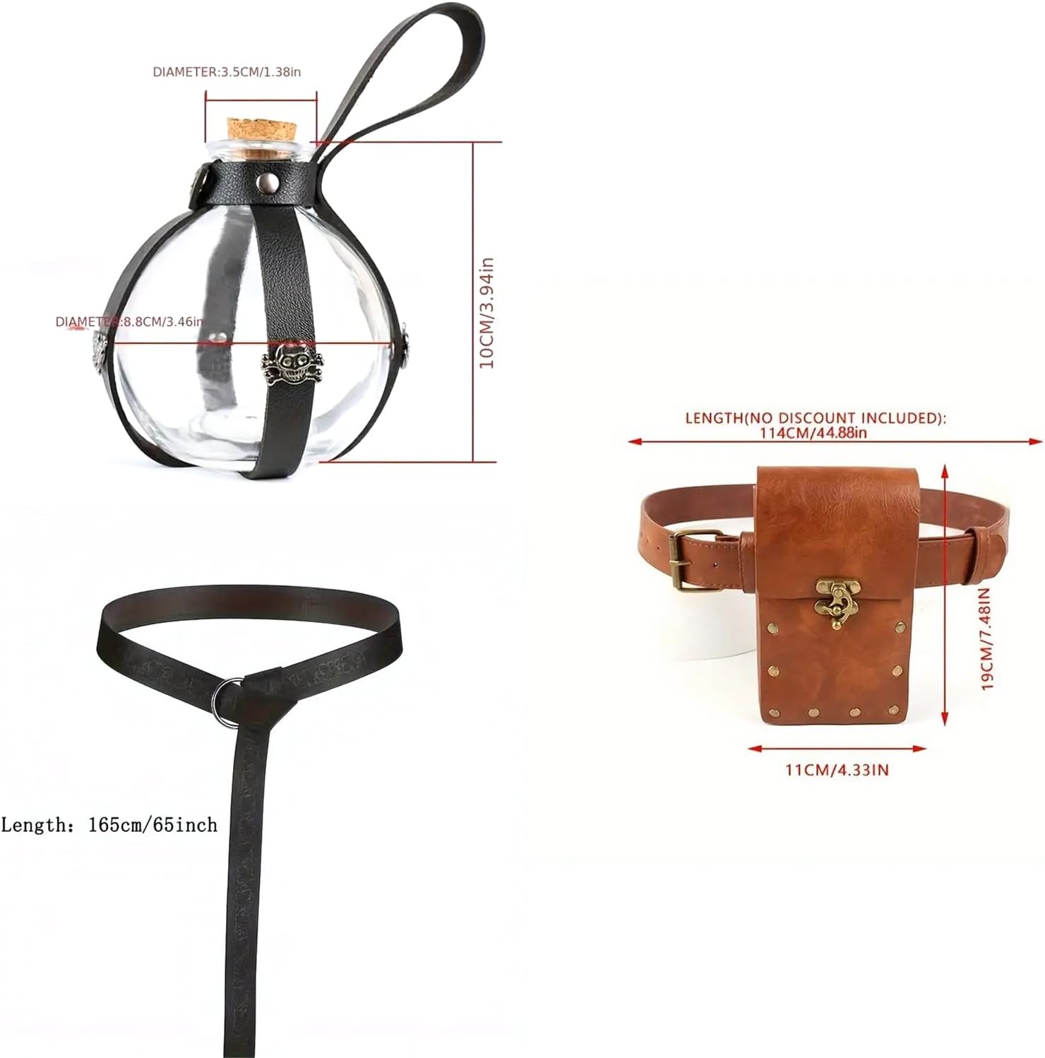 Accessorio per costume da vichinghi rinascimentali, pozione medievale pirata pozione bottiglia gancio cinghia per Halloween rinascimentali cosplay costume Caratteristiche: Per cosplay di Halloween, festival rinascimentali, spettacoli di cosplay, feste, giochi di ruolo dal vivo, rinascimenti, travestimenti, oggetti di scena teatrali, mascherate, rievocazioni storiche. Accessori per feste a tema eventi costume cosplay e così via Gli accessori per costumi da cavalieri medievali rinascimentali sono realizzati in materiali, leggeri, pieni di durata, che ti fanno indossare facilmente e adattarsi meglio. Meraviglioso dolce meraviglioso sorpreso bambini, amico. La confezione include cintura in pelle, marsupi, set di bottiglie di pozione in sughero da strega, cinturino in pelle, bottiglie di pozioni e così via, diverse confezioni includono cose diverse si prega di confermare le vostre esigenze prima di ordinare Dimensioni: adatto per la maggior parte degli adulti. Specifiche tecniche: Materiale: pelle sintetica. Stili: 01, 02, 03, 04, 05, 06, 07. La confezione include: 1 set di costumi rinascimentali da uomo. Nota: Considerare un margine di errore di 1-2 cm dovuto alla misurazione manuale. A causa delle differenze tra i diversi monitor, l'immagine potrebbe non rispecchiare il colore reale dell'articolo.