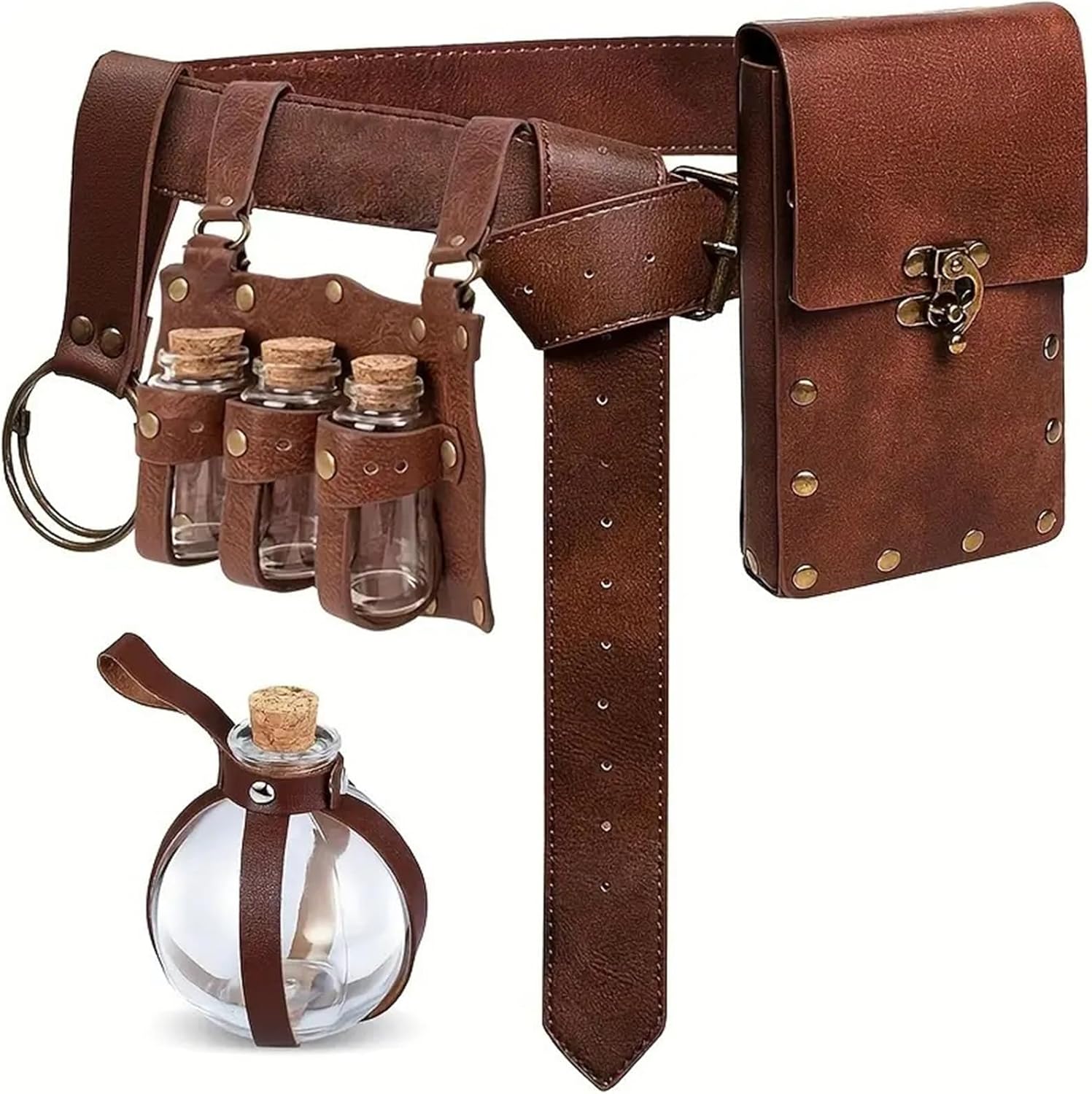 Accessorio per costume da pirata medievale da vichinghi, cintura in pelle per Halloween, rinascimentali, cosplay, costume medievale da pirata