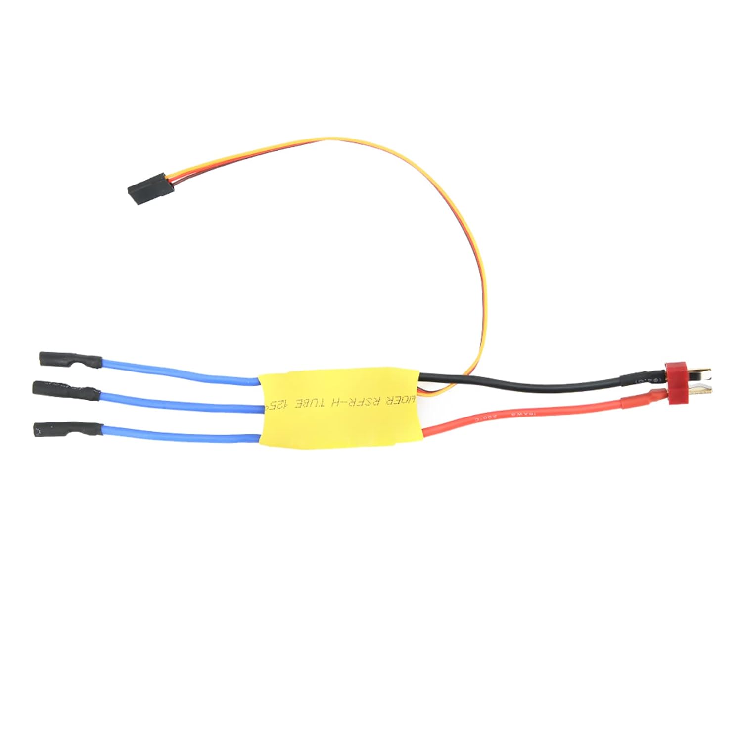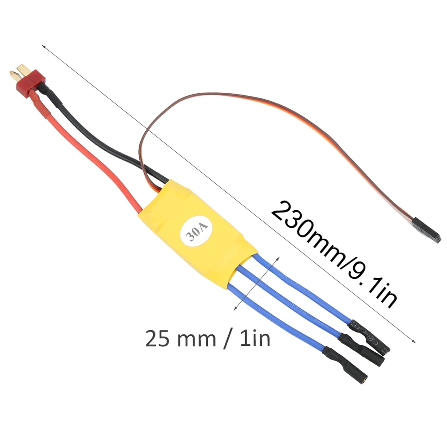 1. Il condensatore a impedenza ultra-bassa migliora la capacità anti-interferenza per prestazioni stabili. 2. Il dissipatore di calore indipendente sul MOSFET riduce l'aumento di temperatura e supporta il funzionamento ad alta corrente. 3. Il controllo a chip singolo consente un'uscita continua di 30 A, istantanea di 35 A e 40 A per 10 secondi. 4. Il chip indipendente di stabilizzazione della tensione previene le interferenze di potenza derivanti dalle variazioni del carico BEC. 5. La funzione di accensione impedisce l'avvio immediato del motore in qualsiasi posizione dell'acceleratore per sicurezza.