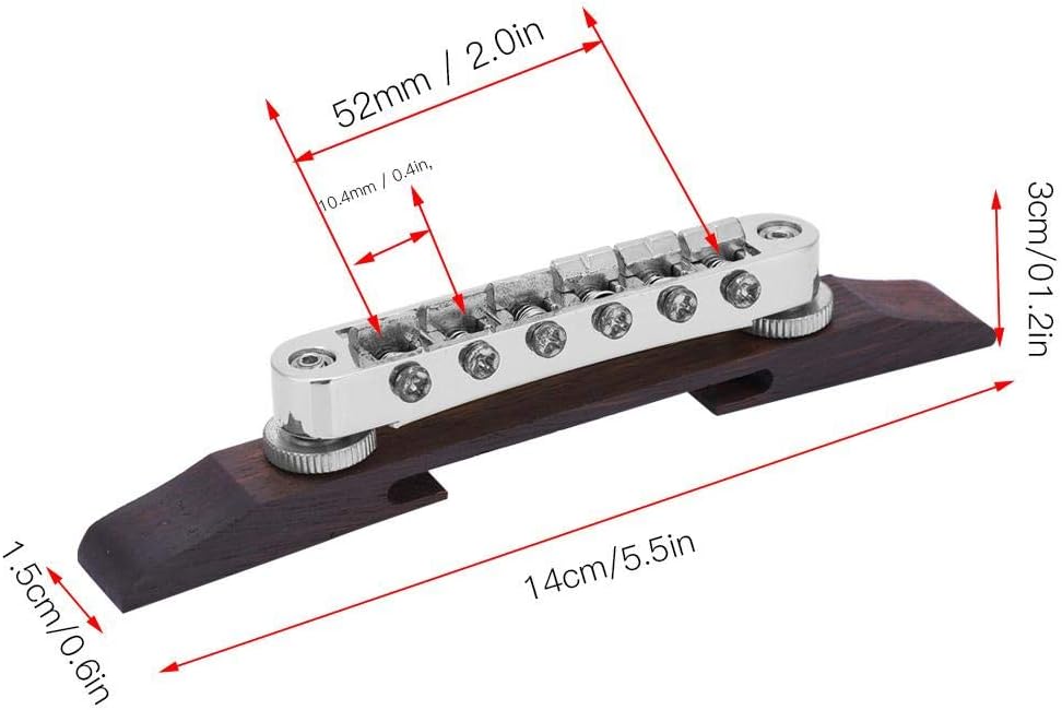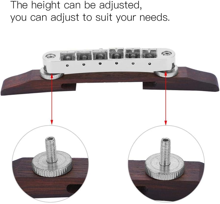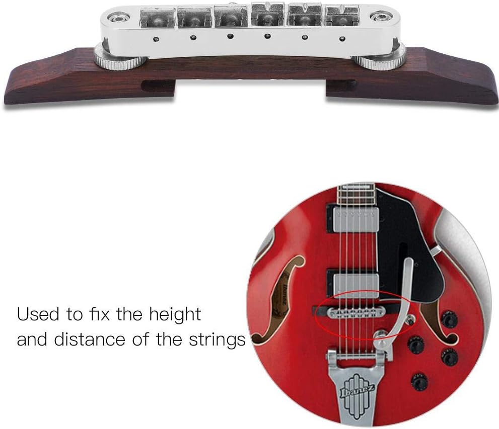 Ponte in palissandroMATERIALE PREMIUM: Realizzato in solida lega di zinco e palissandro, questo ponte per chitarra è durevole, robusto e resistente alla ruggine, garantisce un uso prolungato. Inoltre, metallo e legno di alta qualità possono produrre un suono meraviglioso, facendoti ascoltare meglio la musica. ACCESSORIO: il ponte della chitarra viene utilizzato per fissare l'altezza e la distanza delle corde. Accessori per le prestazioni FACILE DA INSTALLARE: la vite di montaggio viene fornita con punte, che possono essere rimosse e installate facilmente, possono essere regolate ripetutamente, più durevoli. Accessori per strumenti musicali ADATTO A: Due colori disponibili, il ponte per chitarra è adatto per chitarre di tipo SG LP, che è una decorazione perfetta e un pezzo di ricambio per la chitarra. : Il nostro prodotto ha una durata di 180 giorni. Se hai domande su questo prodotto, non esitare a contattarci, faremo del nostro meglio per aiutarti a risolvere il tuo problema.