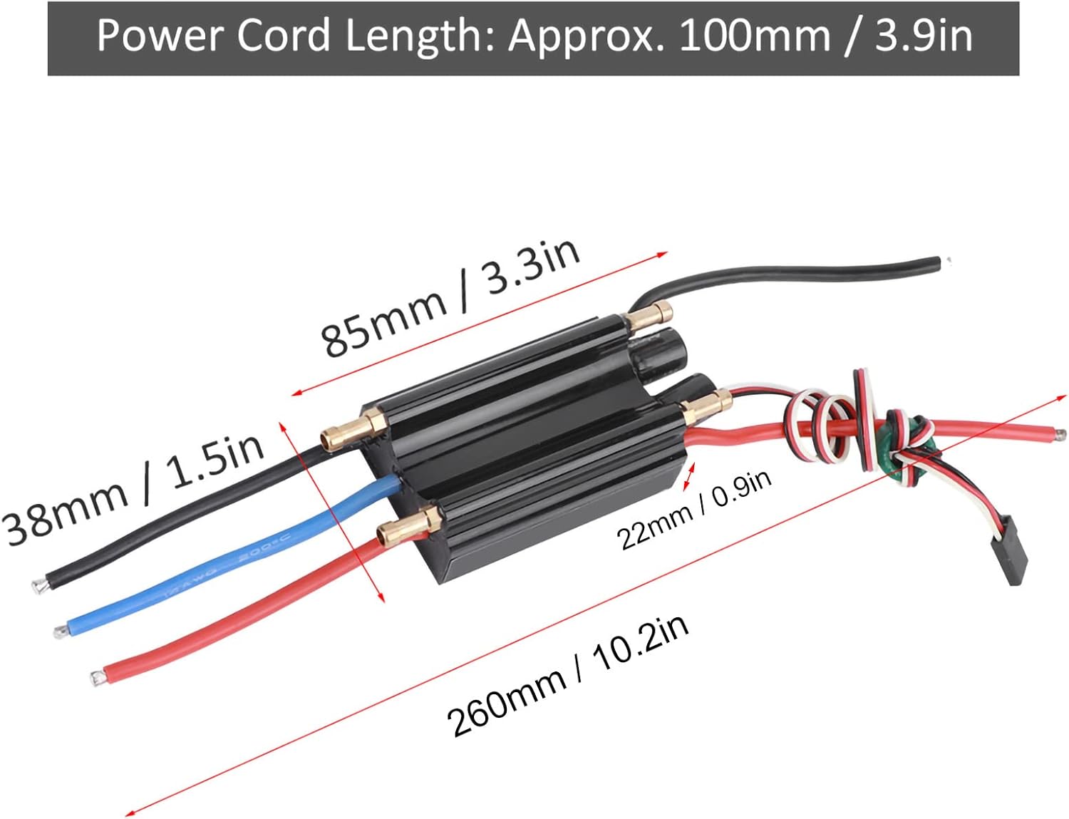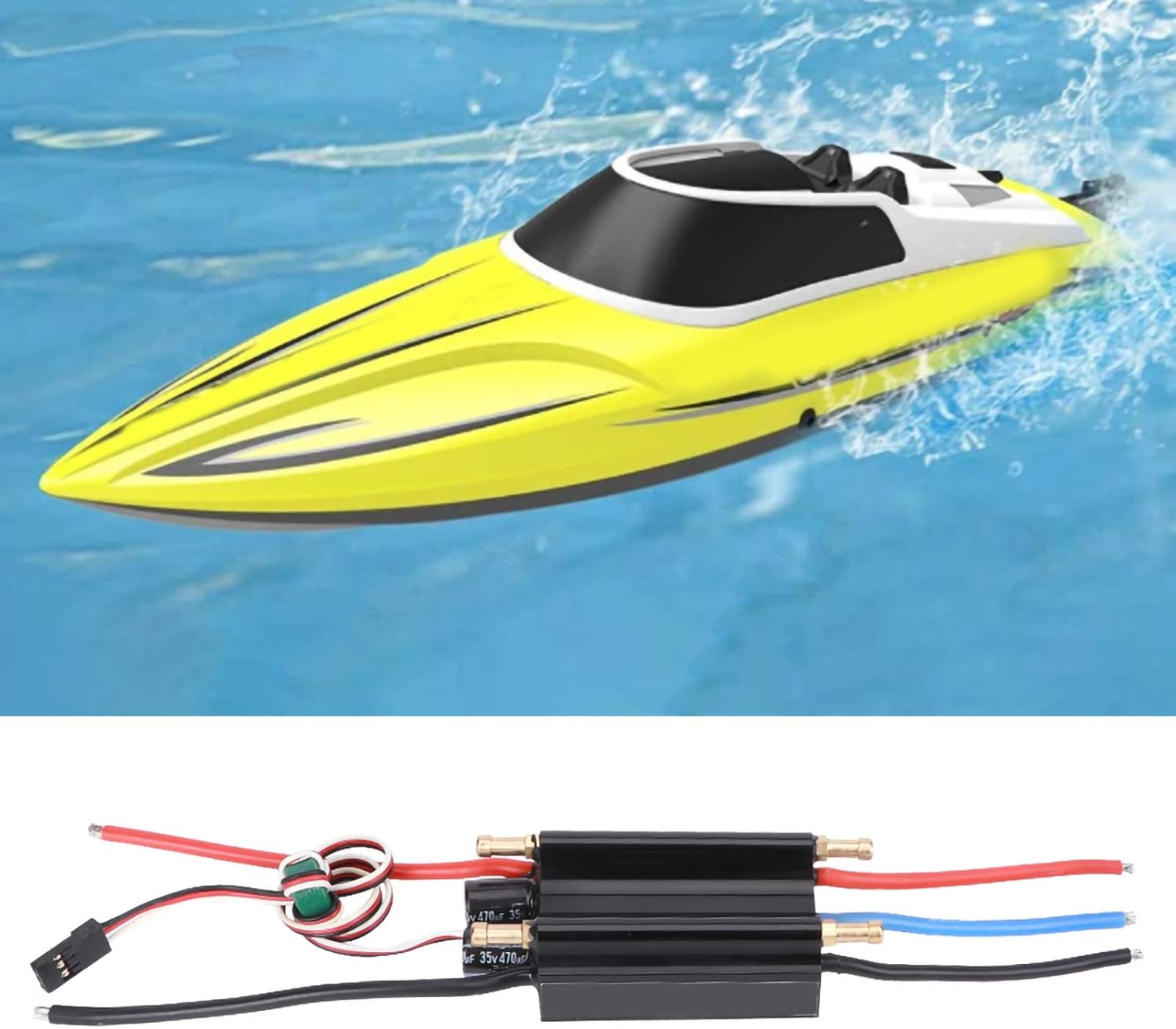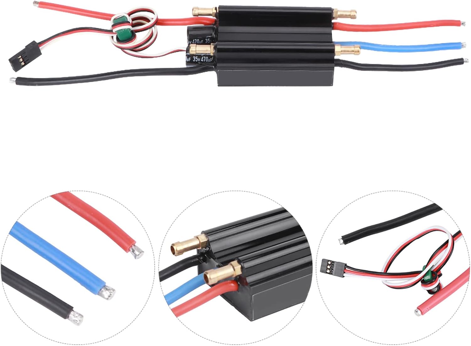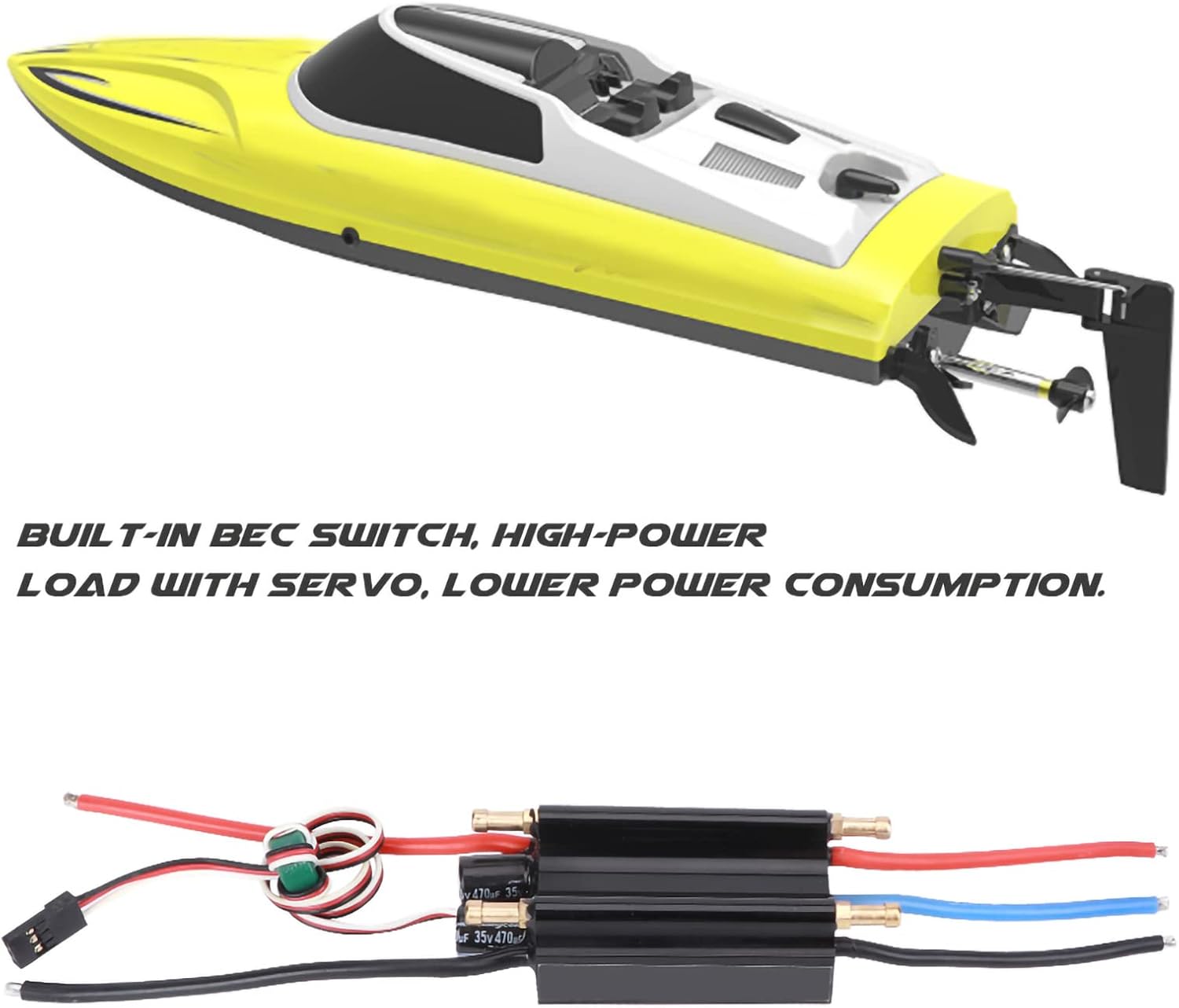 Adotta guscio metallico di alta qualità, nuovi design dei circuiti e una forte capacità anti-interferenza. ESC per barca RC da 60 A, funzione potente, drenaggio a doppio canale, può raffreddarsi rapidamente. SBEC integrato, facile da usare e i parametri possono essere configurati tramite il trasmettitore o la scheda di programma. Interruttore BEC integrato, carico ad alta potenza con servo, consumo energetico ridotto. Per gli appassionati di barche RC, è un'ottima scelta per migliorare le prestazioni della barca RC.