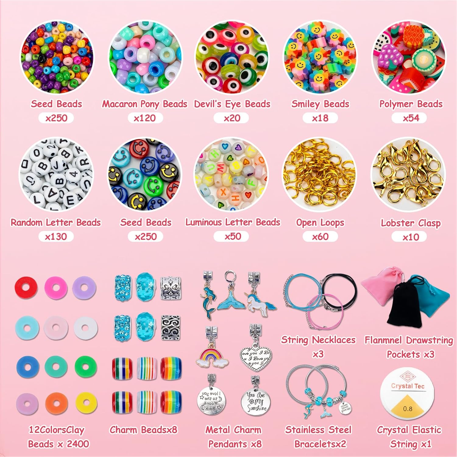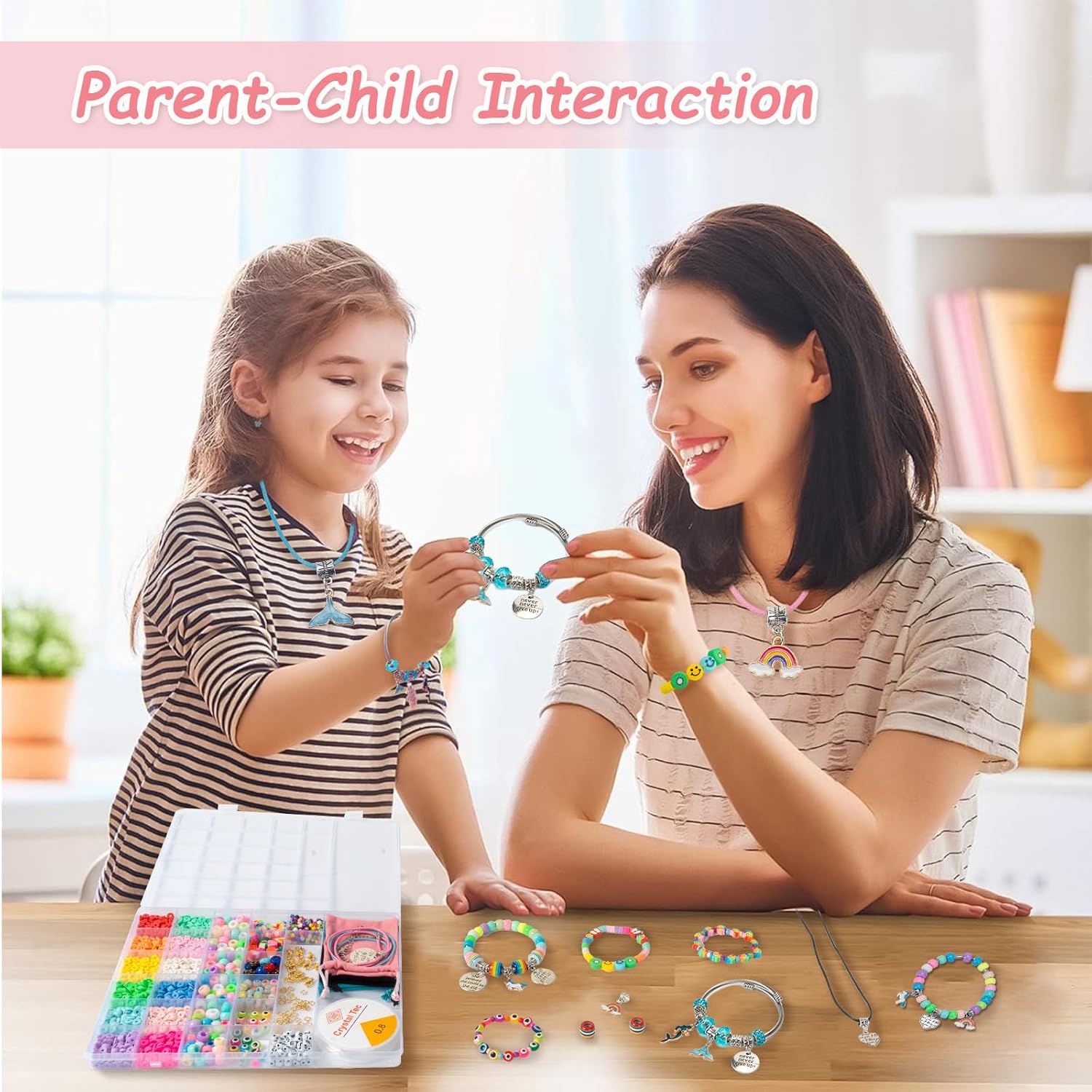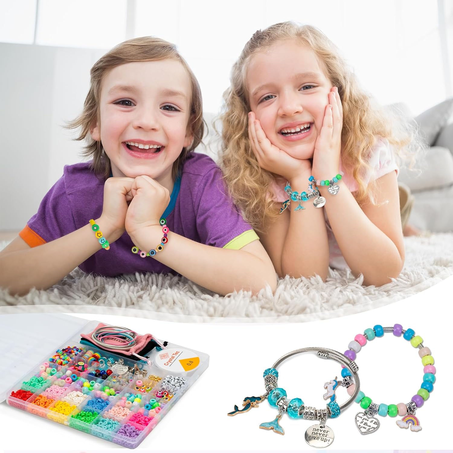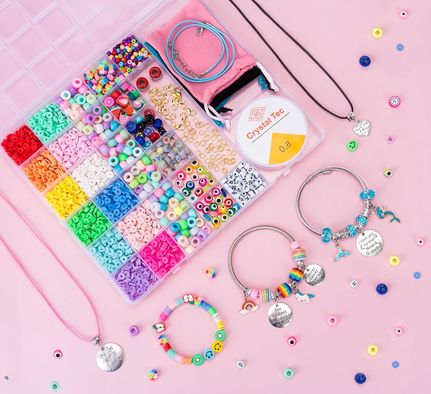 【Kit All In One】 Siete alla ricerca del regalo di Natale o di compleanno ideale per la vostra figlia, nipote o fidanzata creativa e artigianale? Allora il nostro set di braccialetti per ragazze è quello che fa per te! Questo set è stato progettato per bambine dai 5 ai 12 anni e contiene tutto il necessario per realizzare braccialetti belli e unici Kit divertente per ragazze: questo kit contiene 2400 perline di argilla (12 colori), una varietà di perline per pony, perline e spago. Crea fino a dozzine di modi per giocare con le perline per l'arte e l'artigianato dei bambini. Goditi gioielli fatti a mano o fai un regalo significativo. Ti divertirai sicuramente a creare i tuoi gioielli di perle perfetti Possibilità di creazione del bracciale senza fine: le ragazze possono personalizzare i braccialetti alla moda per tutte le occasioni e gli stati d'animo, un modo molto bello per esprimere la propria individualità e amicizia. Crea un braccialetto per un caro amico per esprimere la propria amicizia. Oppure mostra il tuo apprezzamento per un membro della famiglia regalandogli un braccialetto fai da te come regalo Facile da usare: anche i principianti possono divertirsi immediatamente. Questo kit è perfetto per giocare con i bambini durante le vacanze e aiuta a migliorare la coordinazione occhio-mano, la percezione dei colori, la destrezza manuale e la concentrazione Ottima idea regalo per ragazze: questo set di braccialetti con charm è un ottimo regalo per le ragazze che amano i progetti fai da te. Non è solo divertente, ma promuove anche la sua espressione artistica e migliora le sue capacità motorie fini. Giocattolo artigianale perfetto per Natale, compleanni, vacanze o qualsiasi occasione che le ragazze apprezzeranno
