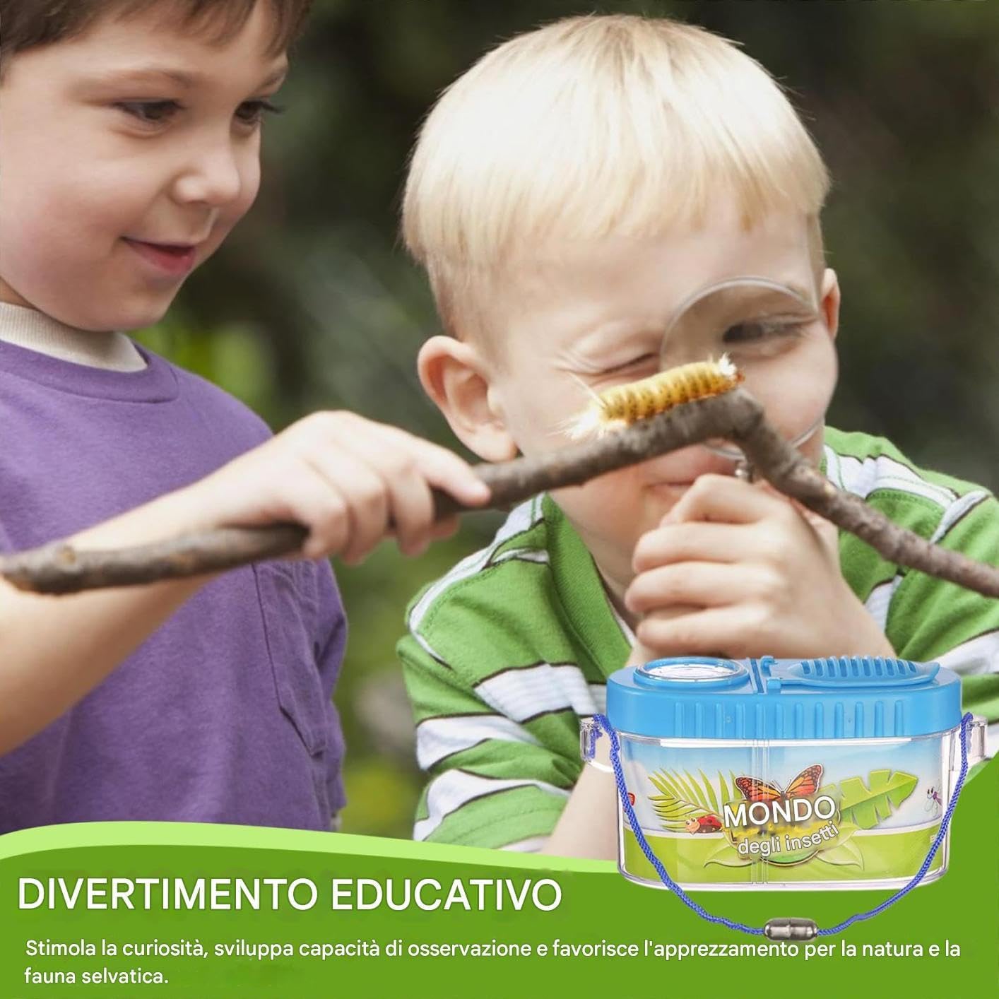 Zona Interazione Trasparente: Realizzata in materiale PP trasparente per massima visibilità, crea spazio simile alla natura che consente ai bambini di osservare da le interazioni tra farfalle in modo diretto e affascinante Utilizzo Intuitivo: Potenzia l'attenzione ai dettagli con strumento d'ingrandimento per visioni ravvicinate e pinzette per manipolazione accurata, incoraggiando efficacemente l'esplorazione pratica tra i bambini. Kit di osservazione farfalle: Pareti laterali in rete traspirante e zone organizzate per diverse specie consentono ai bambini di osservare ogni fase della metamorfosi delle farfalle stimolando curiosità e apprendimento pratico senza sforzo Divertimento Avventuroso: Ideale per interni o esterni promuove il divertimento educativo ispirando i bambini a partecipare ad esperimenti pratici che stimolano la curiosità e sviluppano le capacità osservative attraverso il gioco interattivo Strumenti Educativi: Offre esperienza educativa e divertente con gabbia, strumenti e retino per ispirare apprendimento pratico tramite attività esplorative manuali