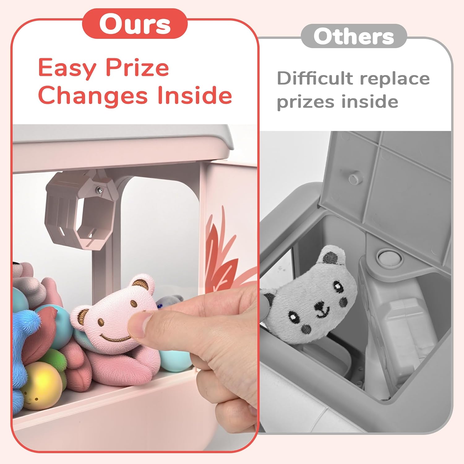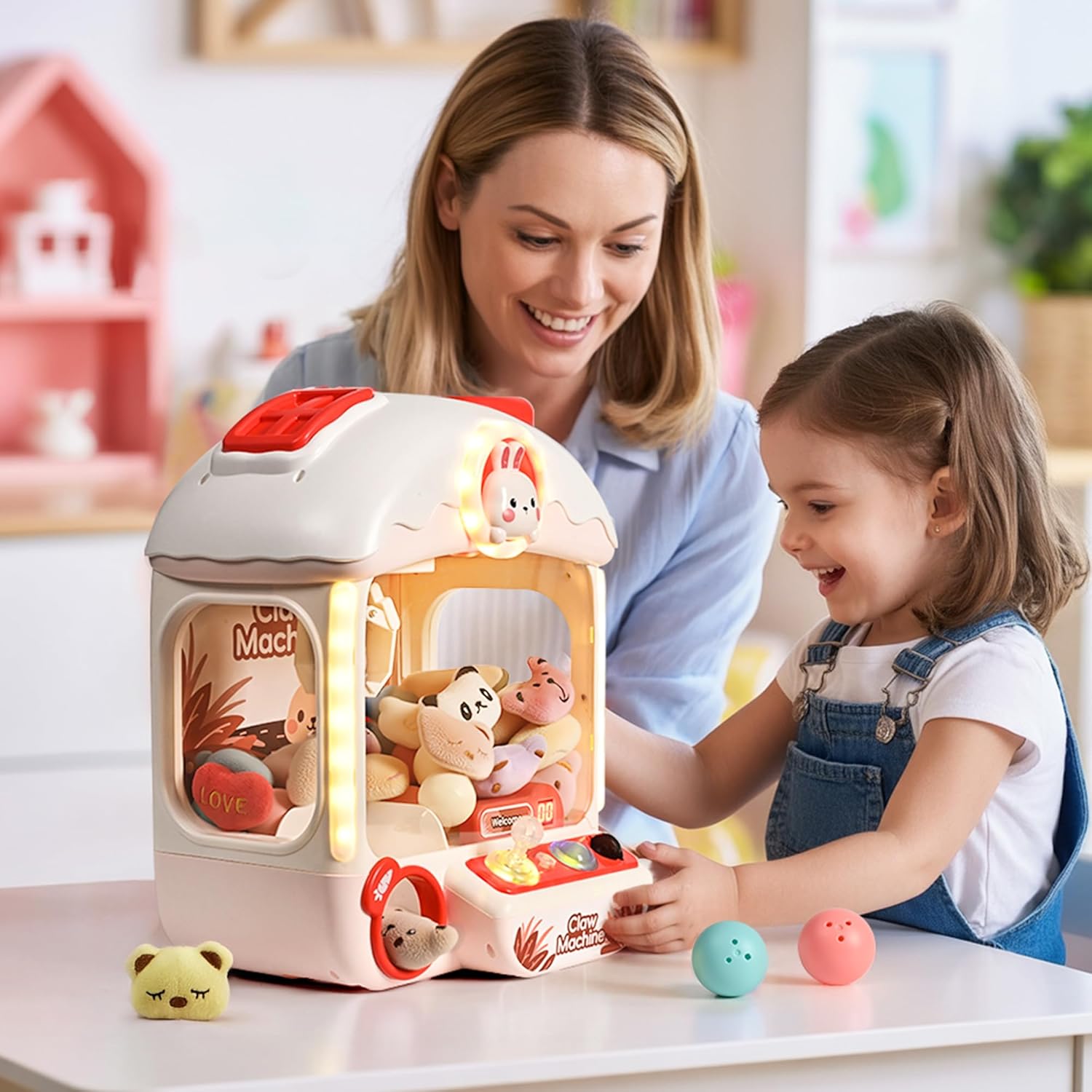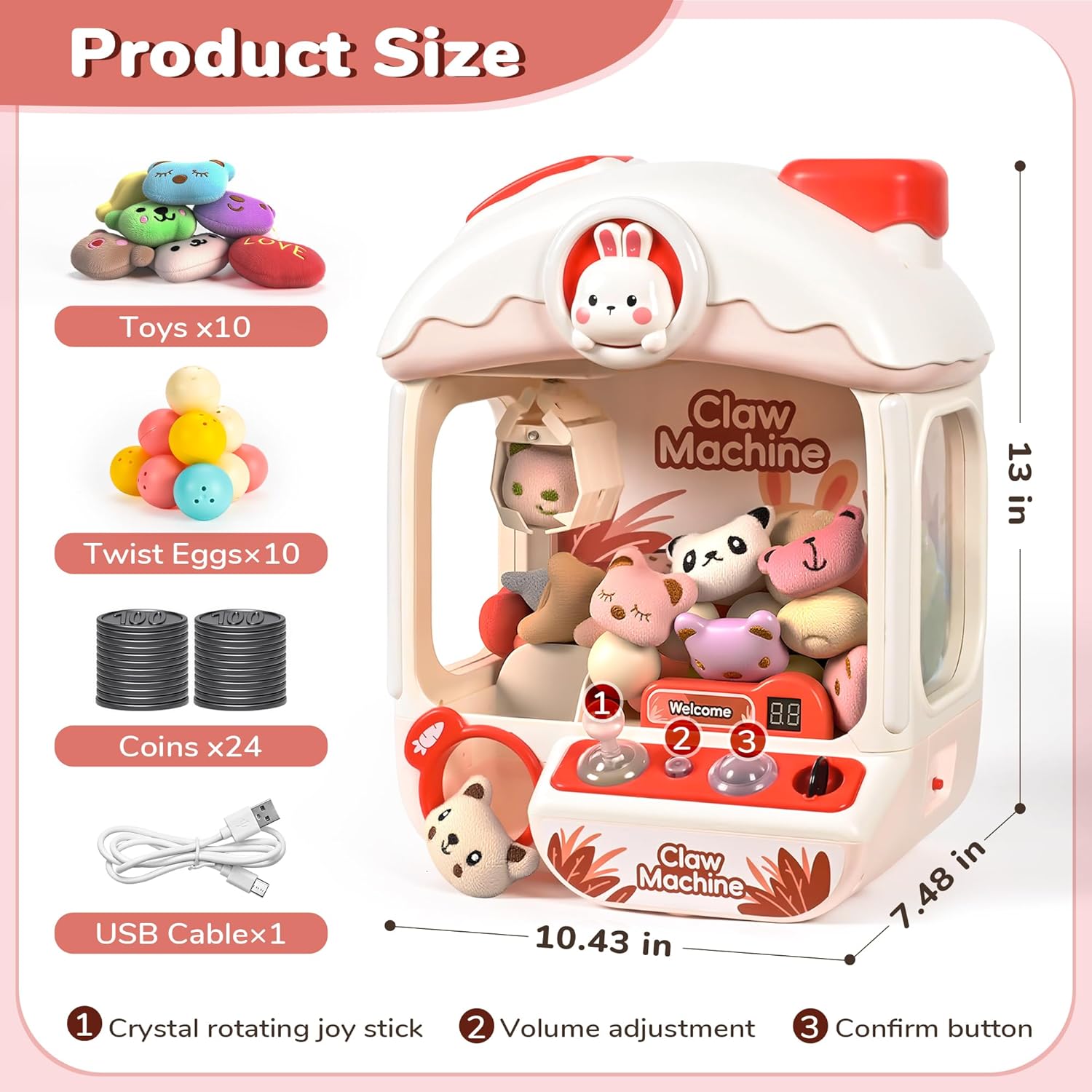 【Esperienza di gioco coinvolgente】 La macchina per afferrare caramelle è dotata di un sistema musicale e di illuminazione integrato. Il joystick in cristallo a 360° consente un controllo fluido della presa su un'ampia gamma. Dotato di conto alla rovescia di 60 secondi e regolazione del volume.,Ricchi accessori: questa macchina per catturare include 10 bambole, 10 uova Twist, 24 monete e un cavo di ricarica USB. Inoltre, l'interno della capsula può essere facilmente sostituito con diversi regali come caramelle, piccoli giocattoli, ecc. 【Facile da usare】 Alimenta il produttore di differenziali con un cavo USB o 4 batterie AA (non incluse). Basta posizionare i premi all'interno, inserire una moneta e avviare il conto alla rovescia di 60 secondi. Usa il joystick in cristallo a 360° per controllare la pinza e catturare i giocattoli.,Sviluppo delle abilità: il nostro distributore di caramelle aiuta a sviluppare la coordinazione occhio-mano e la concentrazione dei bambini. Inoltre, la natura interattiva del gioco promuove le interazioni interpersonali tra i bambini, incluso il legame genitore-figlio.,Regalo ideale: la nostra macchina per artigli non è solo un gioco divertente, è anche un ottimo distributore di regali! Questa mini macchina con pinza è un regalo perfetto per i bambini. Ideale per Capodanno, Natale, vacanze o compleanni