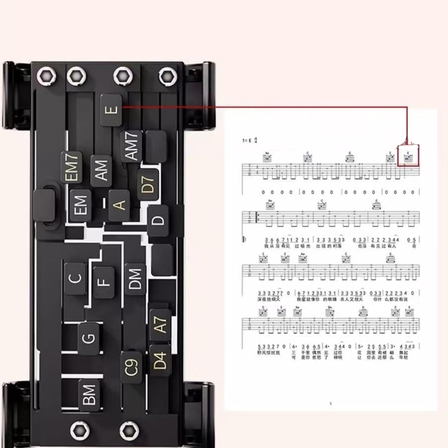 Uso flessibile: uno strumento adattabile per chitarre da 38/41 pollici, che come supporto ideale per l'apprendimento facilita il cambio di accordi, migliora l'allenamento dell'esercizio ed è perfettamente adatto a diverse dimensioni della chitarra Montaggio rapido: questo accessorio si attacca facilmente al collo della chitarra e consente un'installazione per minuti senza attrezzi, ideale per musicisti di tutti i livelli, dai principianti agli esperti Materiale di alta qualità: realizzato con materiali eccellenti, offre un design robusto che garantisce durata e supporto costante per una presa efficiente degli accordi per chitarra Pratico strumento di apprendimento: migliora in modo efficiente l'abilità di gioco grazie a transizioni di accordi senza sforzo e minimizzando gli errori sonori per un'esperienza di allenamento senza fatica Vantaggi di progettazione intuitivi: la disposizione verticale delle lettere rende facile il posizionamento degli accordi, favorisce prestazioni migliorate e pratica confortevole anche nelle sessioni più lunghe