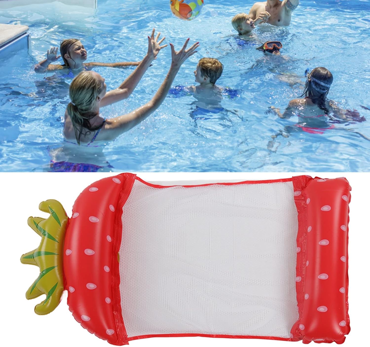 [Materiale eco -adatto premium] Realizzato da PVC ad alte prestazioni Questa amaca acqua gonfiabile è leggera durevole e per la pelle che garantisce un uso duraturo senza compromettere il comfort. Il materiale ecologico è sicuro per te e l'ambiente rendendolo una scelta responsabile per le tue avventure d'acqua. [Inflazione rapida e deflazione] Progettata per comodità, questo letto galleggiante si gonfia e si deflama rapidamente senza perdite risparmiando tempo e sforzo. Il suo design pratico lo rende per sessioni di nuoto spontanee in una spiaggia o in un lago. [Comodo tessuto a maglie] con un tessuto a maglie fresco nel mezzo Questa sedia galleggiante offre equilibrio e galleggiamento ottimali mantenendo la testa e le gambe supportate mantenendo una temperatura centrale confortevole nell'acqua. Goditi ore di relax senza disagio. [Pieghevole e portatile] Quando non è in uso, questa zattera di nuoto gonfiabile può essere facilmente piegata in una forma piatta compatta che rende lo stoccaggio e il trasporto un gioco da ragazzi. Il suo design leggero ti assicura di poterlo portare ovunque dalle feste in piscina alle vacanze in spiaggia. [Stylish Strawberry Pattern] Distinguere con questo unico design a pattern di fragole che combina moda e funzionalità. Questo lounger gonfiabile accattivante non è solo pratico ma anche un accessorio elegante per giochi estivi in piscina e attività idriche all'aperto.