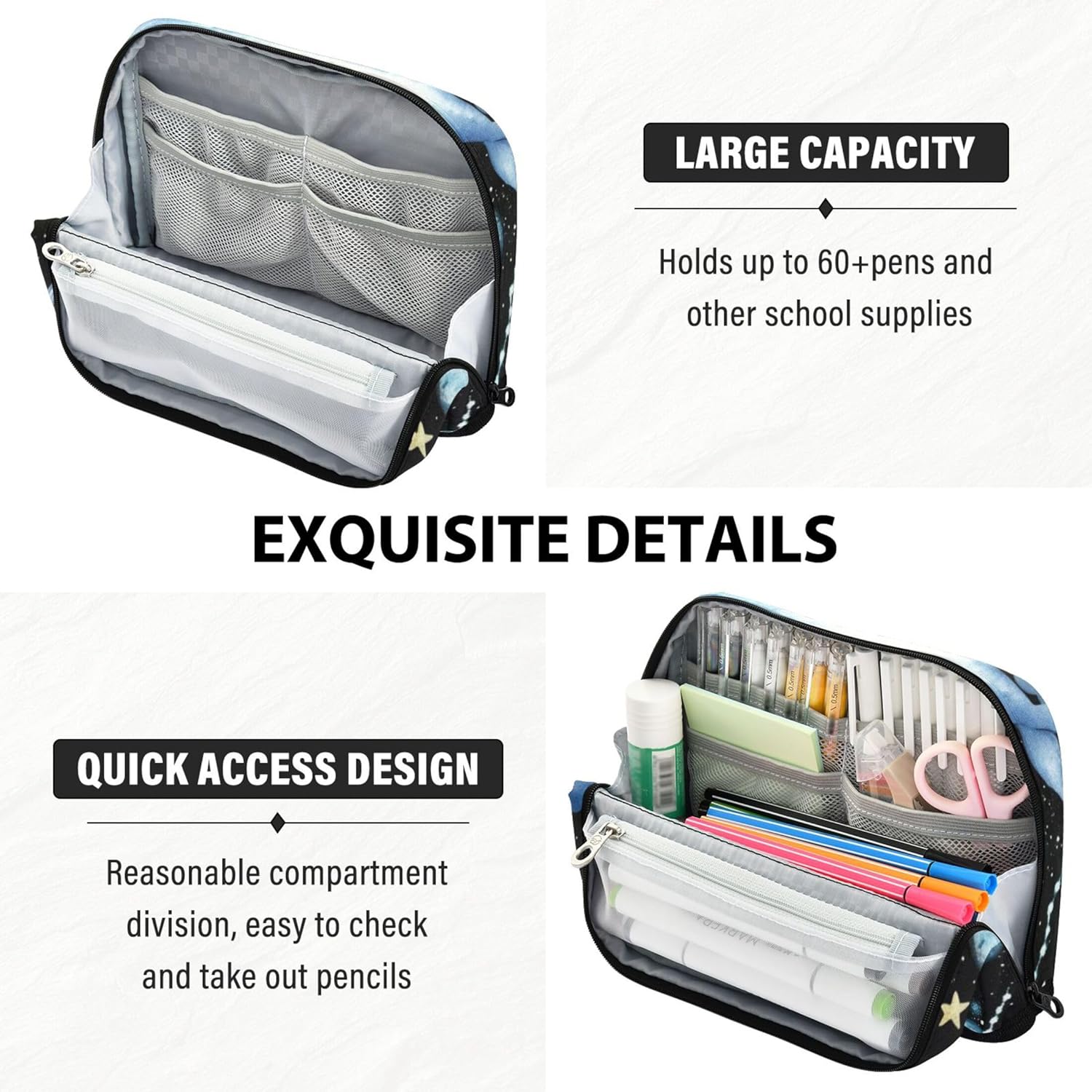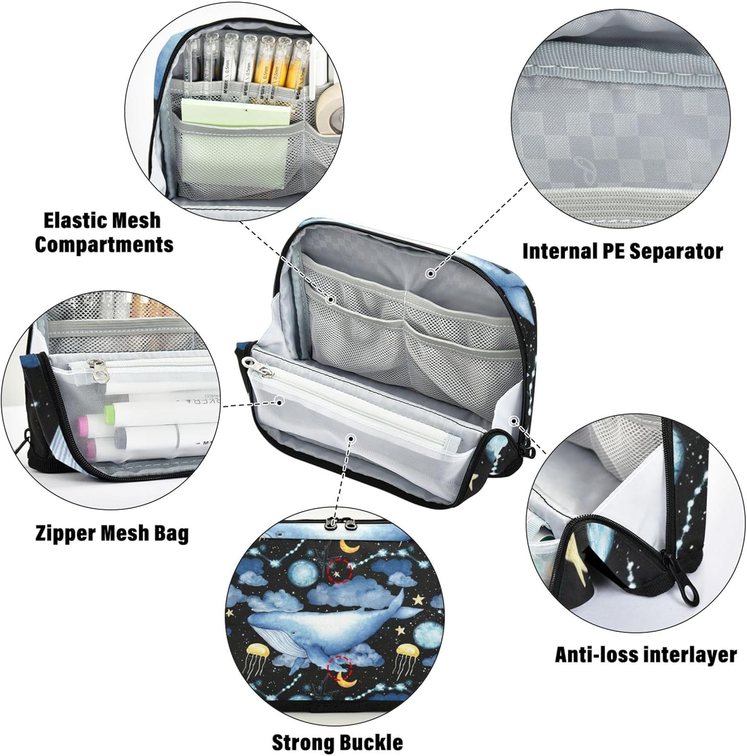 Struttura magnetica per una maggiore stabilità: grazie al suo design pieghevole unico con bottoni a pressione sicuri, questo grazioso astuccio è alto sulla scrivania e mantiene tutto ben visibile e accessibile Materiale affidabile: grazie al suo nylon impermeabile e antigraffio, il simpatico astuccio rimane ordinato e intatto, ideale per stili di vita in movimento o studenti attivi Layout intelligente per riporre: tieni le tue forniture in ordine: il grazioso astuccio include uno scomparto principale, una tasca in rete con cerniera e uno slot aperto per separare e accedere agli oggetti con facilità Strumento versatile per tutti i giorni: dalle penne ai cosmetici, i sacchetti riutilizzabili per matite funzionano come astuccio, borsa da toilette o mini custodia per scuola, viaggi, ufficio o routine quotidiane Fallo tuo: la borsa cosmetica per matite per borsa supporta tocchi personalizzati come nomi, messaggi o immagini, offrendo una scelta regalo creativa per compleanni, rientro a scuola o vacanze