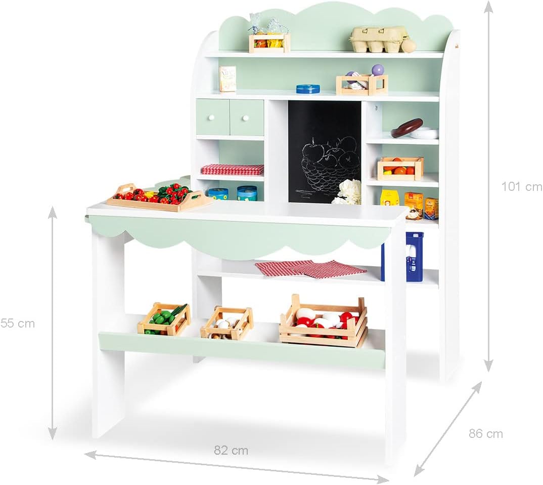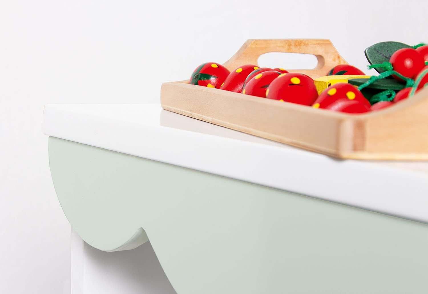 Materiale: MDF laccato bianco e verde pastello Dimensioni (l x p x h): 82 x 86 x 101 x 55 cm Bancone laterale da montare a destra o sinistra, 2 cassetti