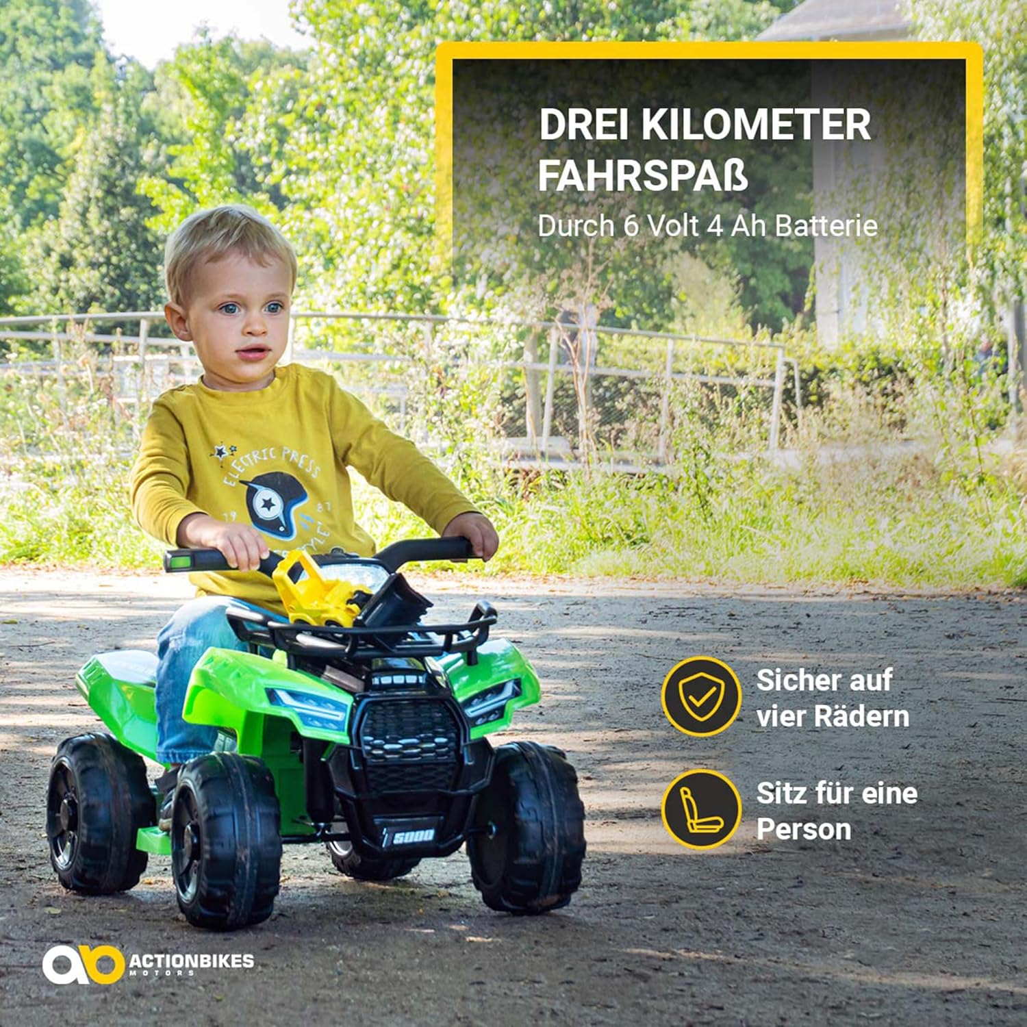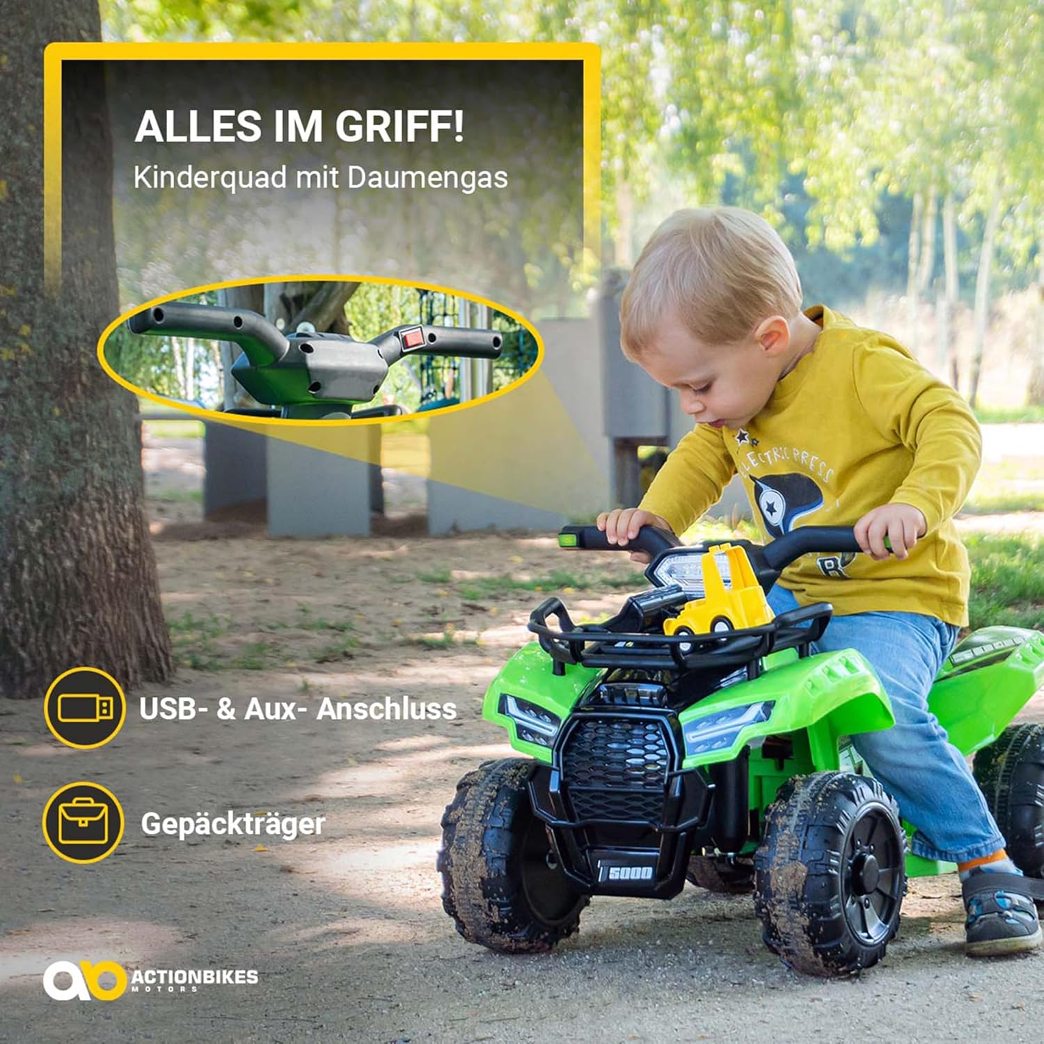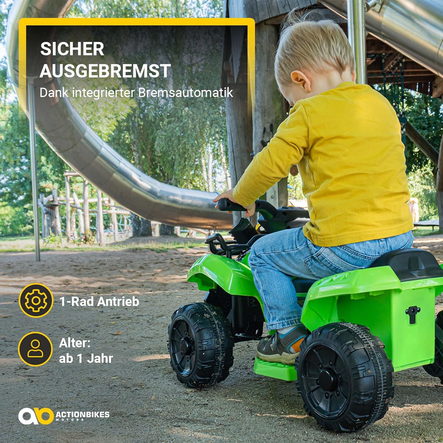 𝐒𝐢𝐜𝐡𝐞𝐫 𝐮𝐧𝐭𝐞𝐫𝐰𝐞𝐠𝐬 𝐝𝐚𝐧𝐤 Facile da usare 🛑 Frenare diventa facile: la frenata automatica integrata garantisce maggiore sicurezza in ogni viaggio, ideale per i piccoli avventurieri da 1 anno in su. 𝐅𝐚𝐡𝐫𝐬𝐩𝐚ß 𝐦𝐢𝐭 𝐬𝐭𝐚𝐫𝐤𝐞𝐦 Potente ⚡ Con il motore da 18 watt e la trazione integrale, il quad per bambini raggiunge fino a 3 km/h: perfetto per le loro prime esperienze di guida! Sedile comodo e confortevole per una persona, robusti pneumatici in plastica dura e controllo intuitivo tramite acceleratore a pollice - perfettamente su misura per i piccoli conducenti. 𝐋𝐚𝐧𝐠𝐥𝐞𝐛𝐢𝐠𝐞𝐫 𝐅𝐚𝐡𝐫𝐬𝐩𝐚ß 𝐦𝐢𝐭 𝐋𝐄𝐃-𝐋𝐢𝐜𝐡𝐭 🔋 Fino a 1,5 ore di guida grazie alla batteria da 6 V, fari a LED per un look accattivante e una migliore visibilità. 𝐄𝐧𝐭𝐞𝐫𝐭𝐚𝐢𝐧𝐦𝐞𝐧𝐭 𝐝𝐮𝐫𝐜𝐡 𝐀𝐮𝐝𝐢𝐨𝐟𝐮𝐧𝐤𝐭𝐢𝐨𝐧𝐞𝐧 🎵 Con la porta USB e Aux, i bambini possono ascoltare la loro musica preferita mentre guidano - più divertimento garantito!