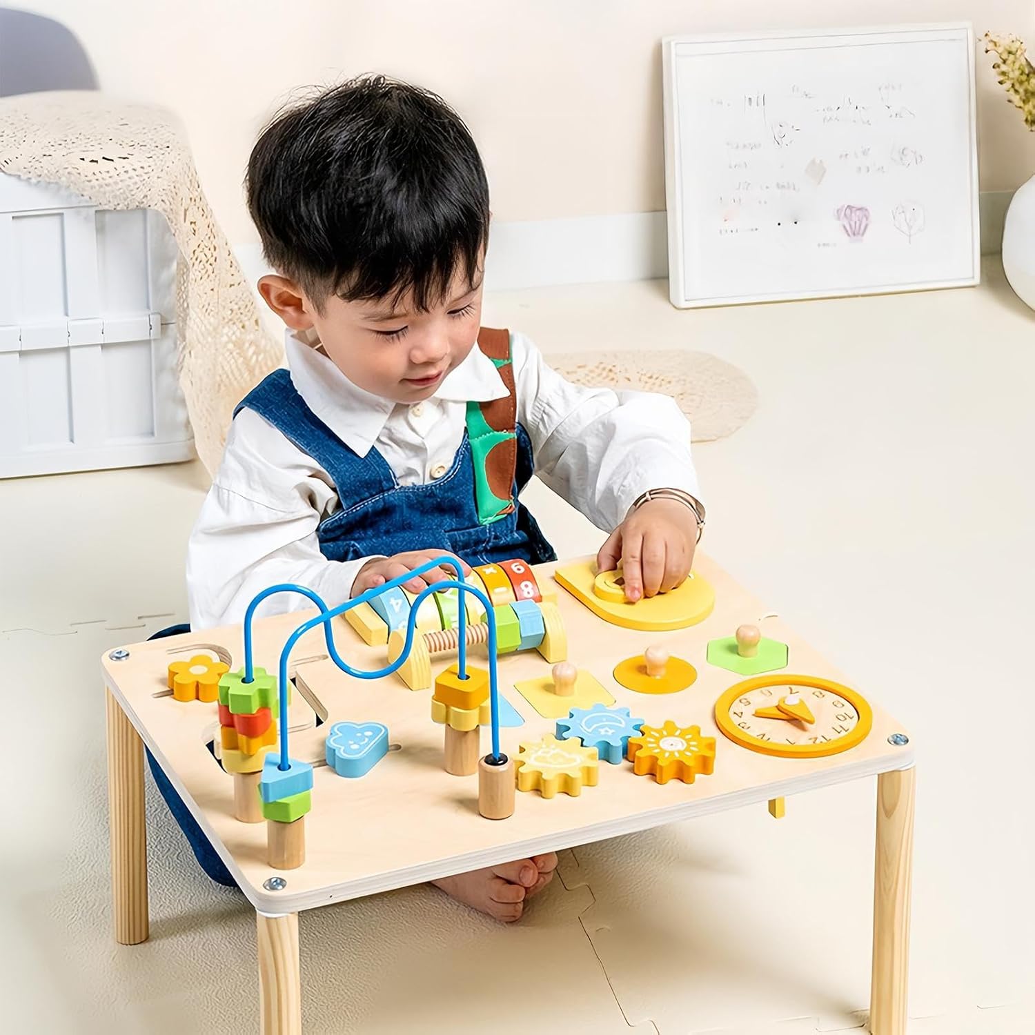 Multi-Activity Learning Table: Combines bead maze tracks shape sorters and puzzles into fun-packed station that helps kids develop hand-eye coordination fine motor skills shape recognition and problem-solving while having fun for hours -Inspired Toy Design: Encourages learning through tactile exploration colorful components and open-ended play helping children build logic memory and concentration at their own pace in preschool home or daycare settings Safe and Child-Friendly Materials: Constructed from smooth polished wood and paints this learning table ensures safe interaction for and young children providing a worry-free play experience for parents and teachers alike Ideal for Boys and Girls: A perfect educational toy for both boys and girls ages 1 to 5 this activity table supports cognitive development in a playful way making it a great birthday holiday or classroom gift for preschoolers and Perfect for Homes and Daycares: Compact enough to fit in any room yet full of interactive features this table is ideal for playrooms nurseries schools and waiting areas offering both entertainment and skill-building opportunities daily