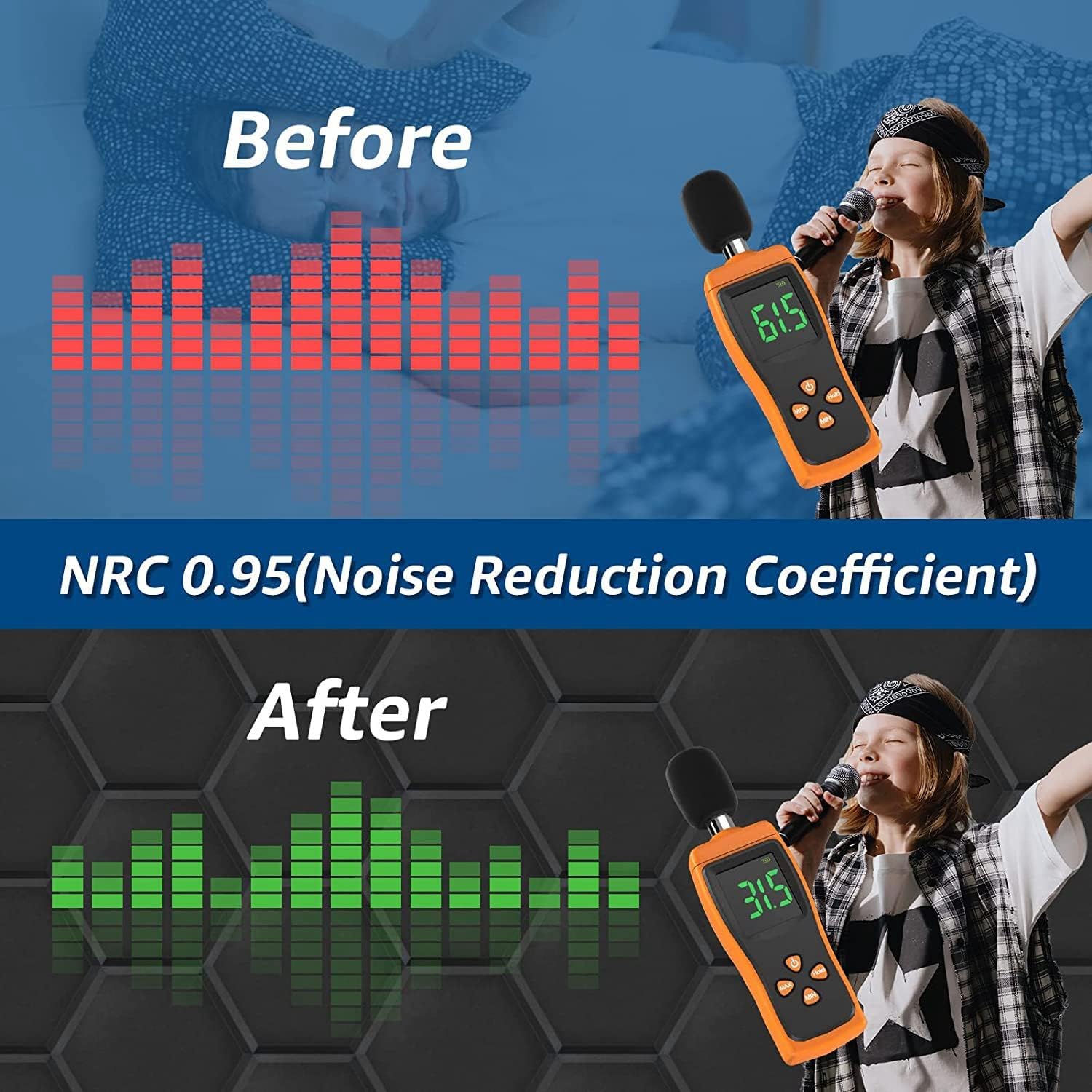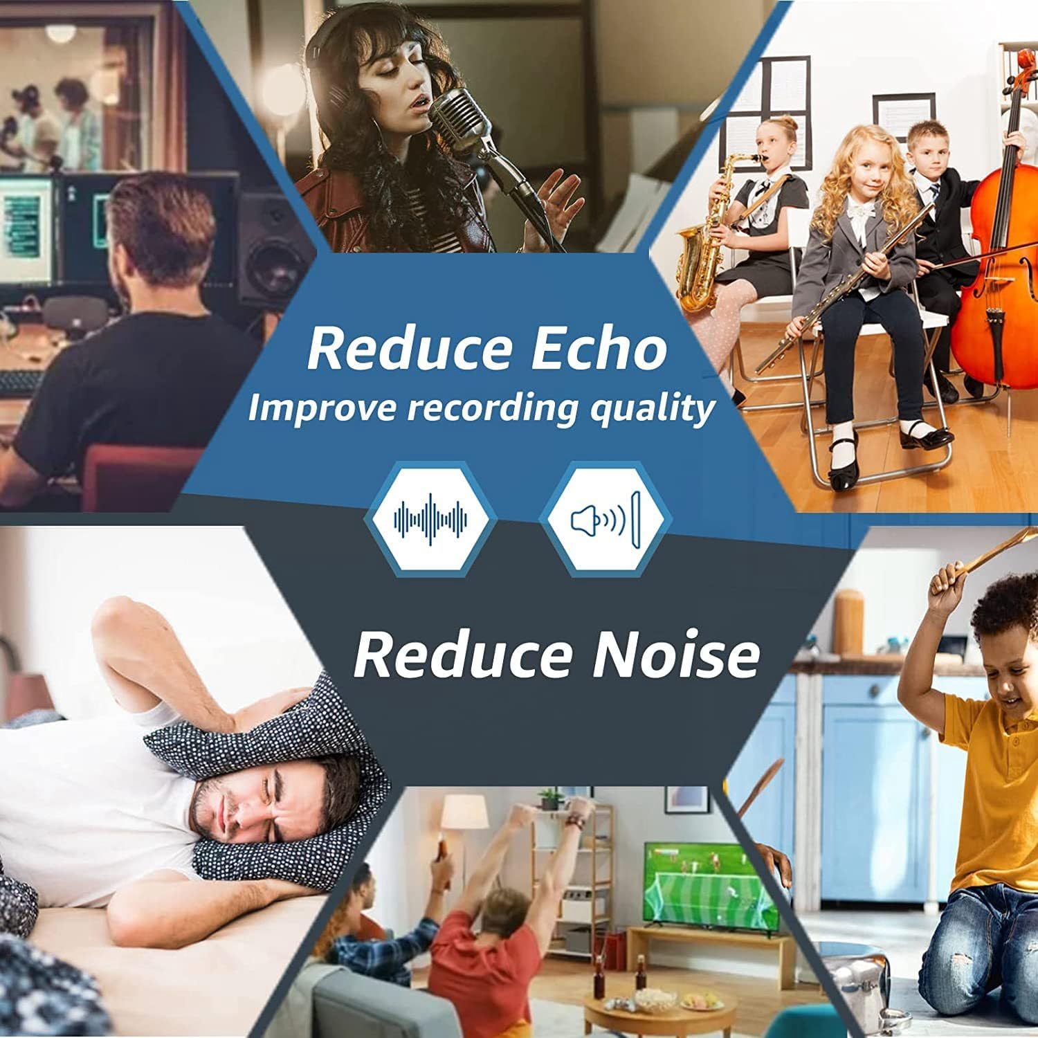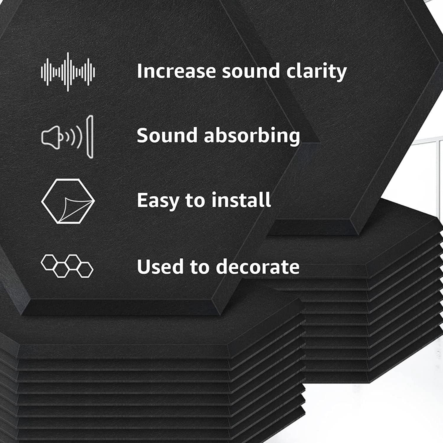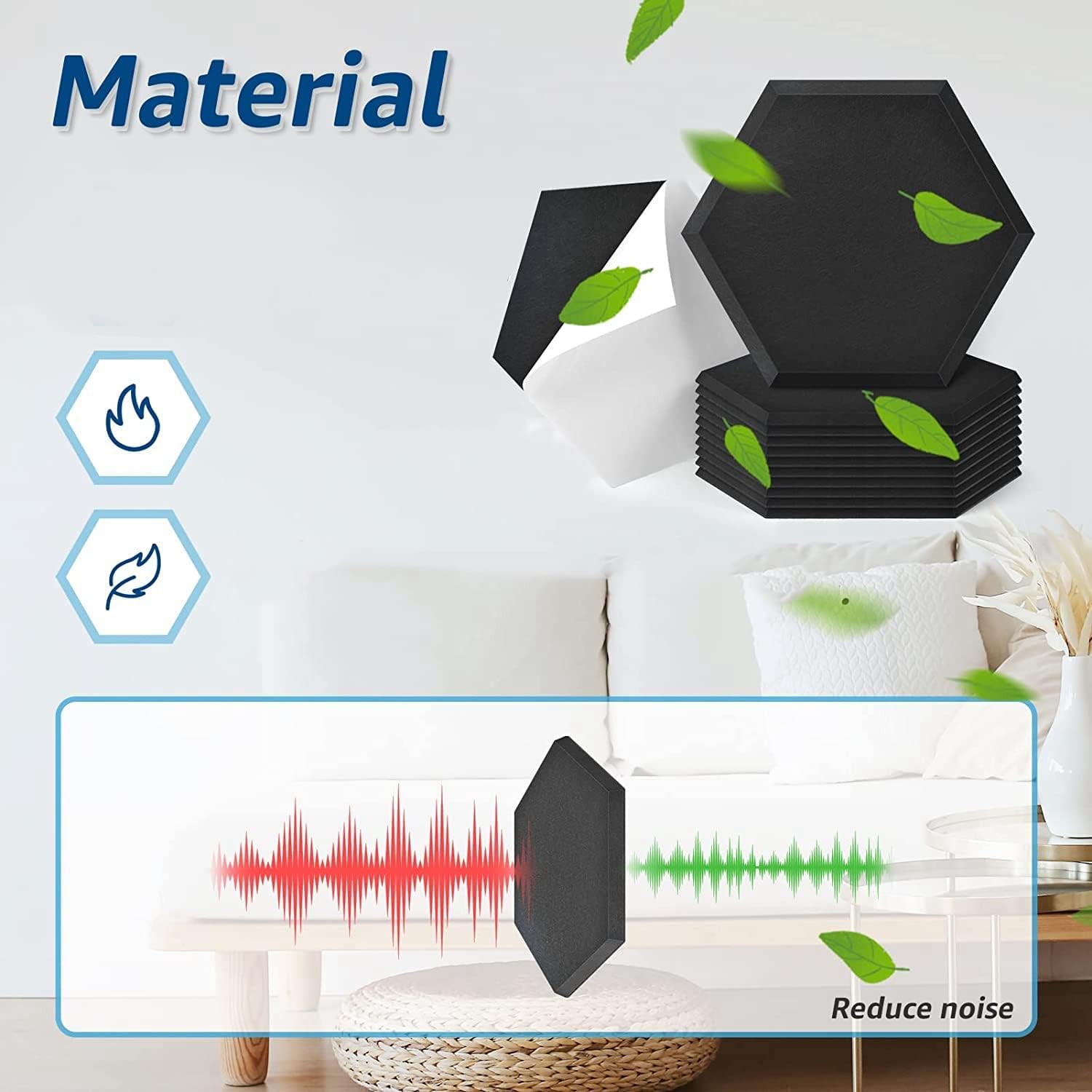 Realizzato in poliuretano, migliore isolamento acustico rispetto ad altre imbottiture in di schiuma fonoassorbente. I nostri fonoassorbenti sono ignifughi, inodori, privi di formaldeide, atossici, resistenti alla corrosione e allo sbiadimento. Il design autoadesivo semplifica l'installazione. Non è necessario acquistare rubinetti o extra per i insonorizzati per pareti. Risparmia tempo e denaro. a d'ape esagonale con design a bordo smussato pratico che . Crea la tua decorazione da parete con 6 diversi antirumore. Schiuma acustica Facile da tagliare con un coltello affilato. Facile da installare praticare fori sul muro o acquistare nastri extra, basta staccare e incollare. insonorizzante per pareti e soffitti. È una scelta per studi di registrazione, podcasting, cabine vocali, home studio per ridurre l'eco Migliora la qualità della registrazione. Può essere utilizzato anche per uffici, home theater, sale giochi, caverne per uomini, cucce per cani.