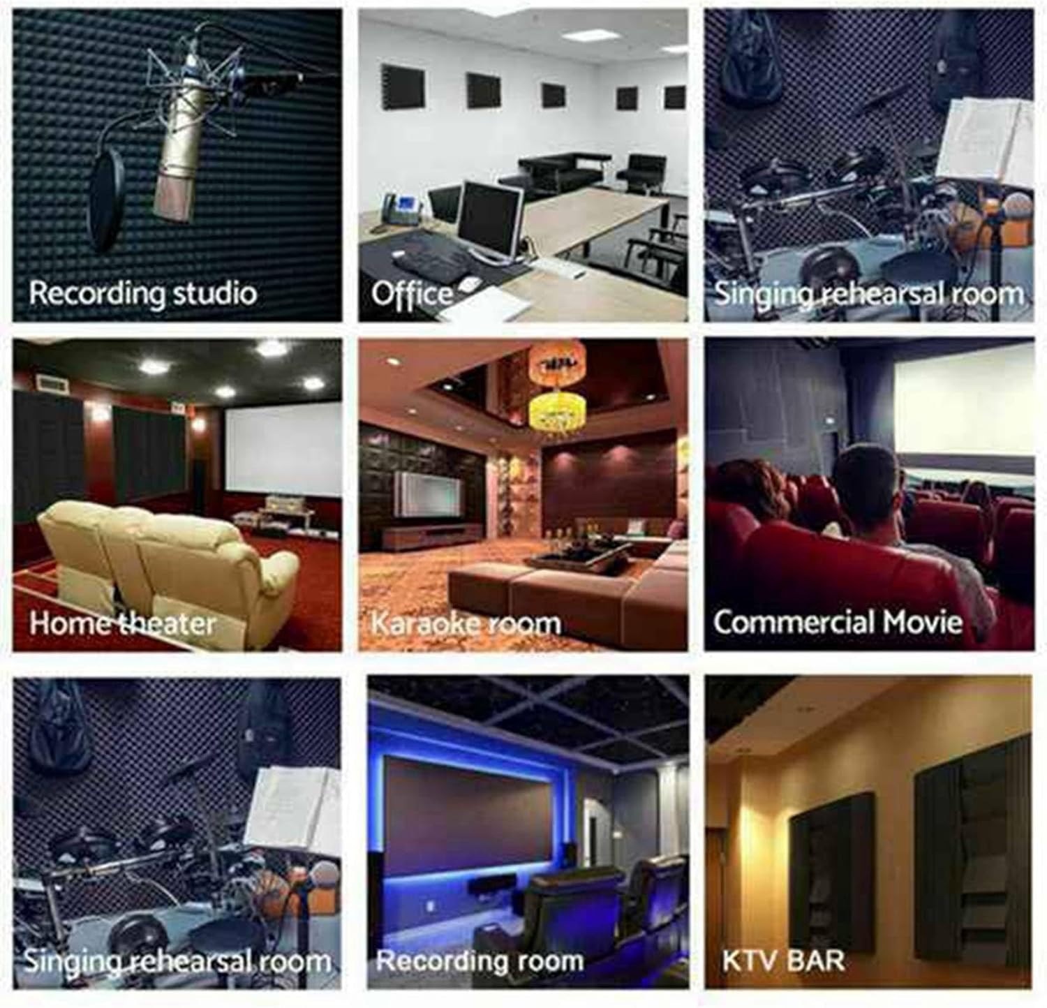 Ridurre il rumore e l'eco indesiderati: i aiutano a ridurre il riverbero, gli echi svolazzanti, i riflessi acustici indesiderati, i rumori indesiderati e sono i migliori per stanze di piccole e medie dimensioni, sale teatrali, studi di registrazione, chiese o uffici. Utilizzare per trattare studio di registrazione professionale o domestico, un ufficio commerciale o domestico, una sala prove o un home theater. Facile da modellare e tagliare a misura, l'alterazione non influirà sulle prestazioni. Ottimo per trattare in modo il suono sulle pareti del tuo studio o ufficio: da utilizzare in studi di registrazione, sale di controllo, studi domestici di uffici, teatri di intrattenimento domestico, uffici domestici. Effettua registrazioni audio e video di qualità superiore: migliora istantaneamente la qualità audio riducendo il rumore di fondo e l'eco durante la registrazione di voci fuori campo, musica, interviste, podcast o video di . Trattamenti acustici professionali da studio, crea splendidi ambienti di registrazione! La schiuma acustica viene utilizzata per rimuovere riverberi e riflessi sonori, fornire isolamento acustico per applicazioni industriali e domestiche adatte per studi di registrazione. A differenza della schiuma di poliuretano, la fibra di vetro e la lana di presentano rischi per la salute.