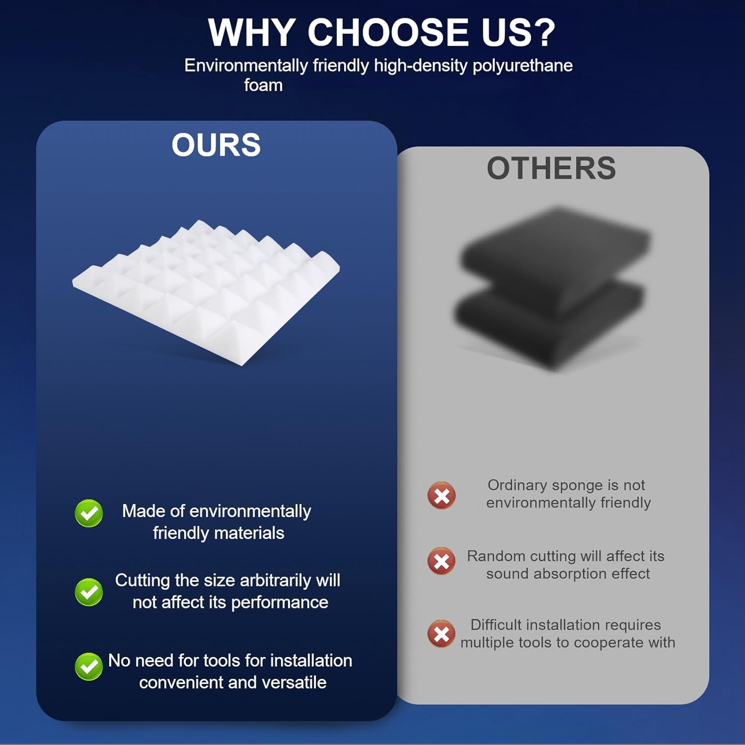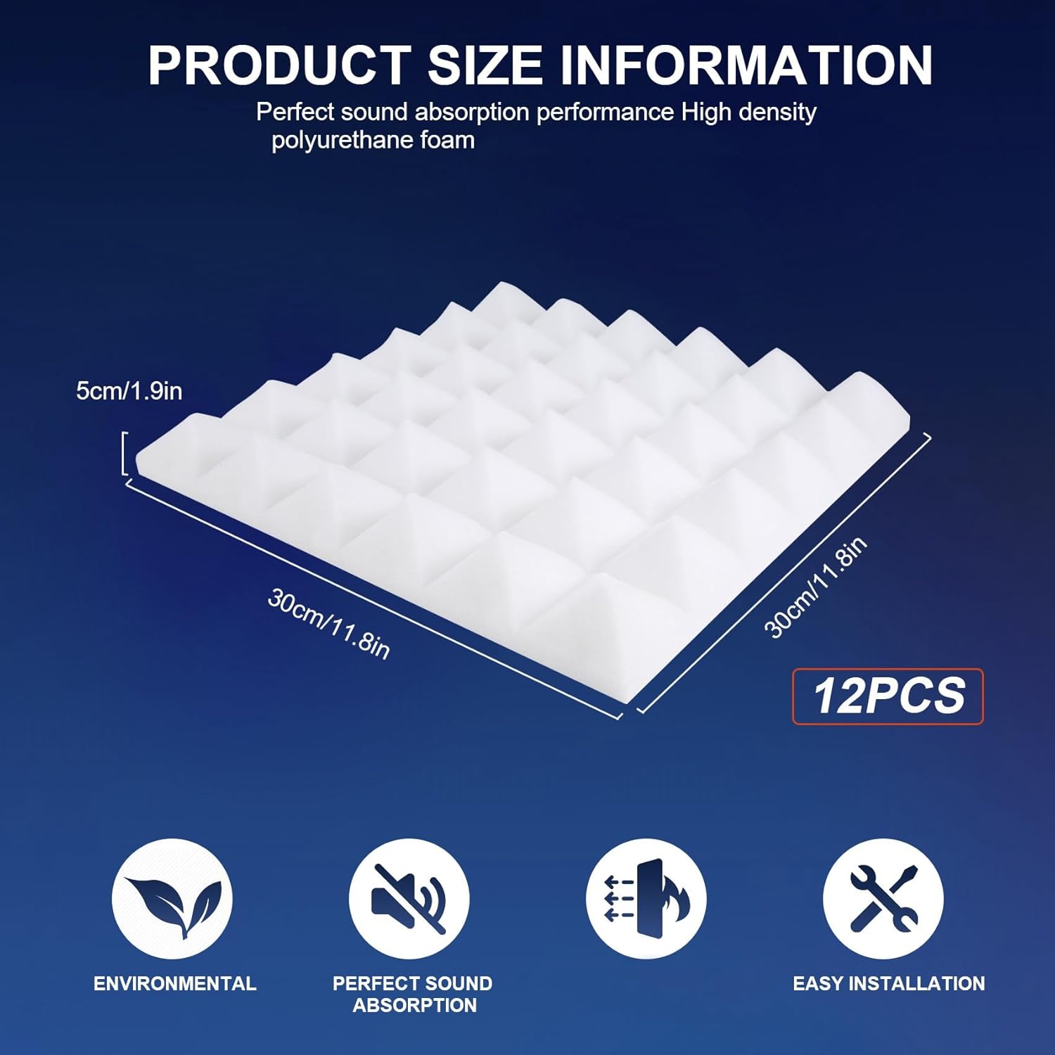 [100 % poliuretano, certificazione di sicurezza SGS] Per garantire la qualità dei in schiuma acustica, i acustici sono realizzati in 100 % poliuretano, aggiungere altri materiali di riempimento, la nostra schiuma acustica ha superato la sicurezza SGS certificazione, non tossica e innocua, per garantire la sicurezza di te e della tua famiglia. [Migliore assorbimento acustico] I acustici adottano la forma della piramidale, formando più scanalature di rimbalzo, mentre lo spessore della schiuma acustica è di 2 pollici, che può assorbire e consumare l'energia nella misura massima, aiuta a ridurre il riverbero, gli echi svolazzanti, indesiderati riflessioni acustiche, rumori indesiderati. [Disponibile per l'uso in più scene] La schiuma può essere utilizzata in stanze di piccole e medie dimensioni, sale teatrali, studi di registrazione, chiese o uffici, ecc., Riducendo il rumore e l'eco indesiderati.