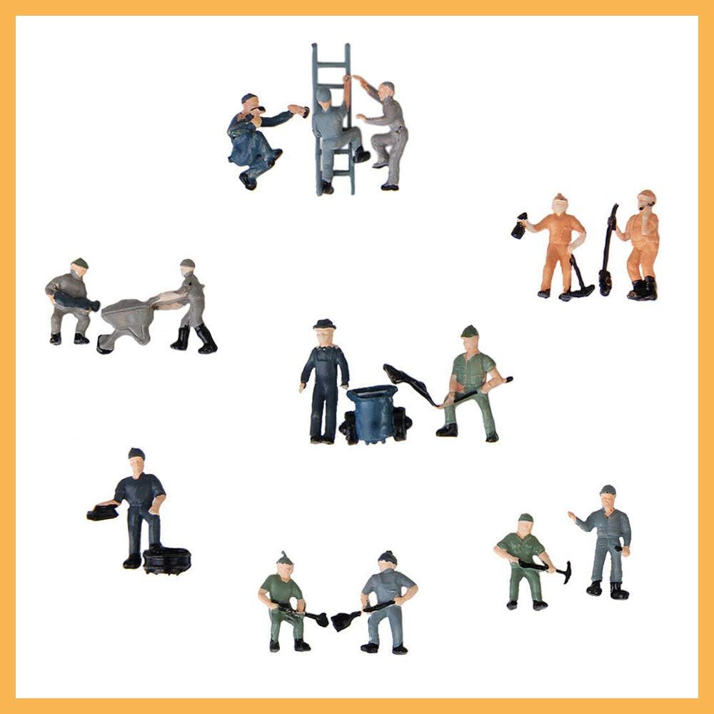 Materiale: plastica ABS, atossica e rispettosa dell'ambiente. 1:87 colori misti, ferrovieri dipinti a mano, modellini di persone con pose diverse, scala da 1 pezzo e secchio da 1 pezzo. Questi lavoratori hanno vestiti e posture diverse che li fanno sembrare molto reali. Dimensioni: scala HO 1:87, 16-22 mm di altezza, completa la tua scena e portala in vita con opere d'arte in scala HO convenienti. Dettagliato scolpito e dipinto a mano. Aggiungono colore, umorismo e interesse a qualsiasi layout. Perfetto per modelli di layout e paesaggistici. Il pacchetto include 25 modelli di ferrovieri (postura casuale)