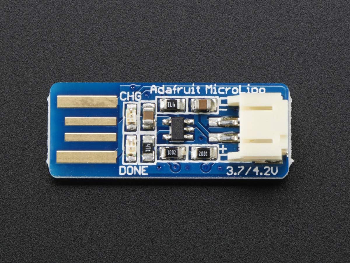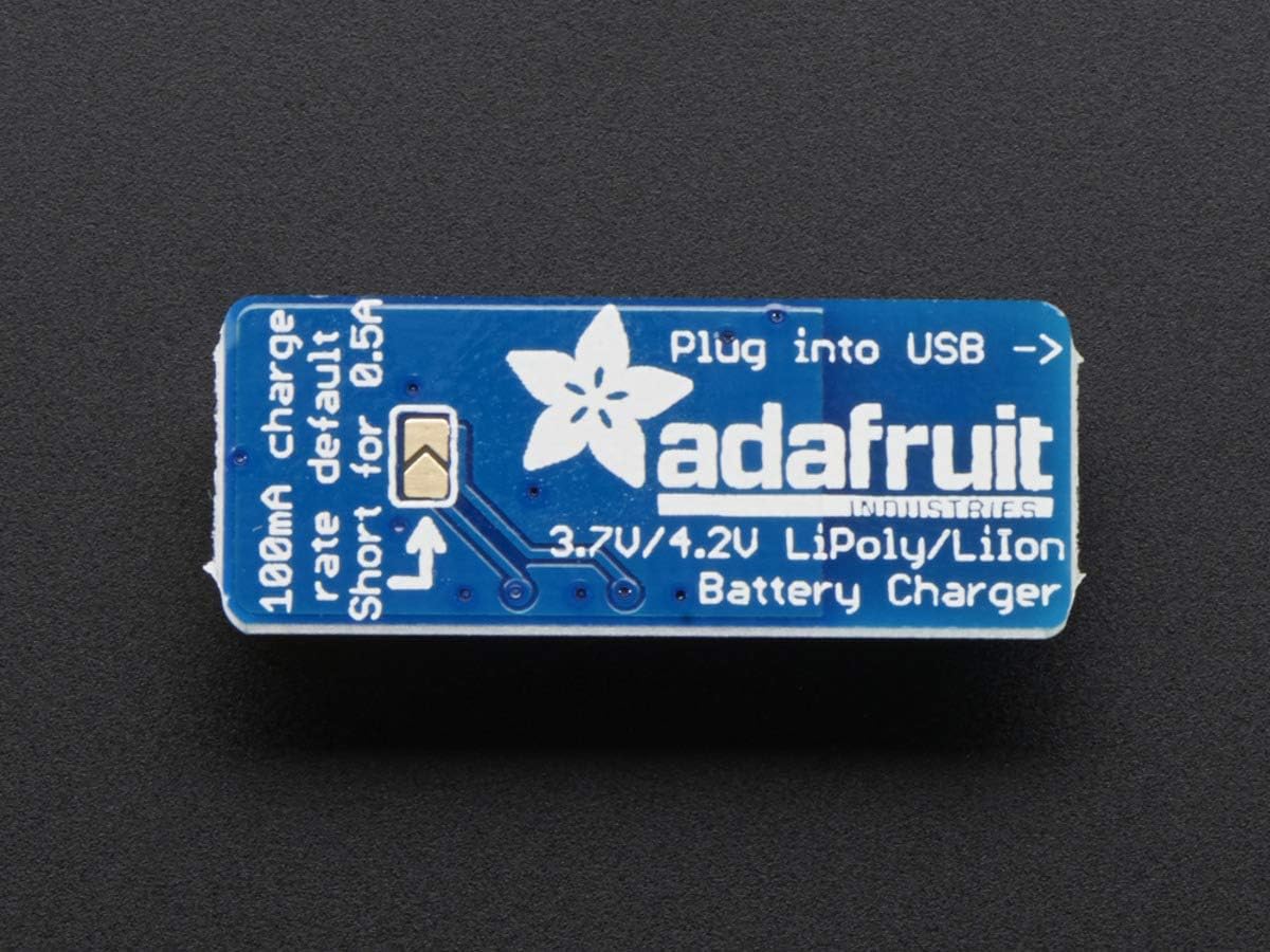 Fornito assemblato e testato con un cavo free bonus JST Ingresso 5 V tramite pcb-style connettore USB Per la ricarica singolo agli ioni di litio e batterie ai polimeri di litio 3.7 – 4.2 V Power 2-pin JST cavo incluso Conformità RoHs